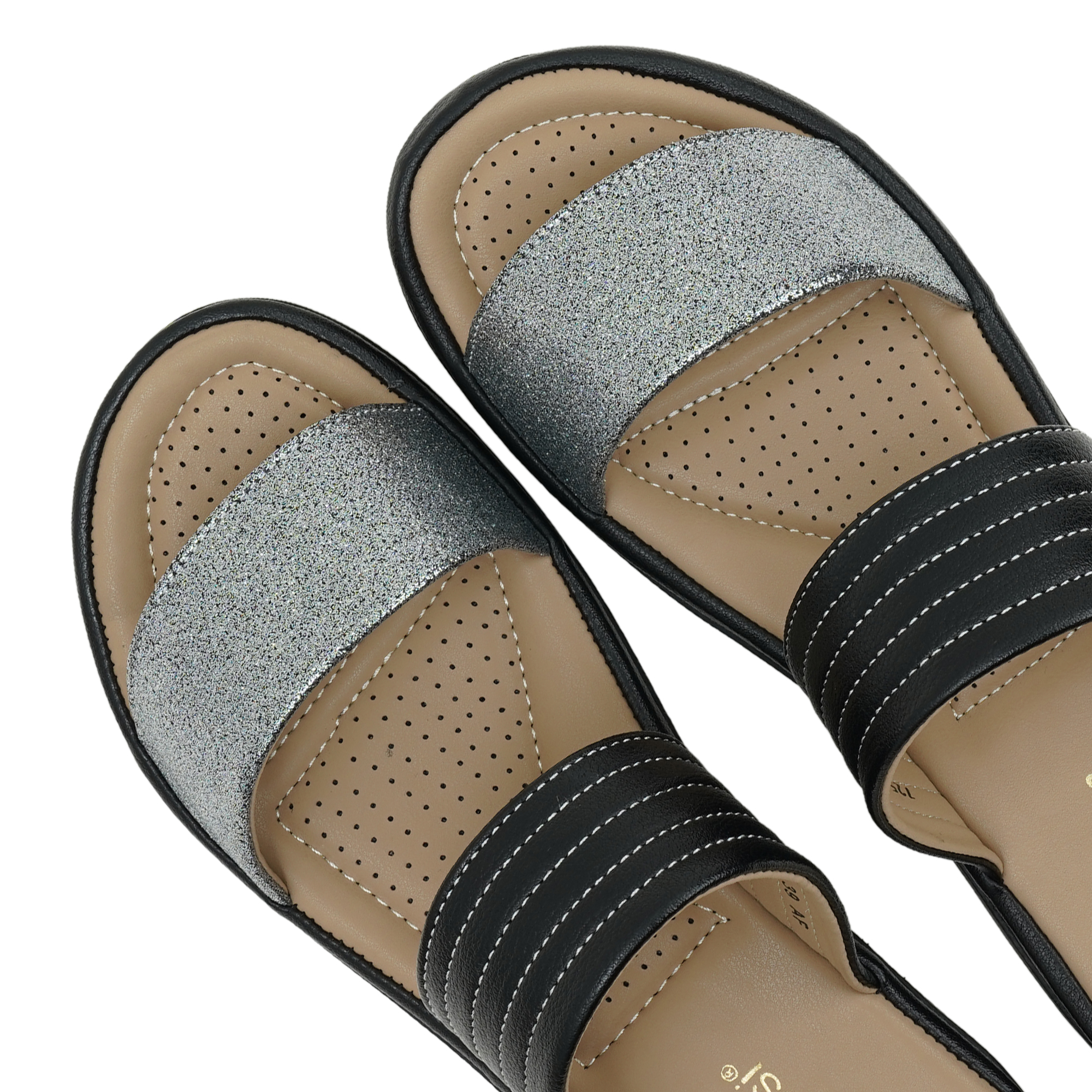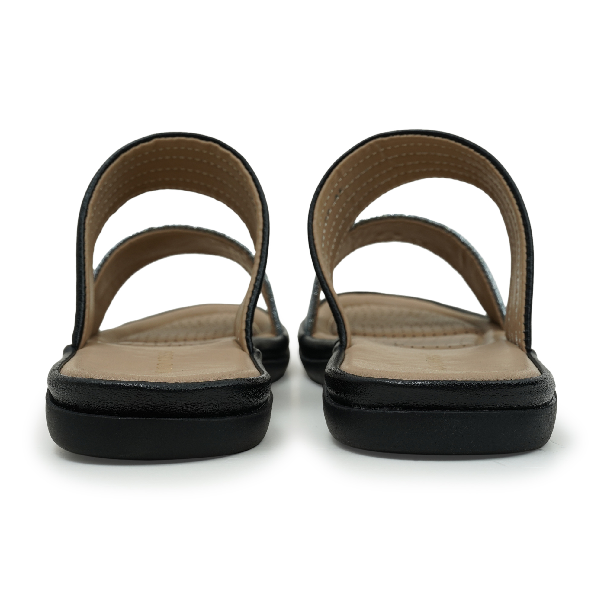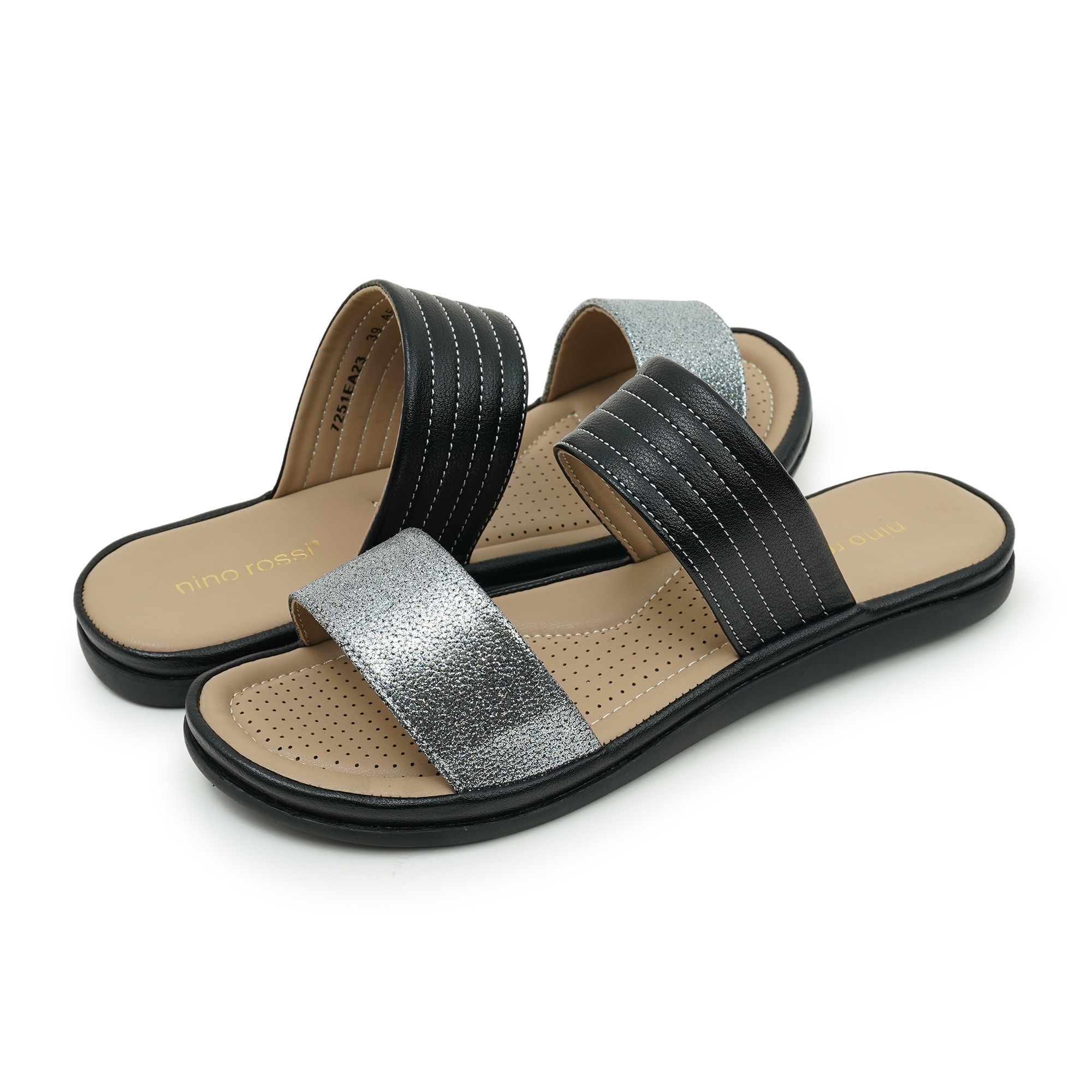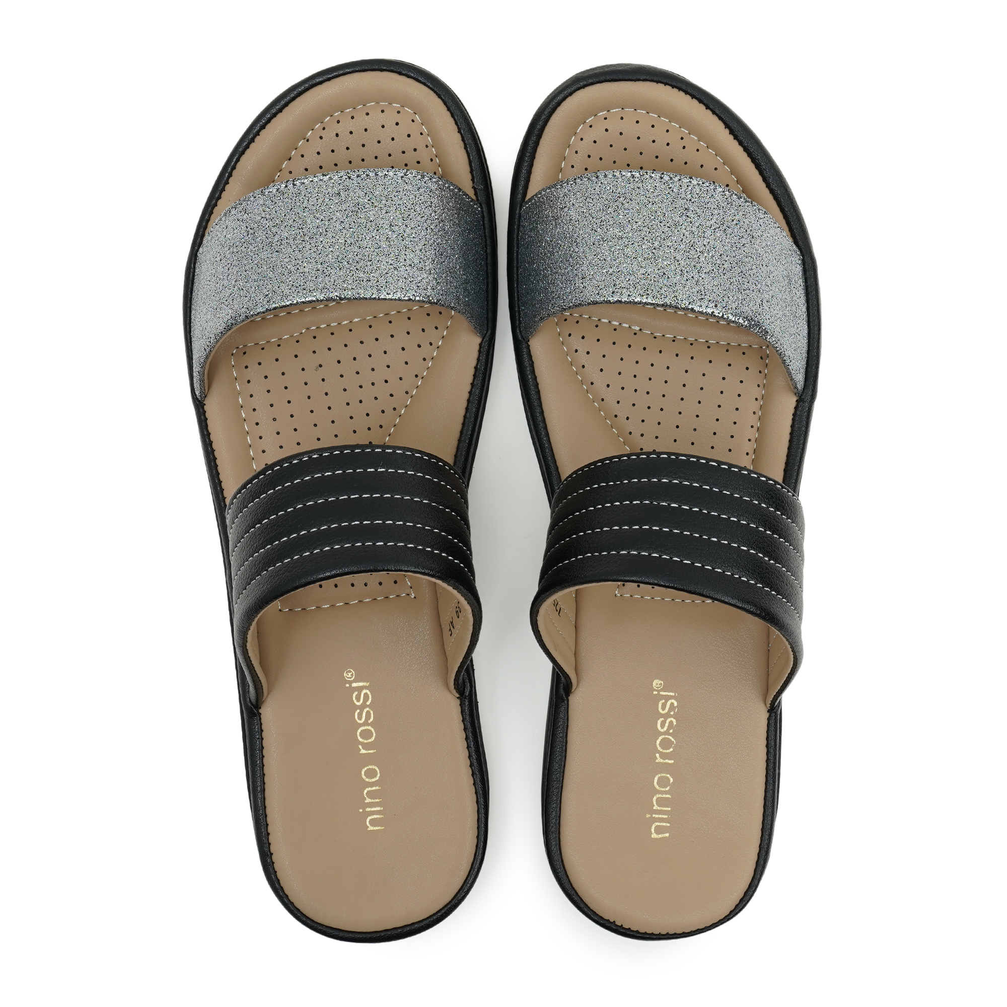 A minimalist masterpiece in black. The Nino Rossi open-mid silhouette pairs with a sculpted footbed and a refined block heel for graceful, all-day wear. The contrast strap adds a refined shimmer, making these sandals perfect for both office days and evening events.