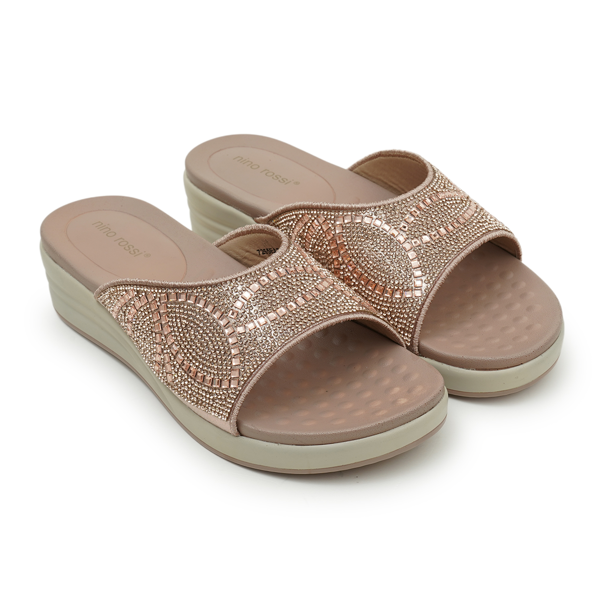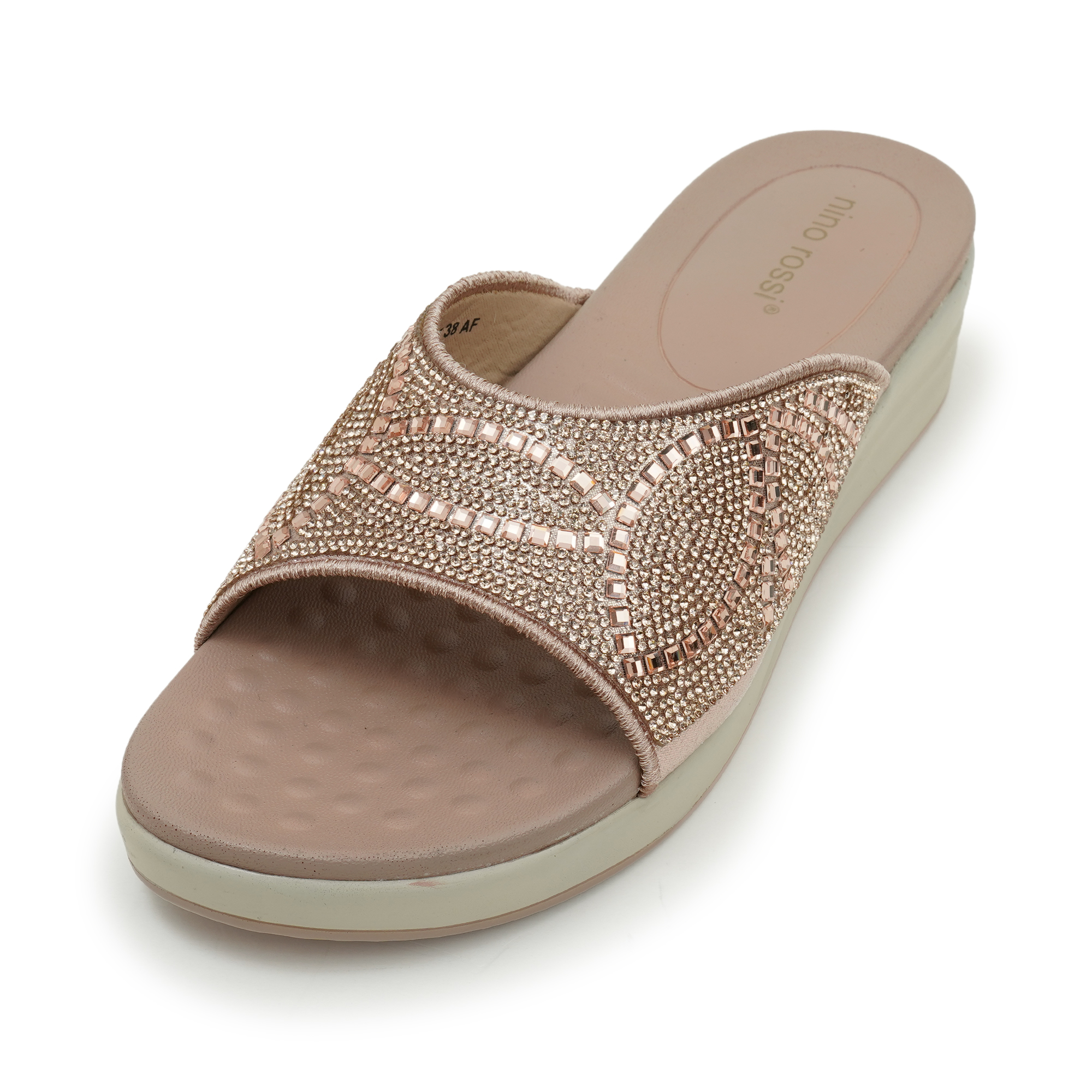 Add a touch of romance to your warm-weather wardrobe with these pink open-mid sandals from NINO ROSSI. The shimmering beaded pattern across the straps catches the light, while a soft, contoured footbed keeps every step comfortable. A subtle rose-gold detail and block heel complete the sophisticated silhouette, making them perfect for garden parties, date nights, or brunch with friends.