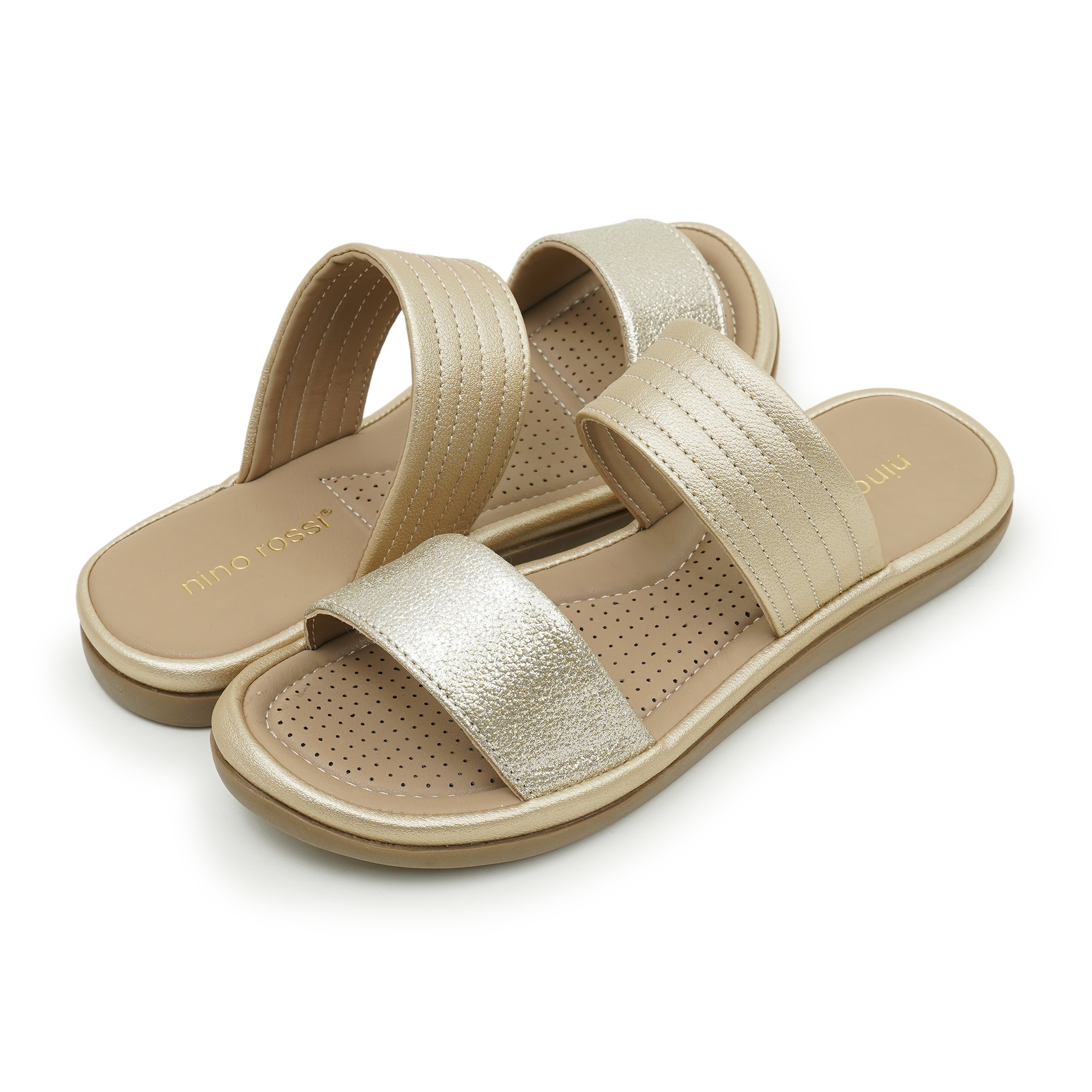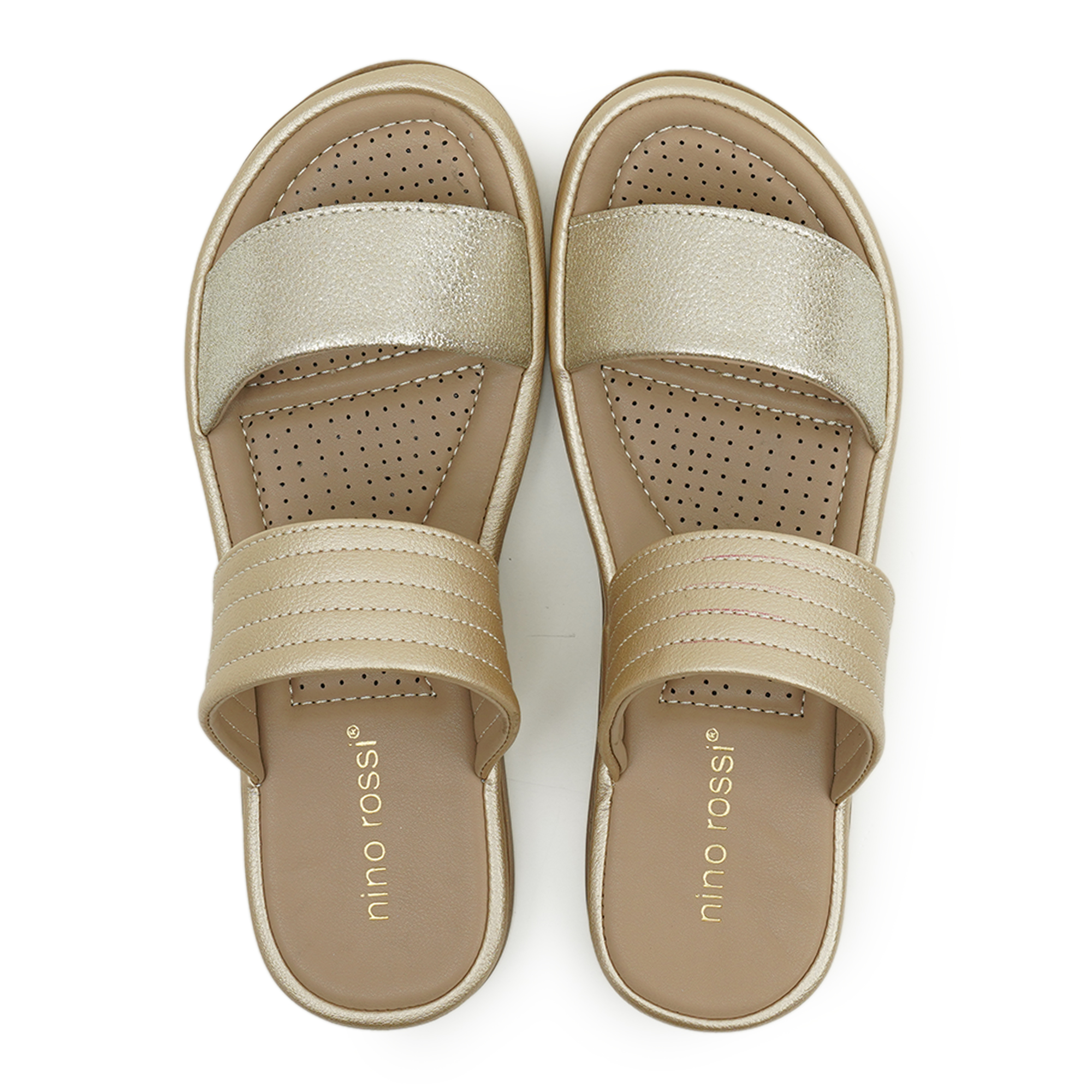 - Golden Perforated Straps, Luxurious gold tone with breathable perforations