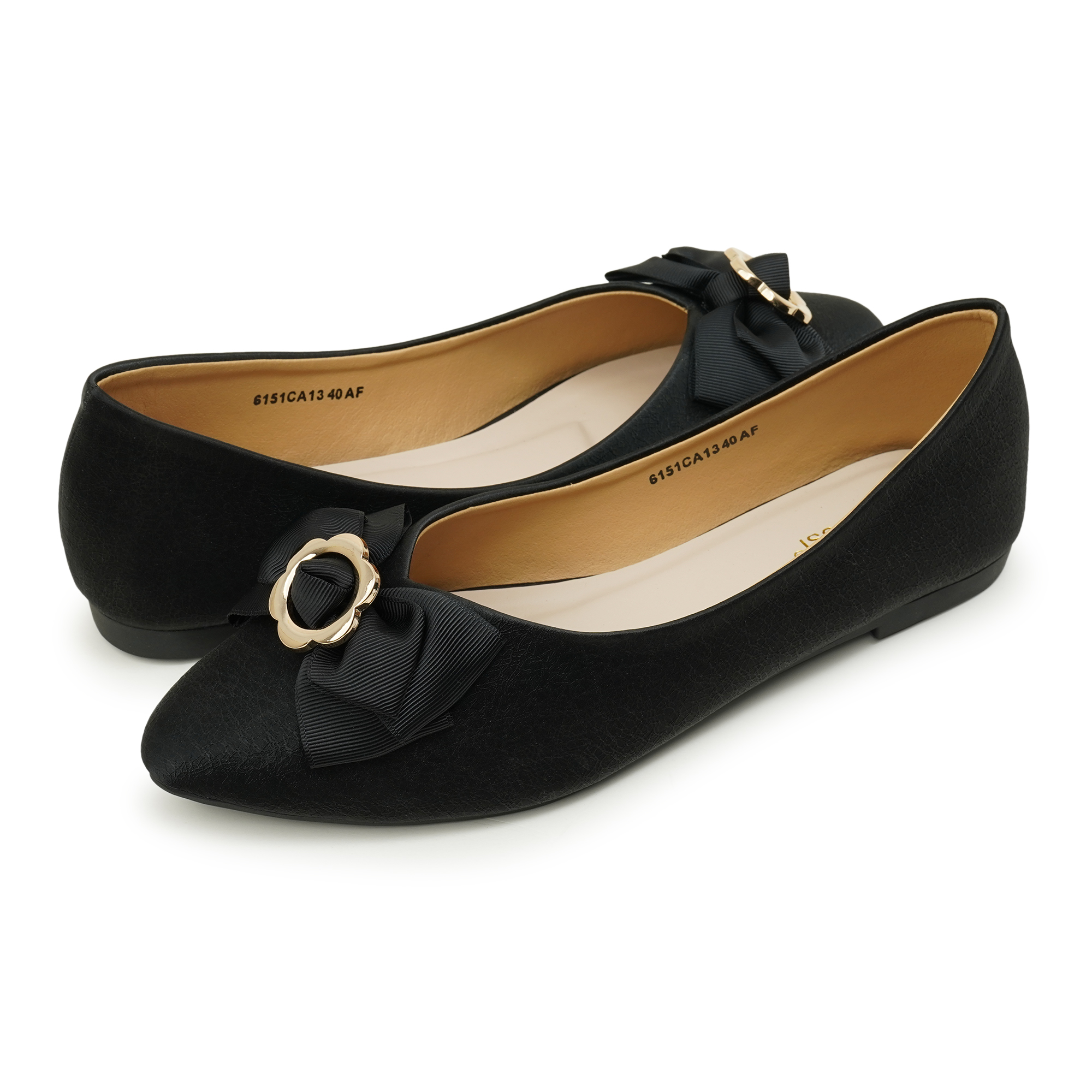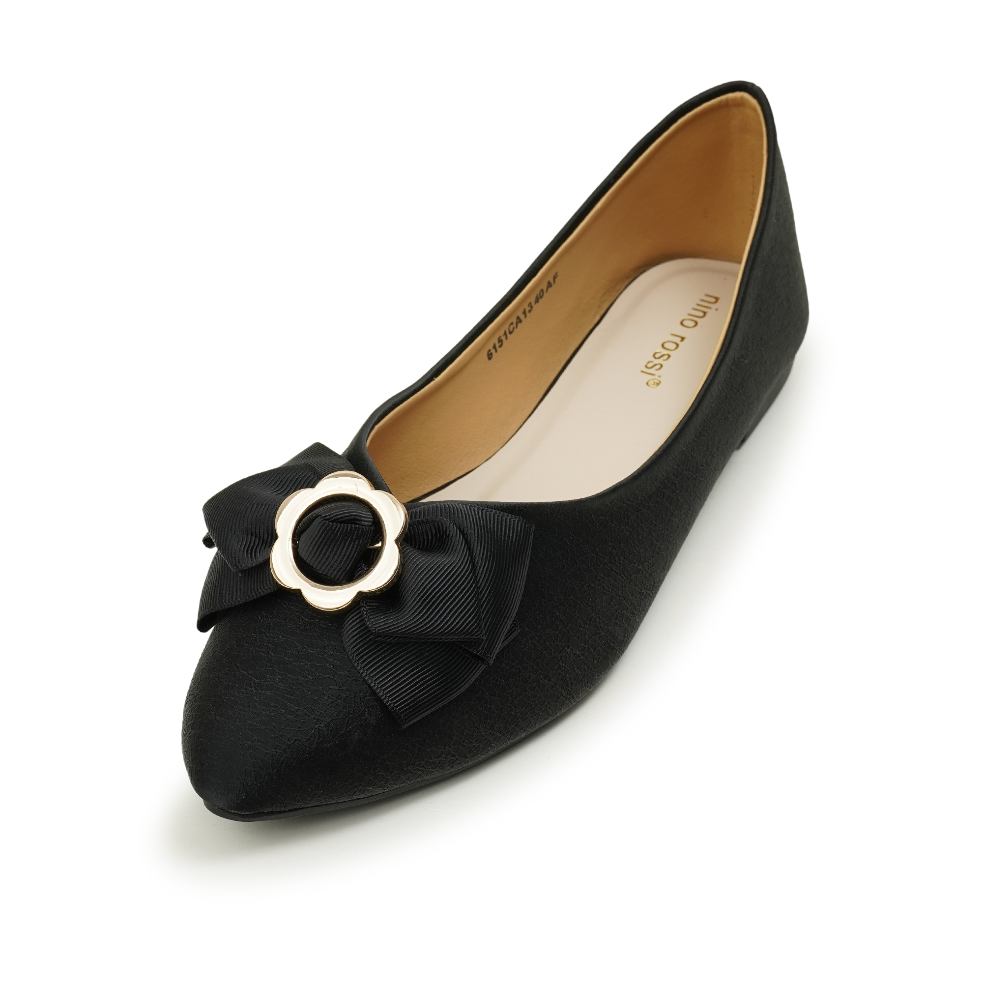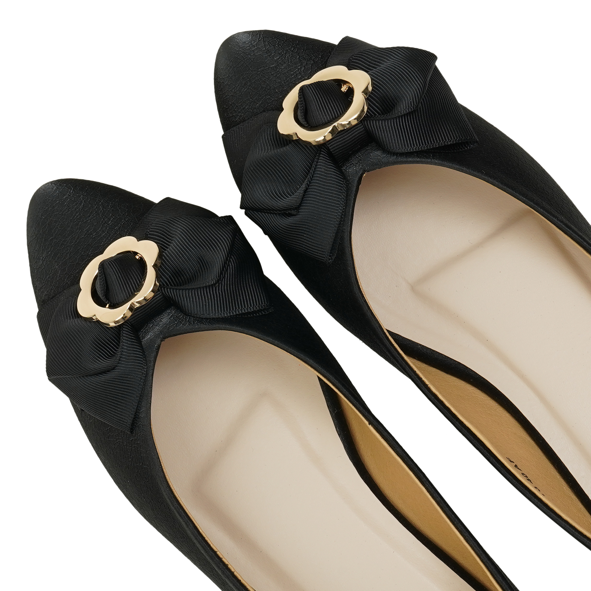 - Sleek pointed toe with a premium grosgrain bow and gold floral buckle