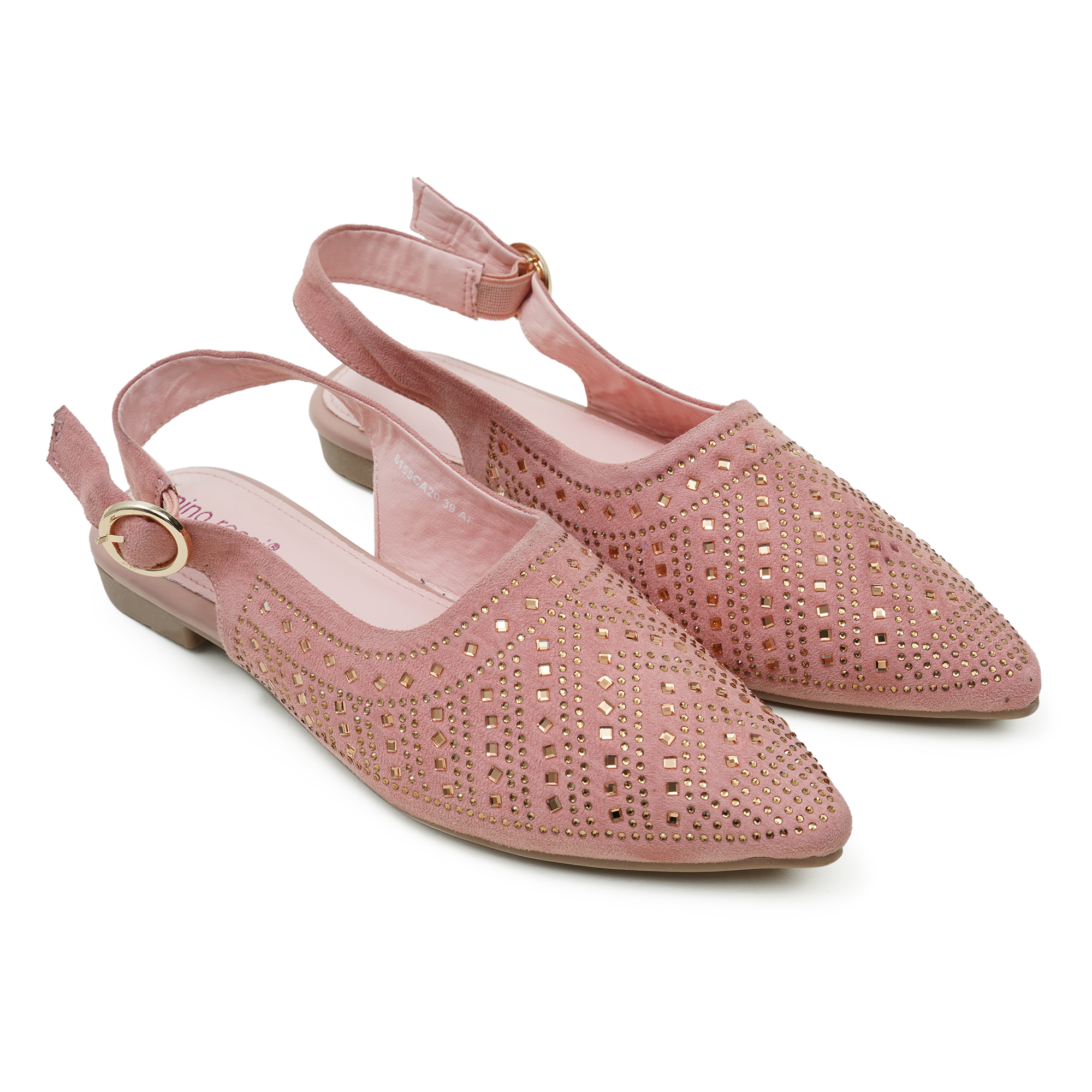 Add a touch of refined sparkle to your everyday and occasion looks with the Nino Rossi Women’s Pump in a beautiful pink hue. Featuring a secure back-belt sling and a sleek metal buckle, this pair offers a flattering fit with day-long comfort. The sparkle-finish upper brings an elegant shimmer that instantly elevates your outfit—perfect for workdays, brunch plans, and evening events. Style it with dresses, trousers, or ethnic wear for a graceful, polished finish.