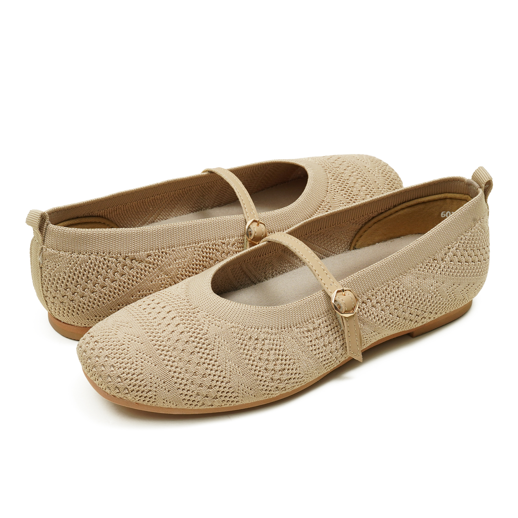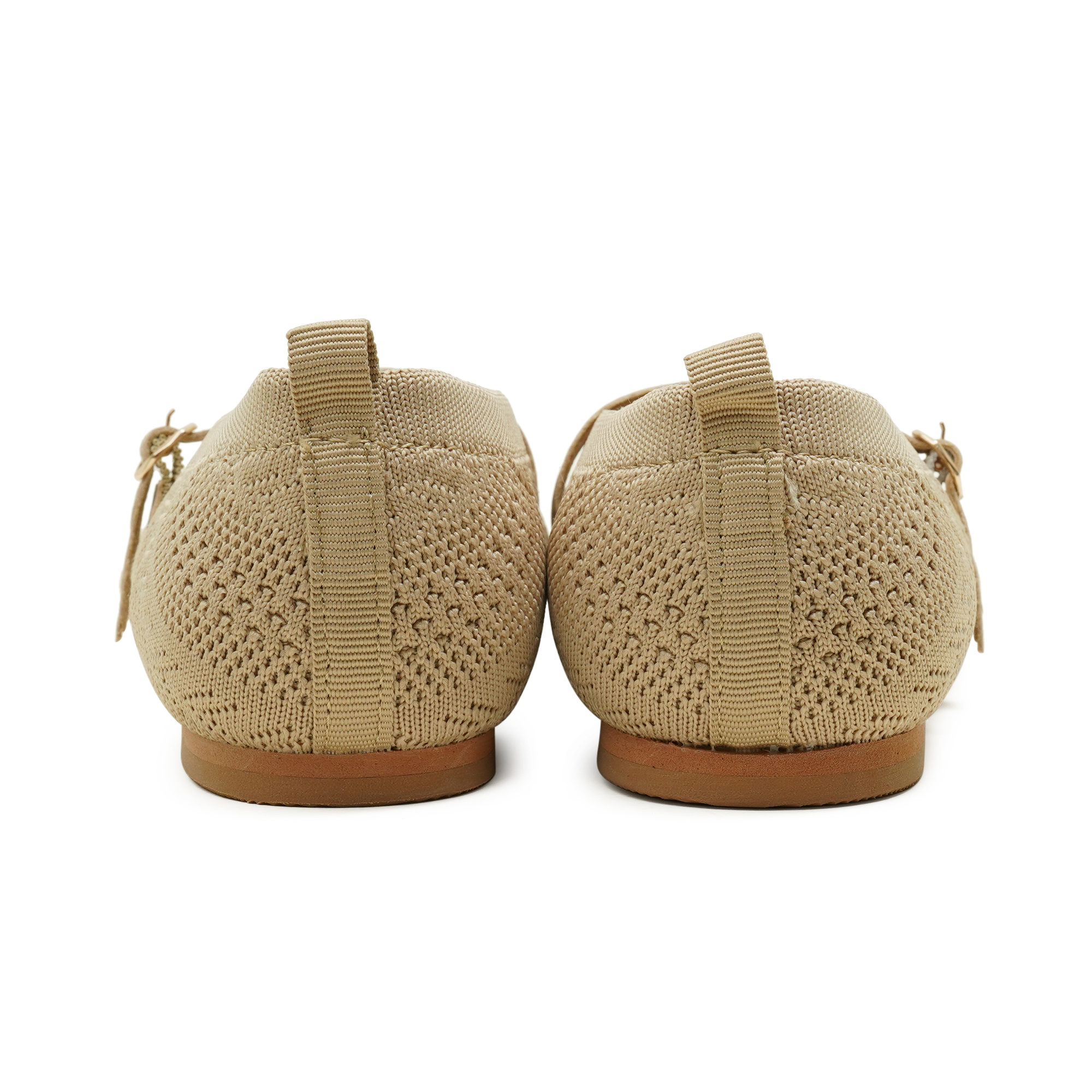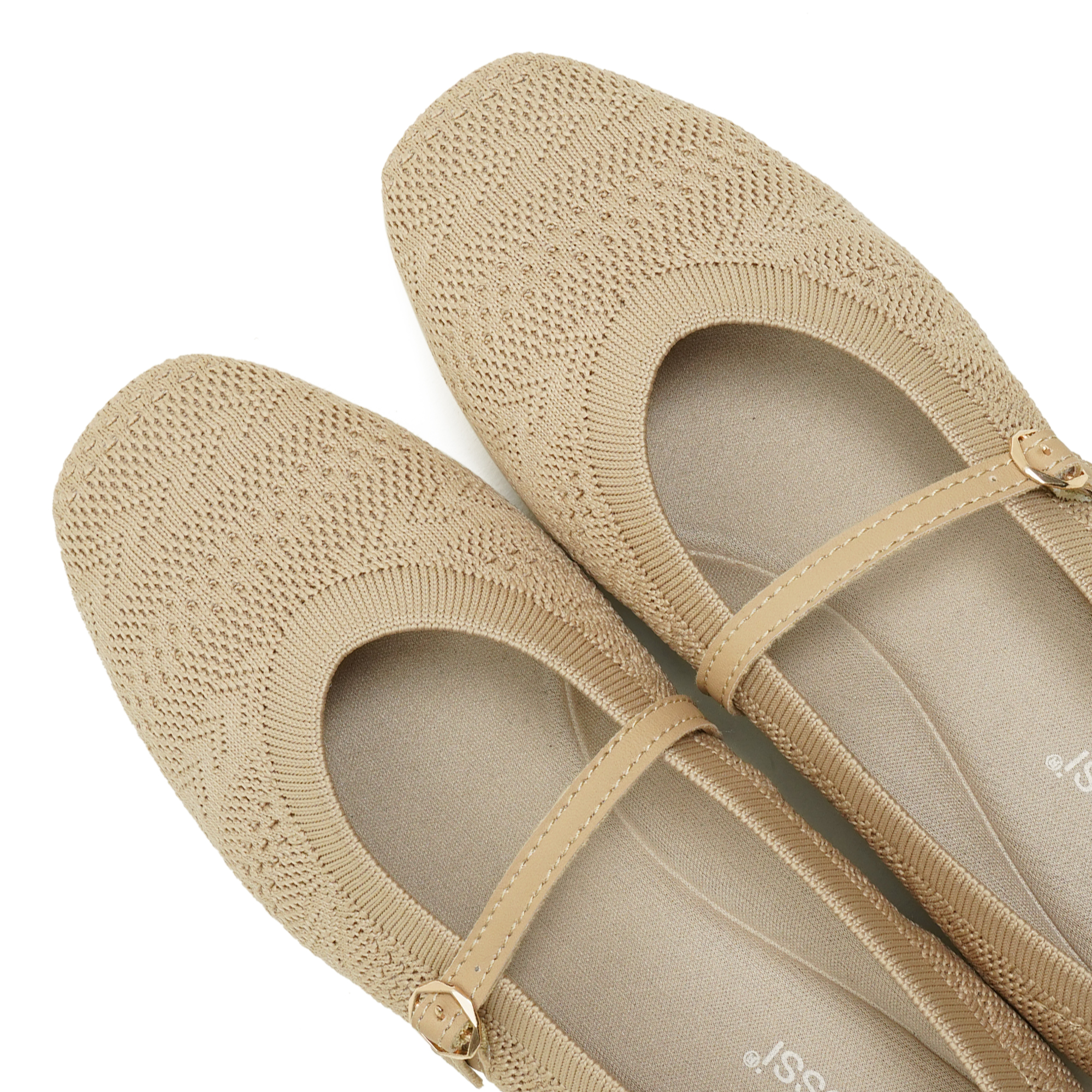 Keep it classy and comfortable with the Nino Rossi Women’s Pump in beige, designed in a ballet-inspired Mary Jane style. The knit-textured upper gives a soft, flexible feel, while the strap with a gold-tone buckle adds both a secure fit and a polished finish. With a cushioned footbed and flat sole, this pair is made for day-long comfort—perfect for workdays, outings, and effortless everyday styling.