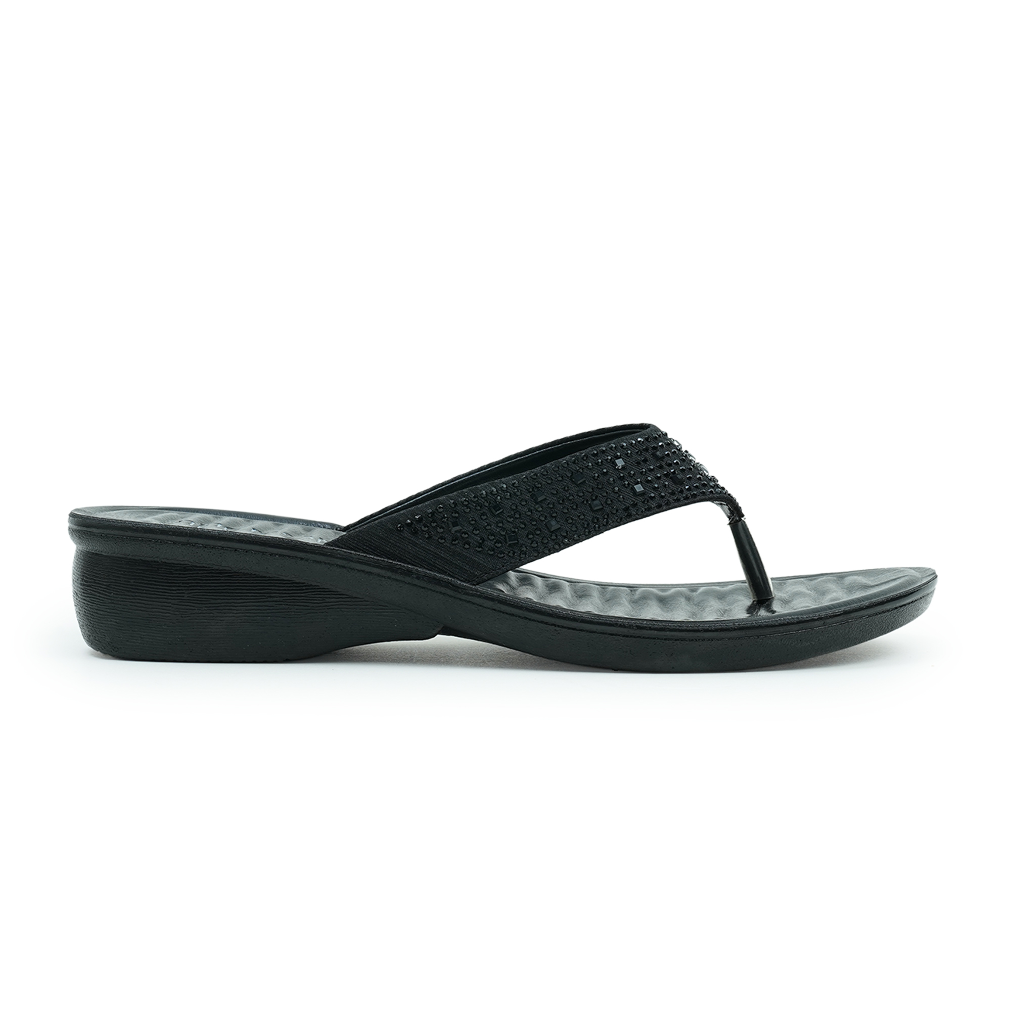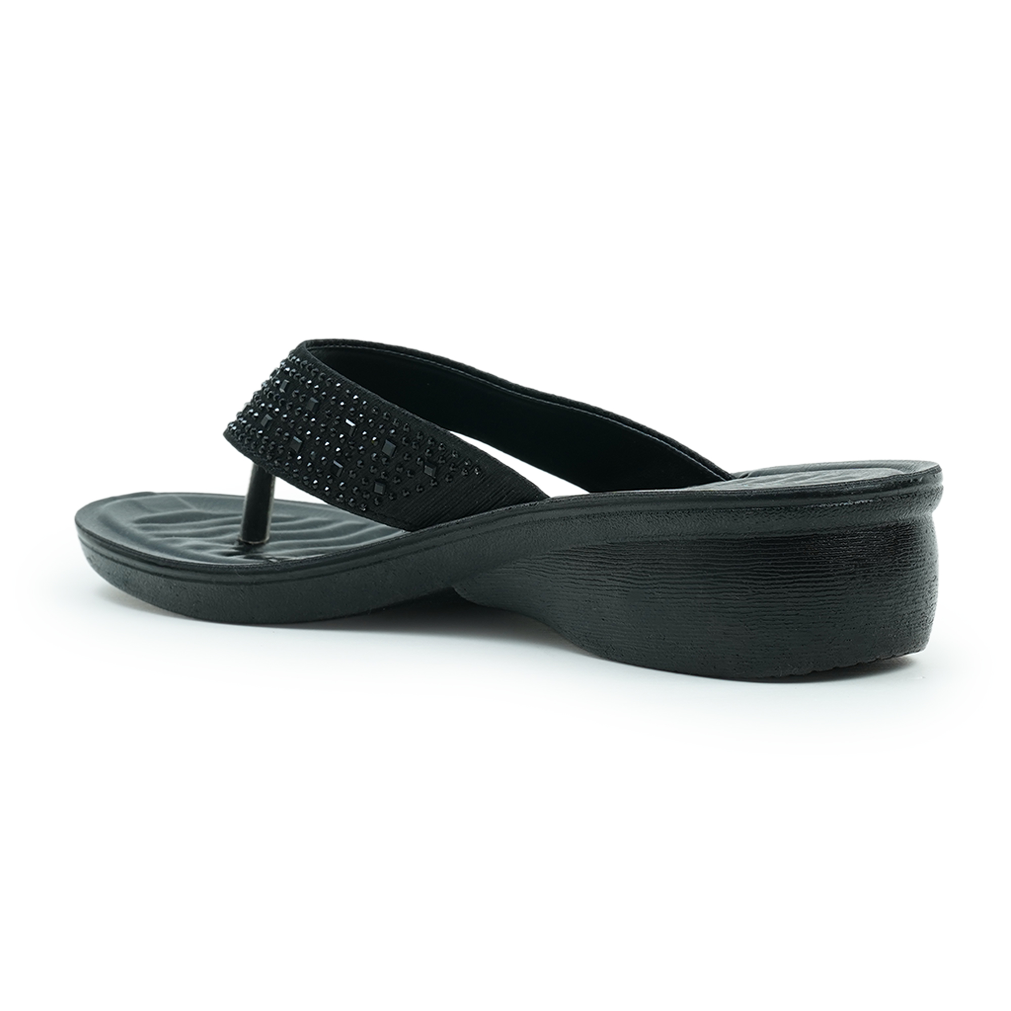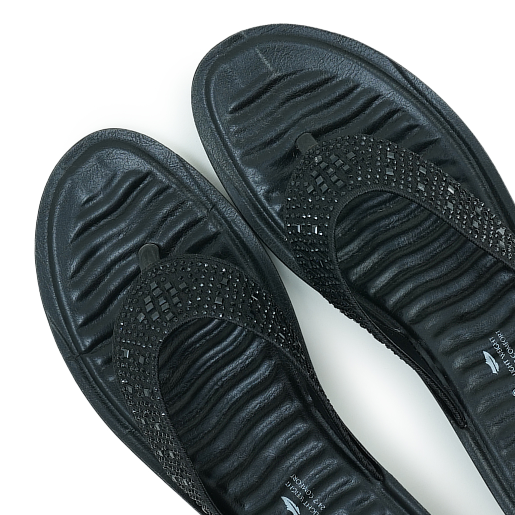 - Black thong sandal with all-over stonework strap