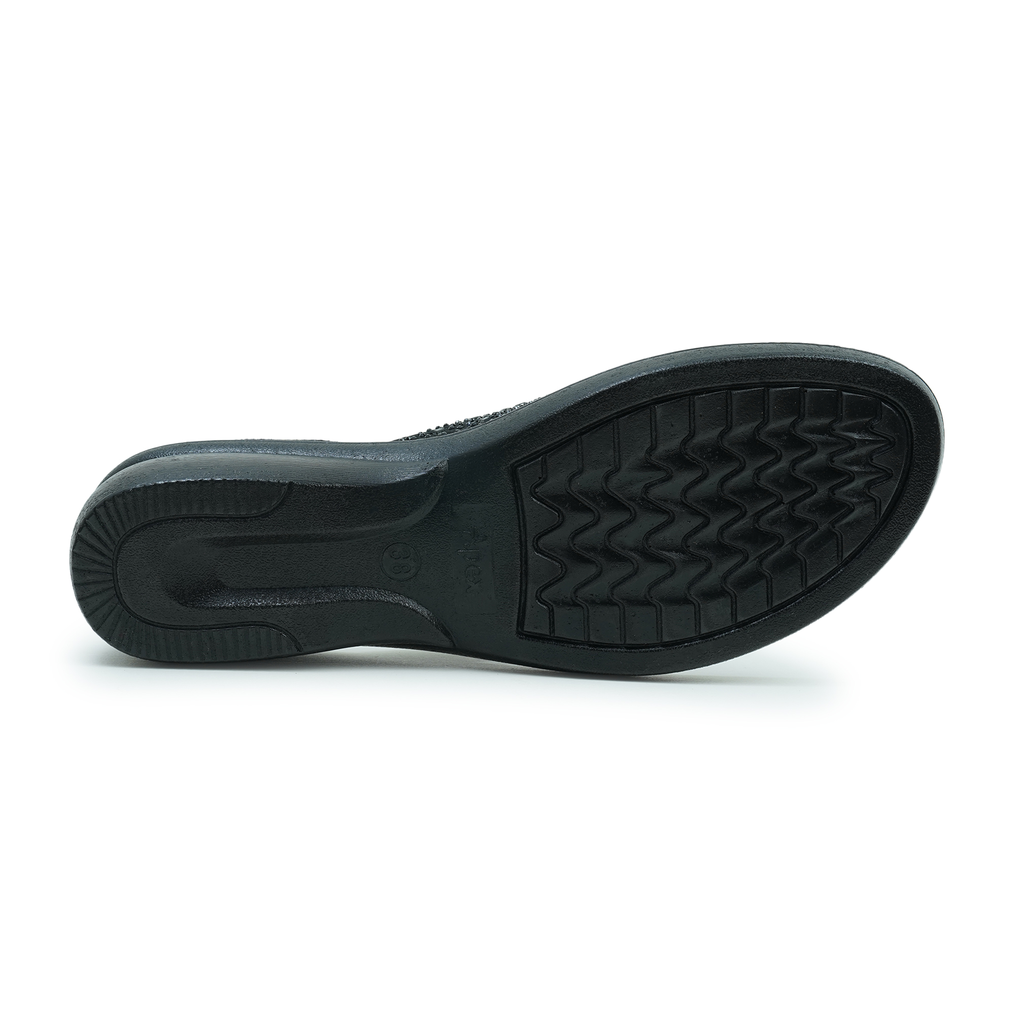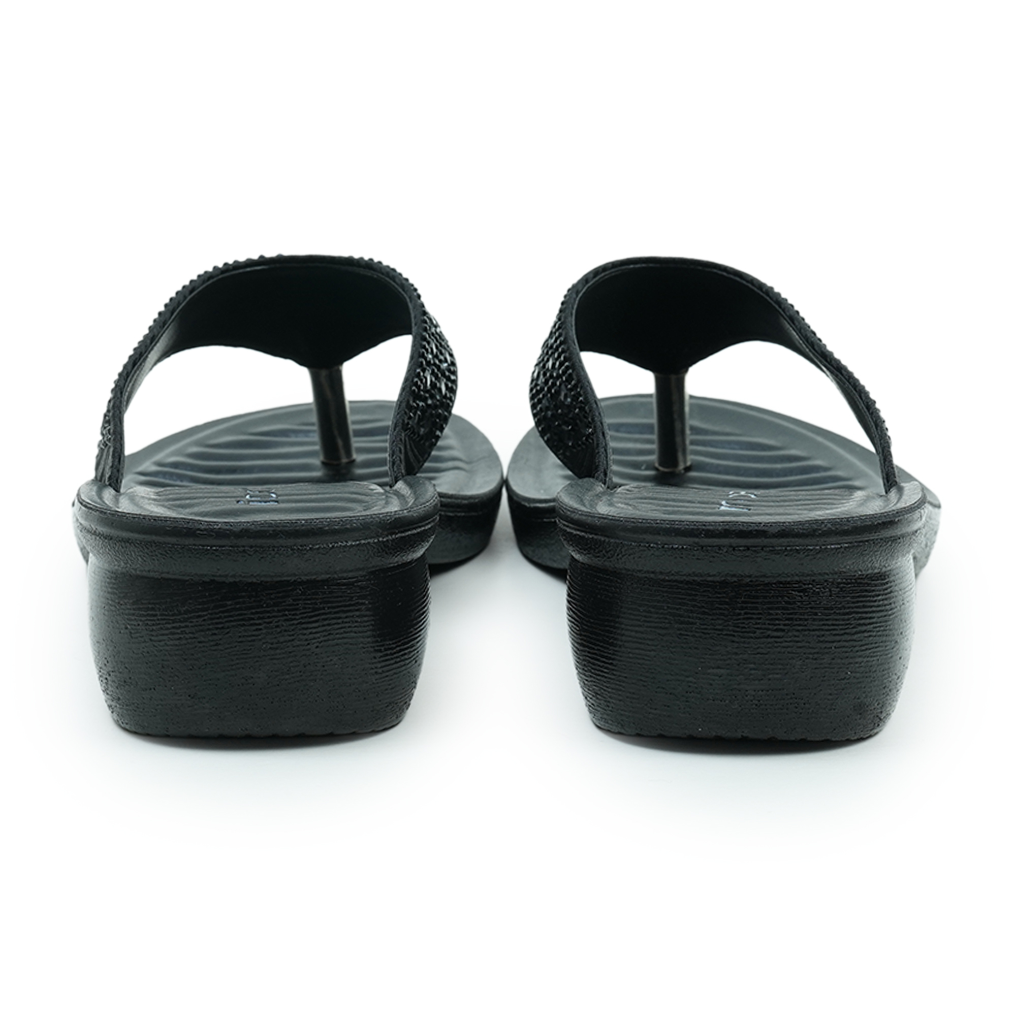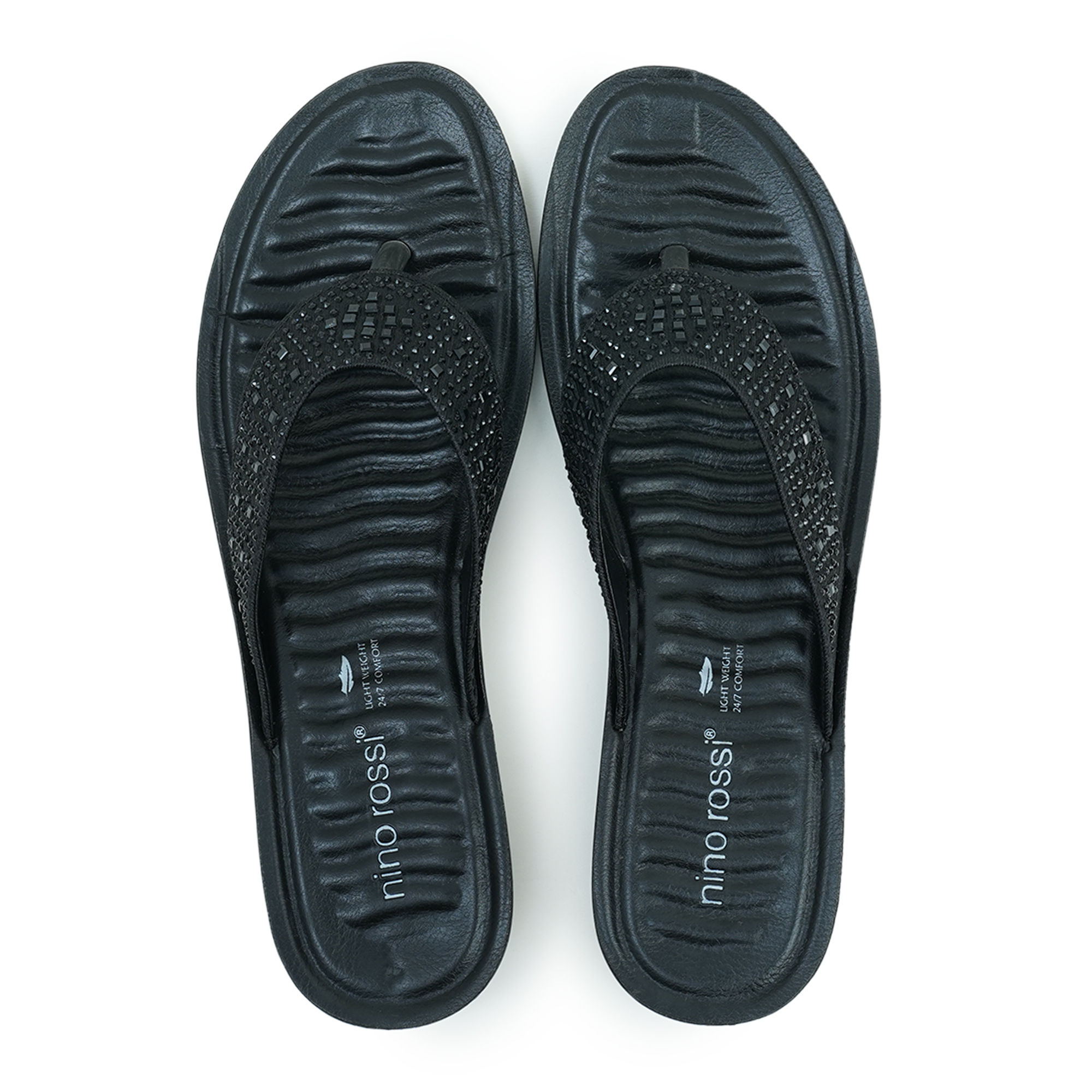- Black thong sandal with all-over stonework strap