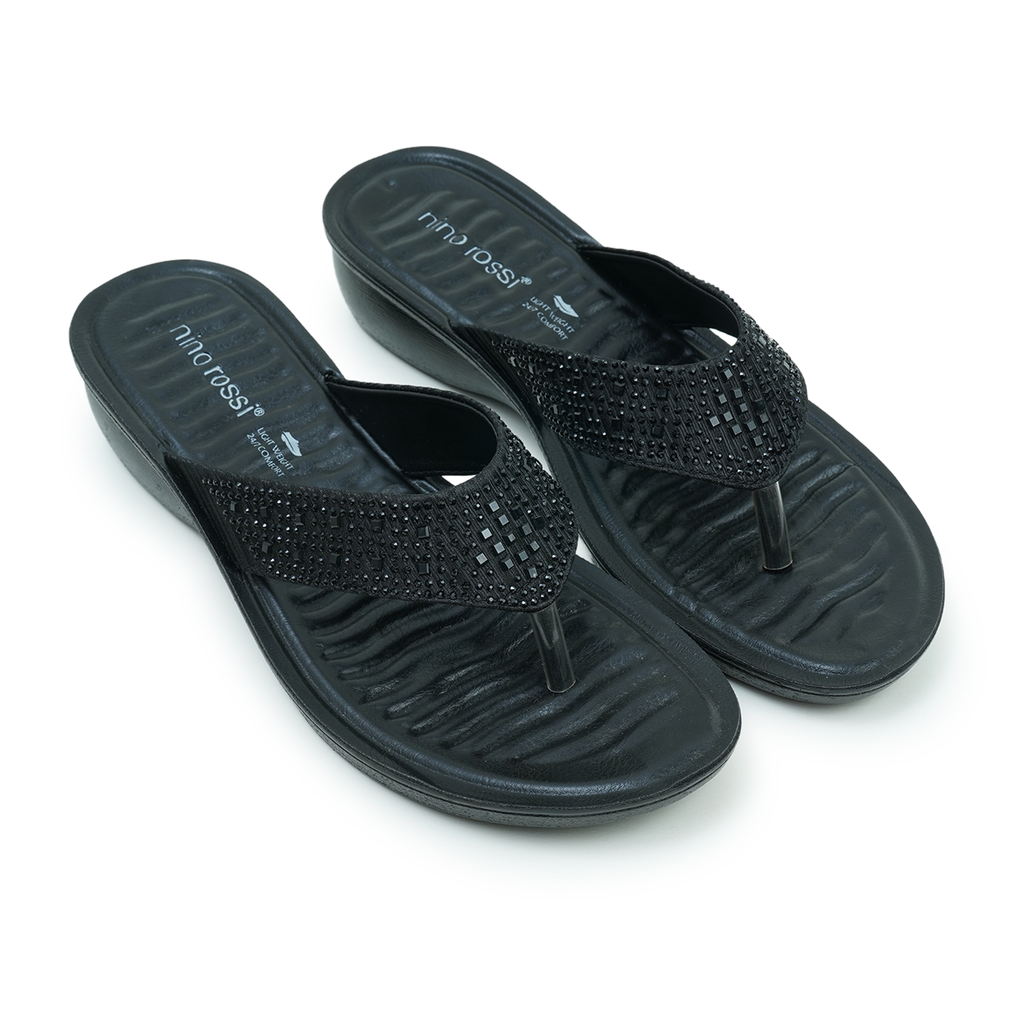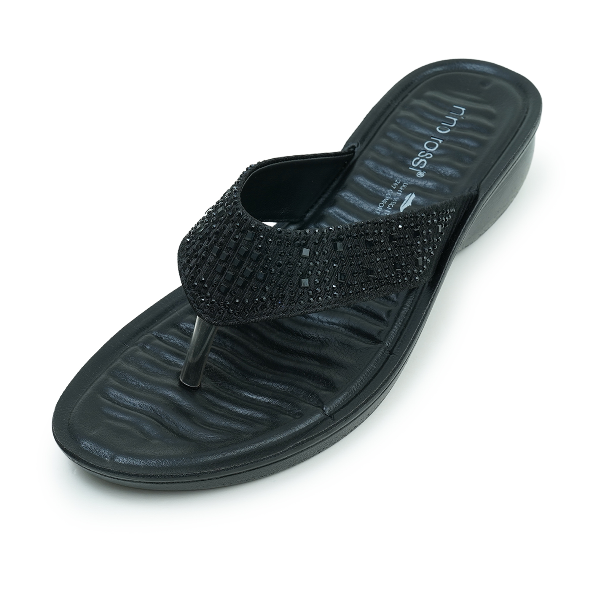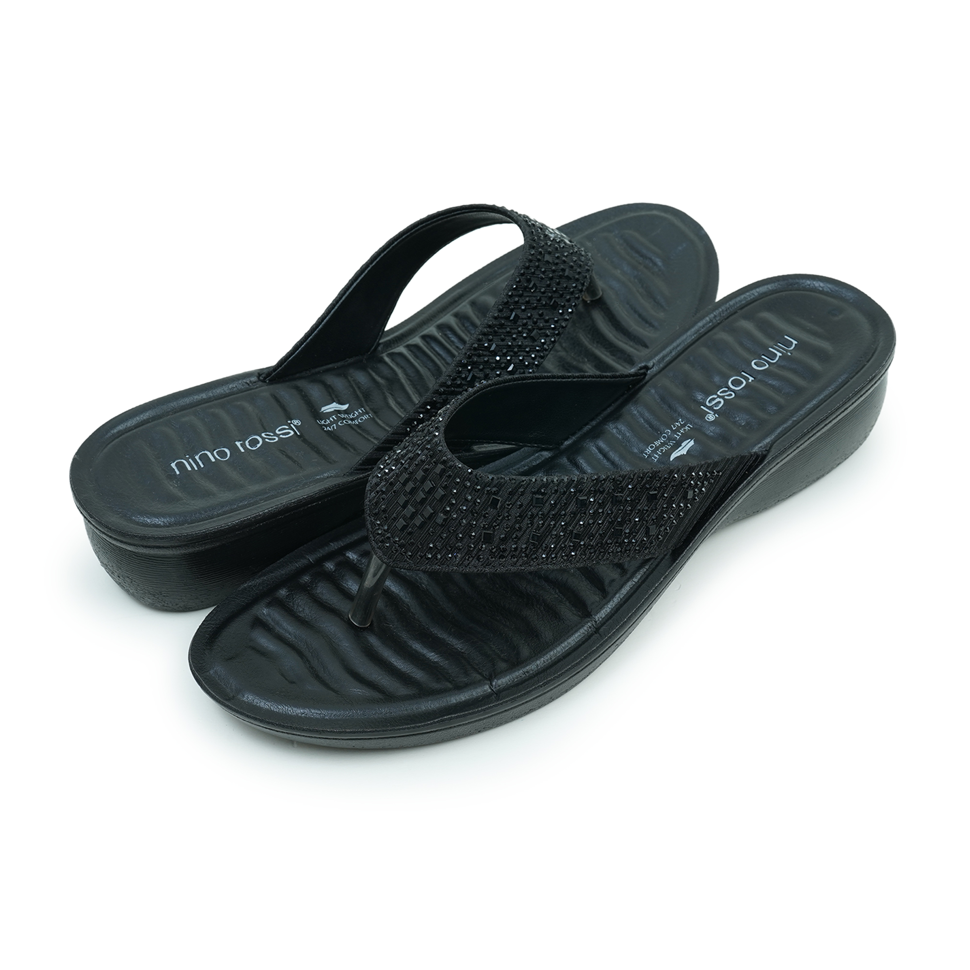 Add a little sparkle to your everyday with this Nino Rossi women’s sandal in classic black. The stonework strap brings a stylish, feminine shine while still keeping the look easy and wearable. A low wedge heel gives you the perfect balance—just enough lift, with steady comfort you can count on through long days.