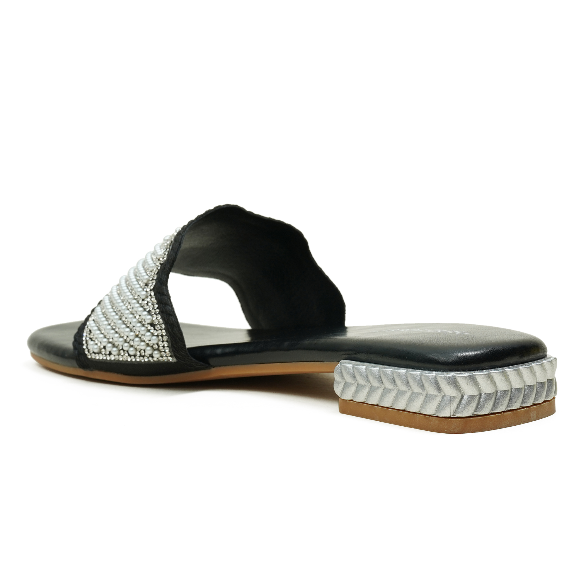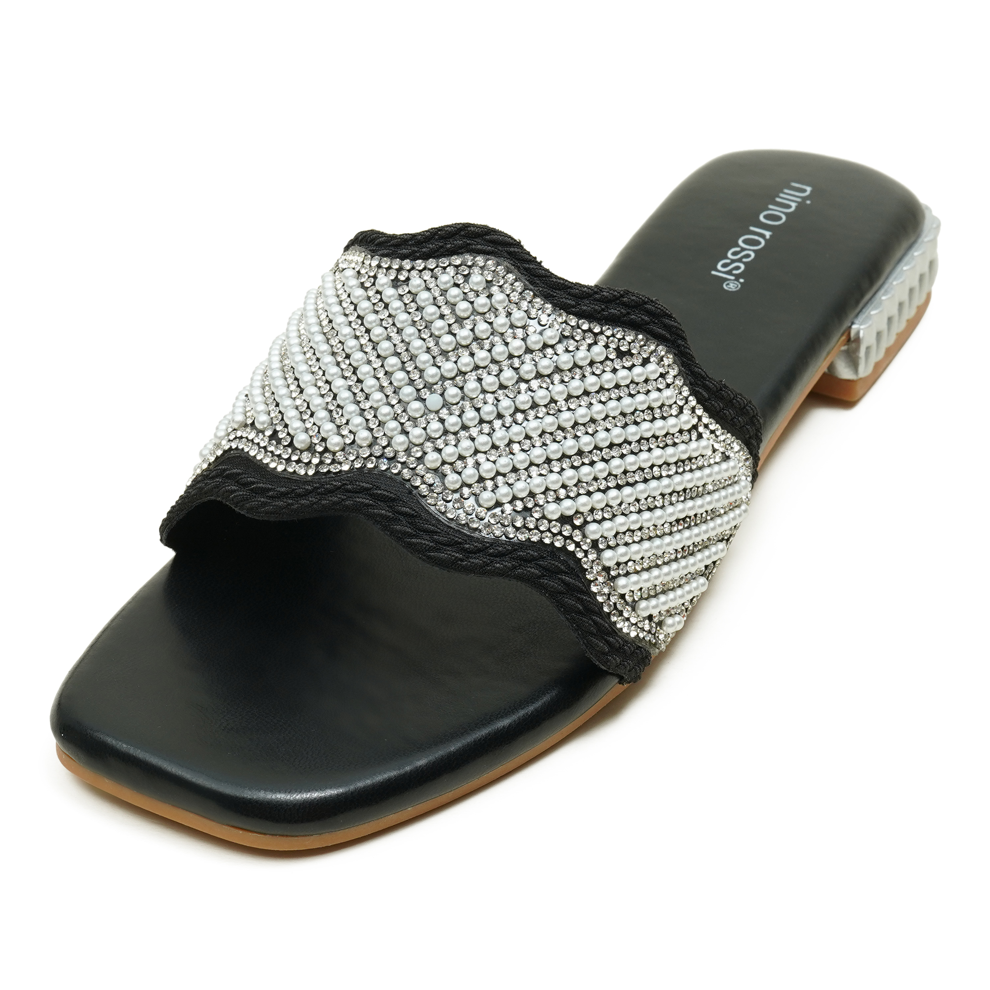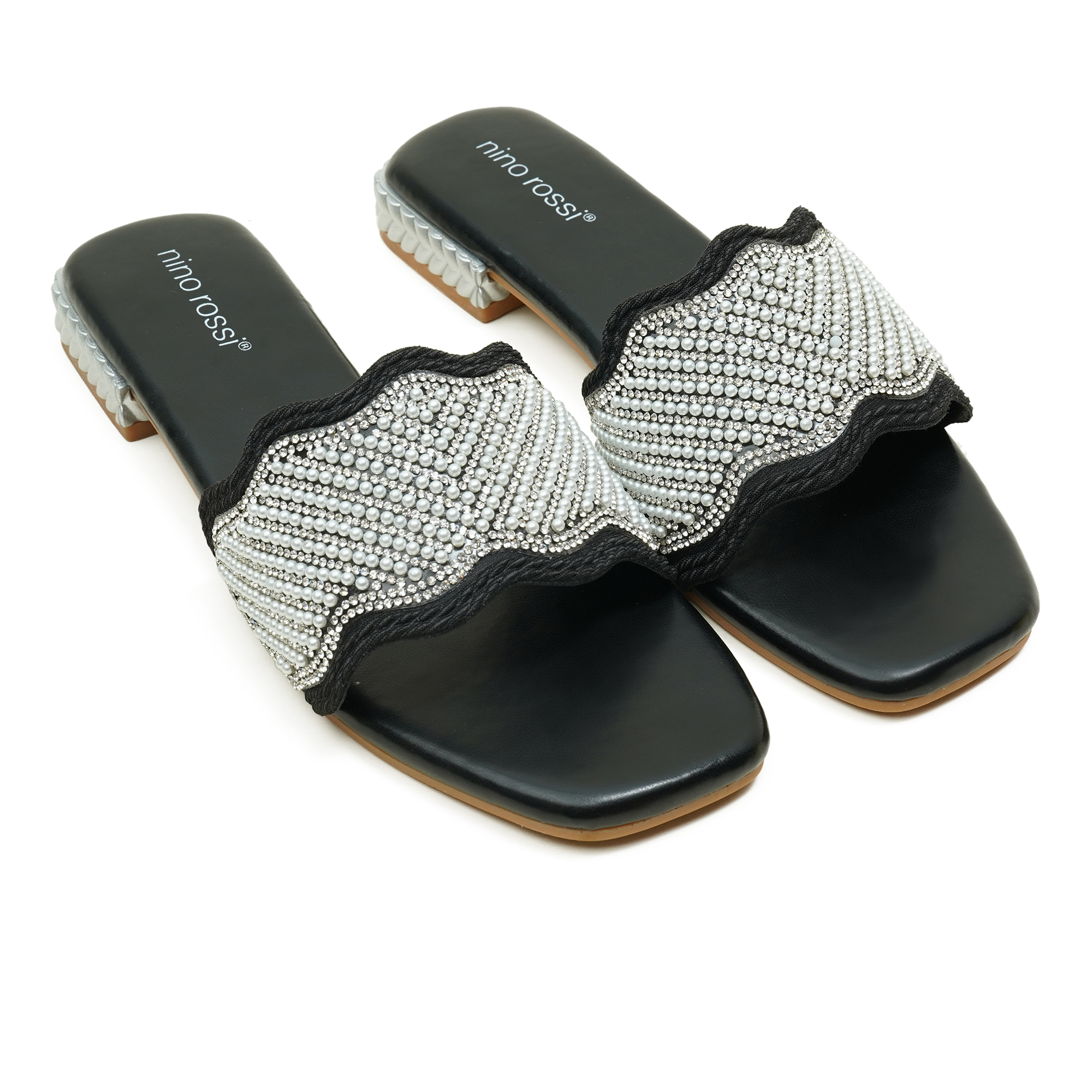 Add instant sparkle to your everyday looks with the Nino Rossi Women’s Slip-On Sandal in black. Designed with a sleek, easy-to-wear silhouette, it features an elegant silver stone-embellished strap that brings a festive touch without compromising on comfort. The cushioned feel makes it a great choice for long hours, while the classic black base ensures it pairs effortlessly with jeans, dresses, and ethnic wear. A perfect pick when you want comfort with a polished, stylish finish.