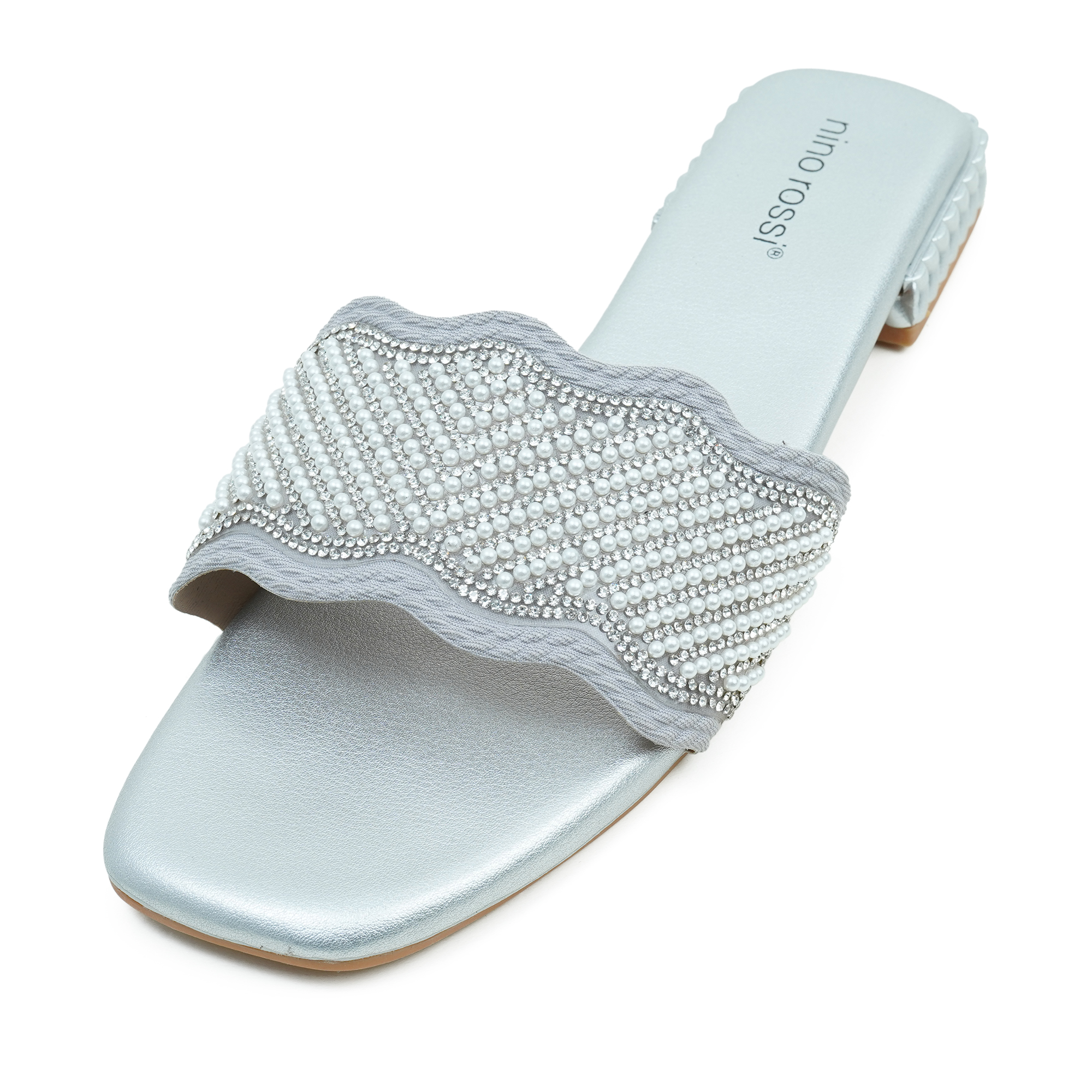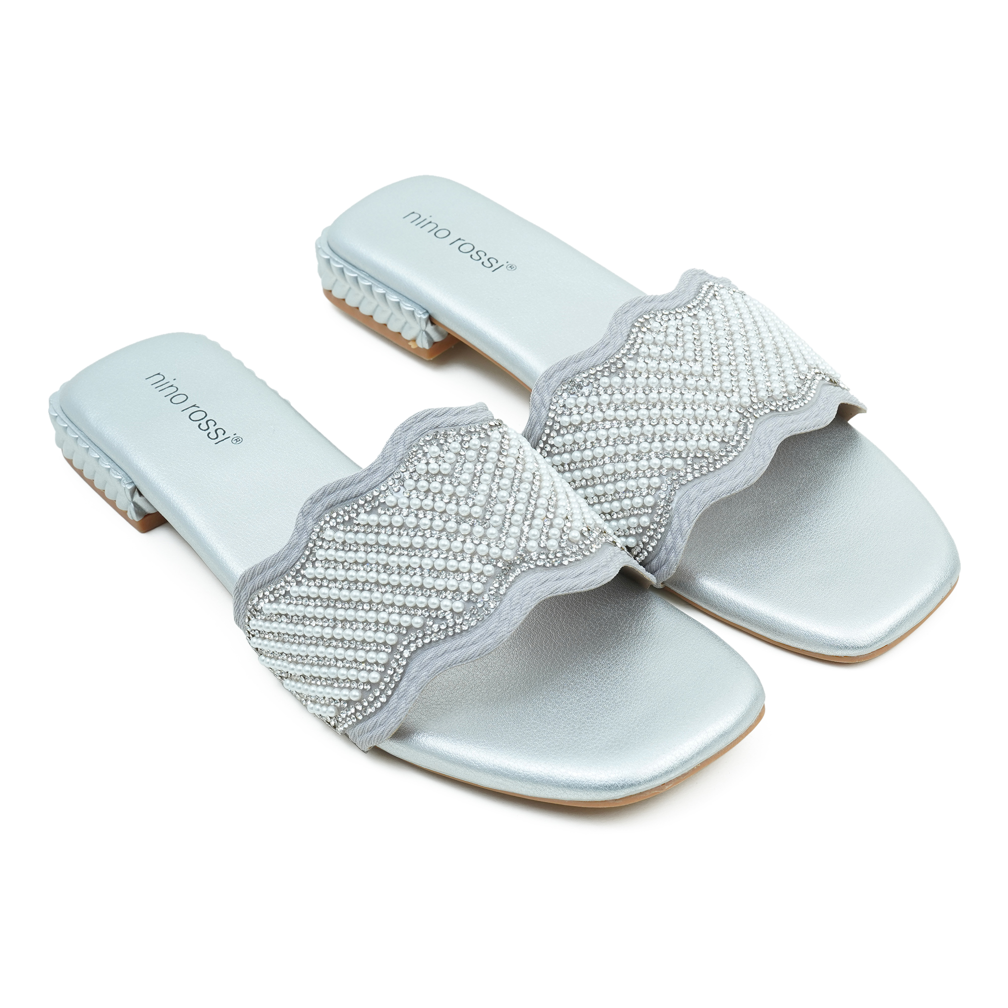 Shine with subtle elegance in the Nino Rossi Women’s Slip-On Sandal in a chic Pewter finish. Designed for easy, on-the-go wear, it features a stunning silver stone-embellished strap that adds instant sparkle while keeping the look refined. The comfortable construction makes it ideal for daily use—perfect for errands, brunch, or evening catch-ups. Style it with jeans, dresses, kurtis, or co-ords for a polished, effortless finish.