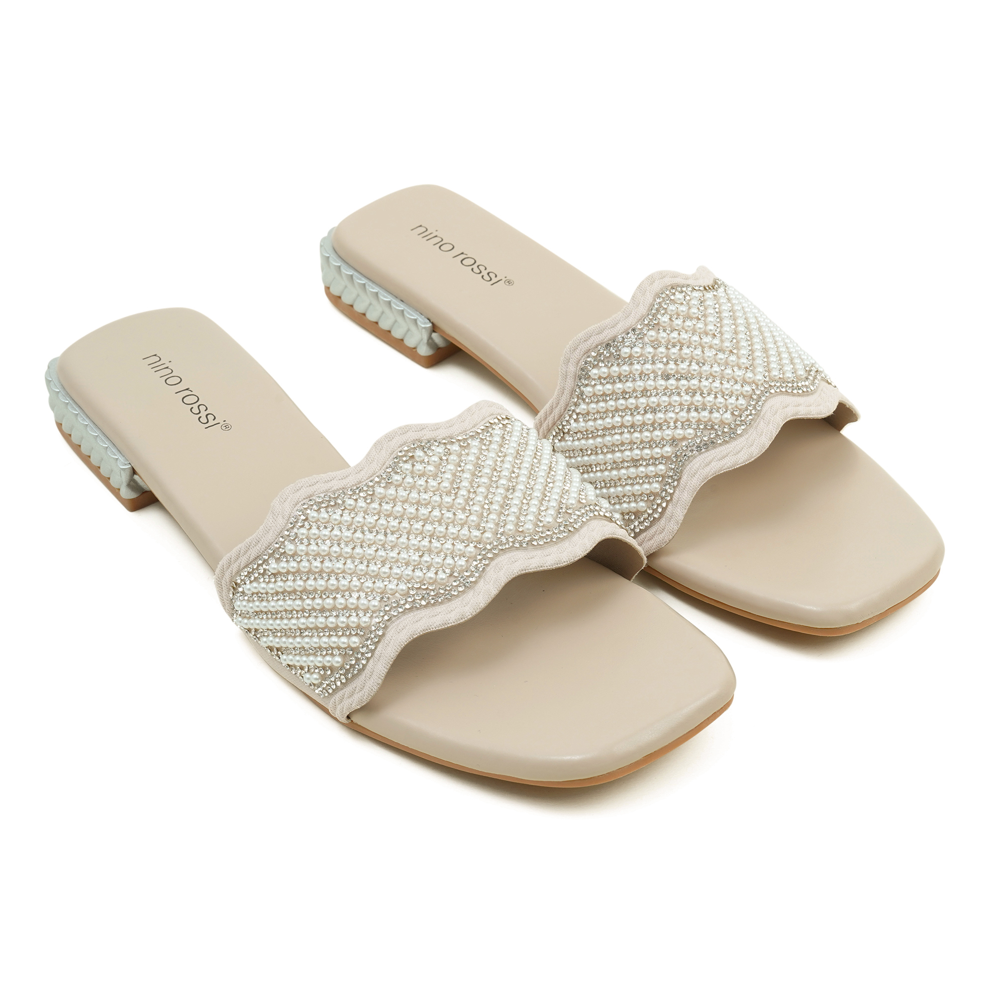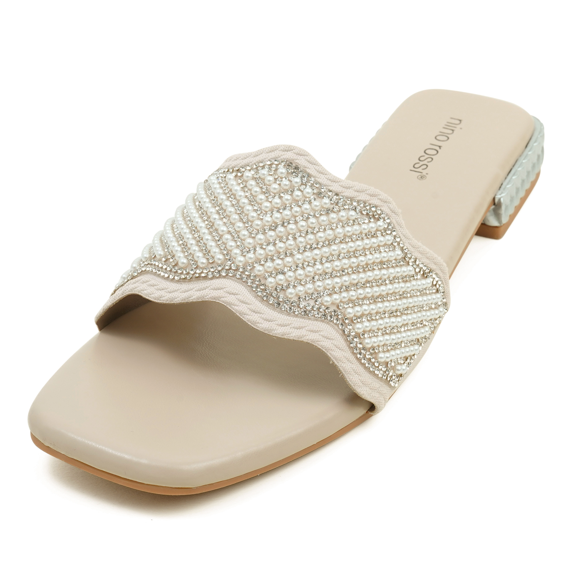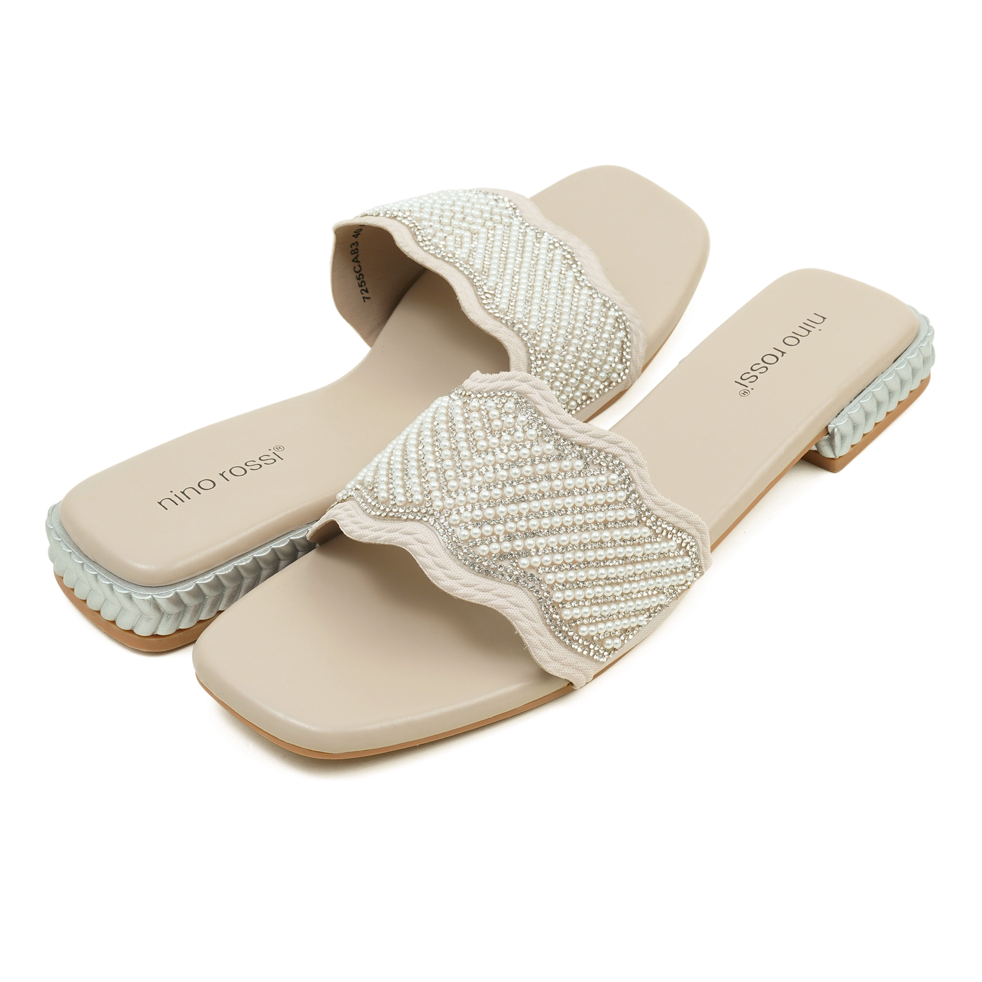 Step out in comfort and shine with the Nino Rossi Women’s Slip-On Sandal, designed with a low heel that offers the perfect balance for everyday wear. The easy slip-on style makes it a go-to choice for busy mornings, while the silver stone detailing adds a refined sparkle that elevates even simple outfits. Comfortable enough for all-day use, this sandal pairs beautifully with jeans, dresses, or ethnic wear—giving you a polished look without compromising on ease.