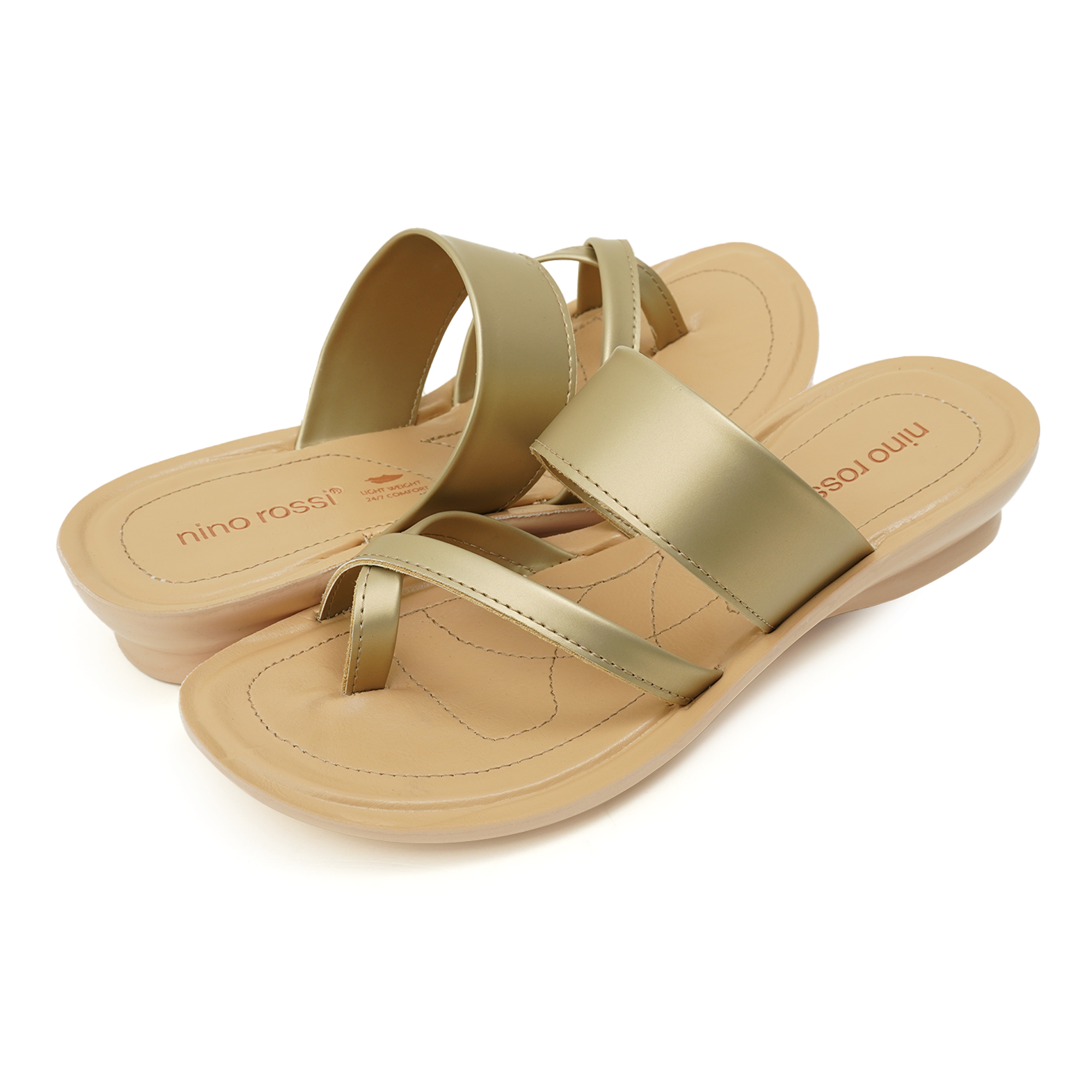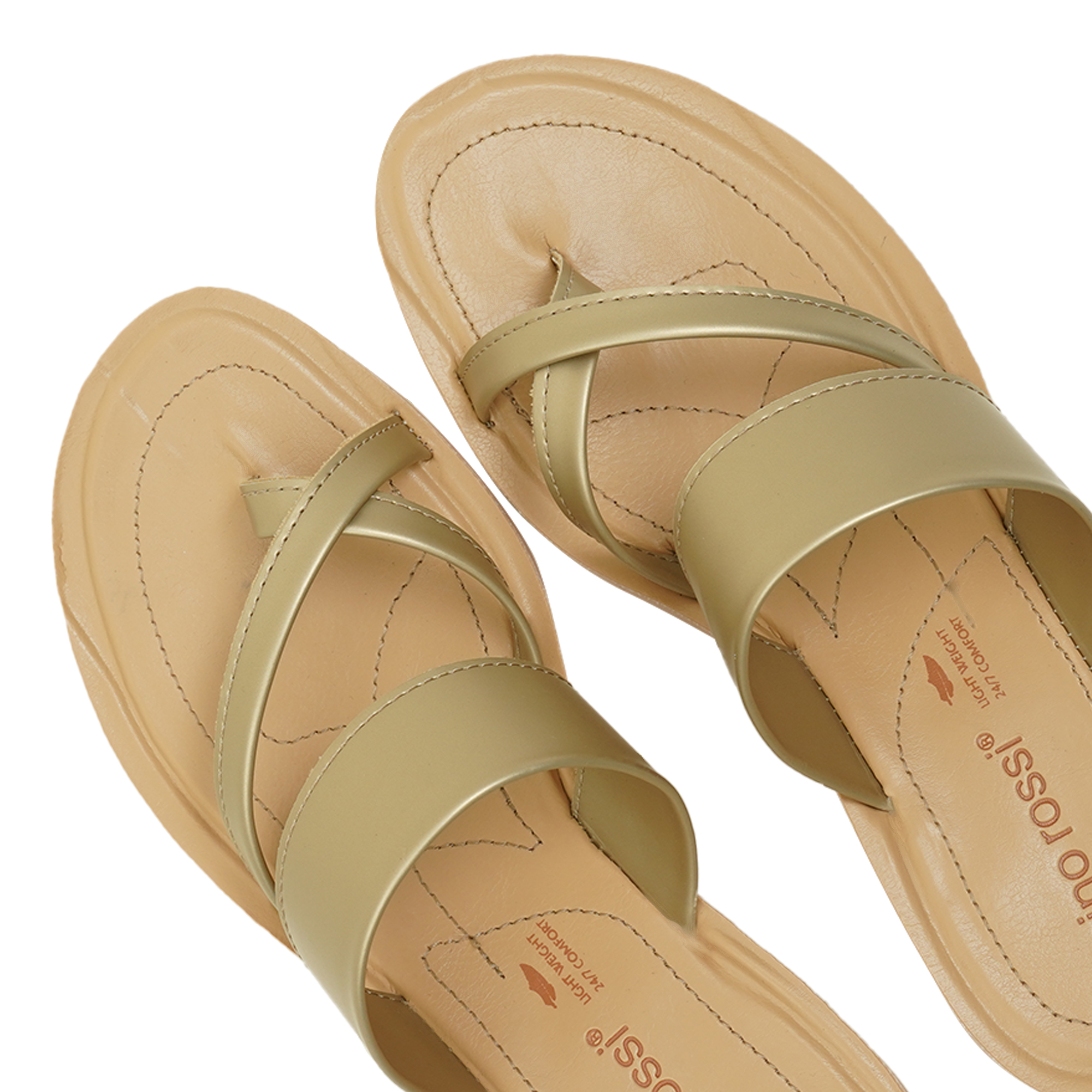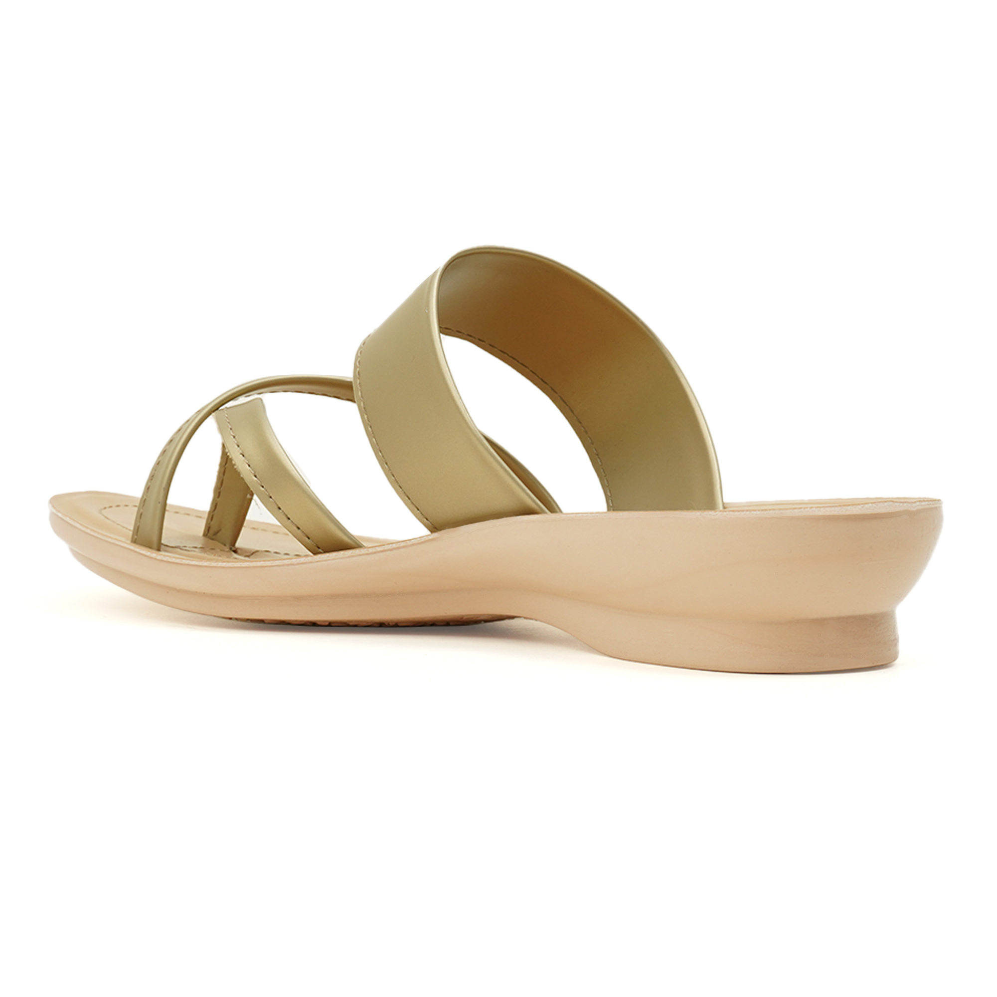 Sleek lines, sun-lit sheen. This golden chapli elevates the everyday with a soft metallic glow that pairs as easily with linen separates as with black skinnies. Two sculpted straps and a slim toe-post hug the foot, while the feather-light FeelLight sole turns pavement into plush.