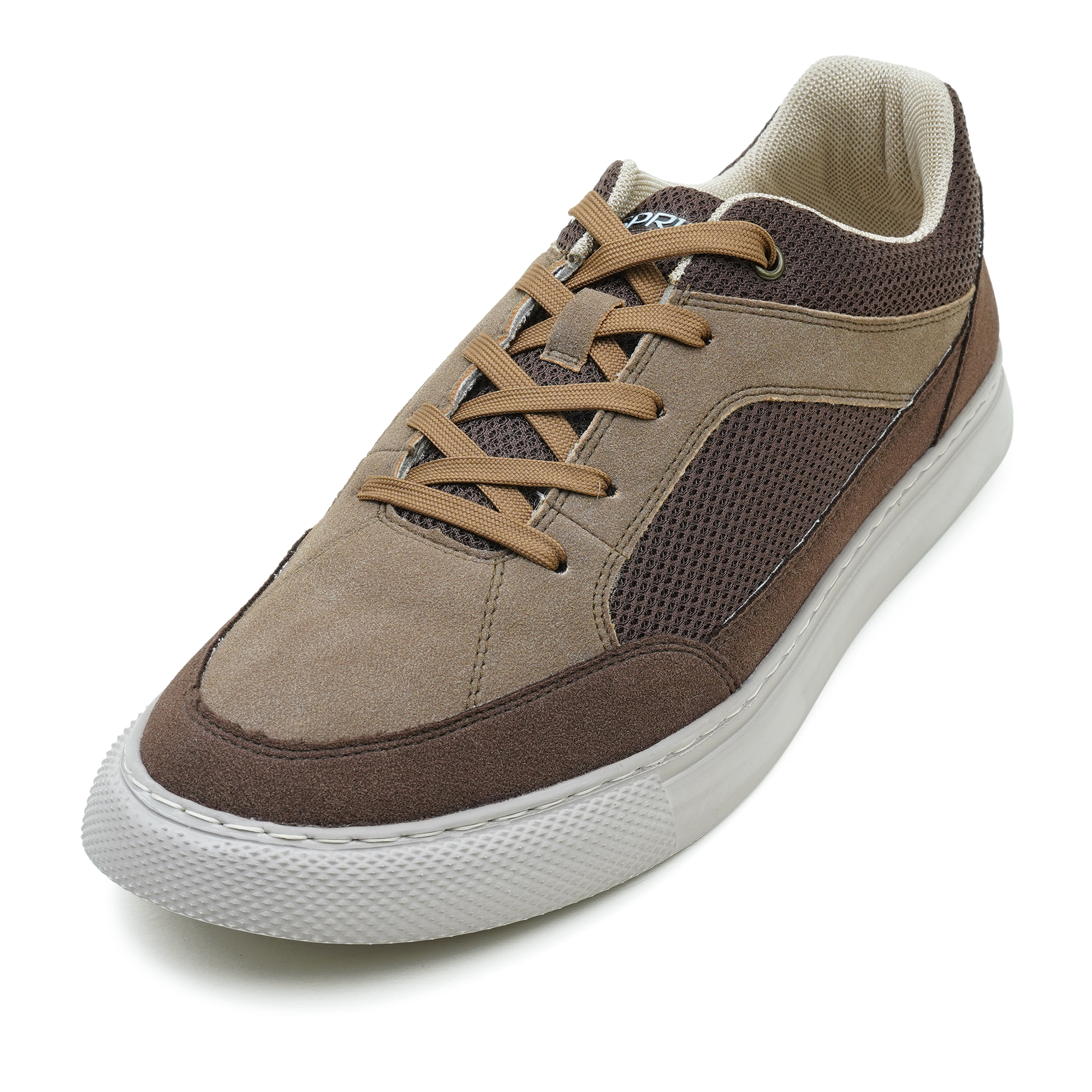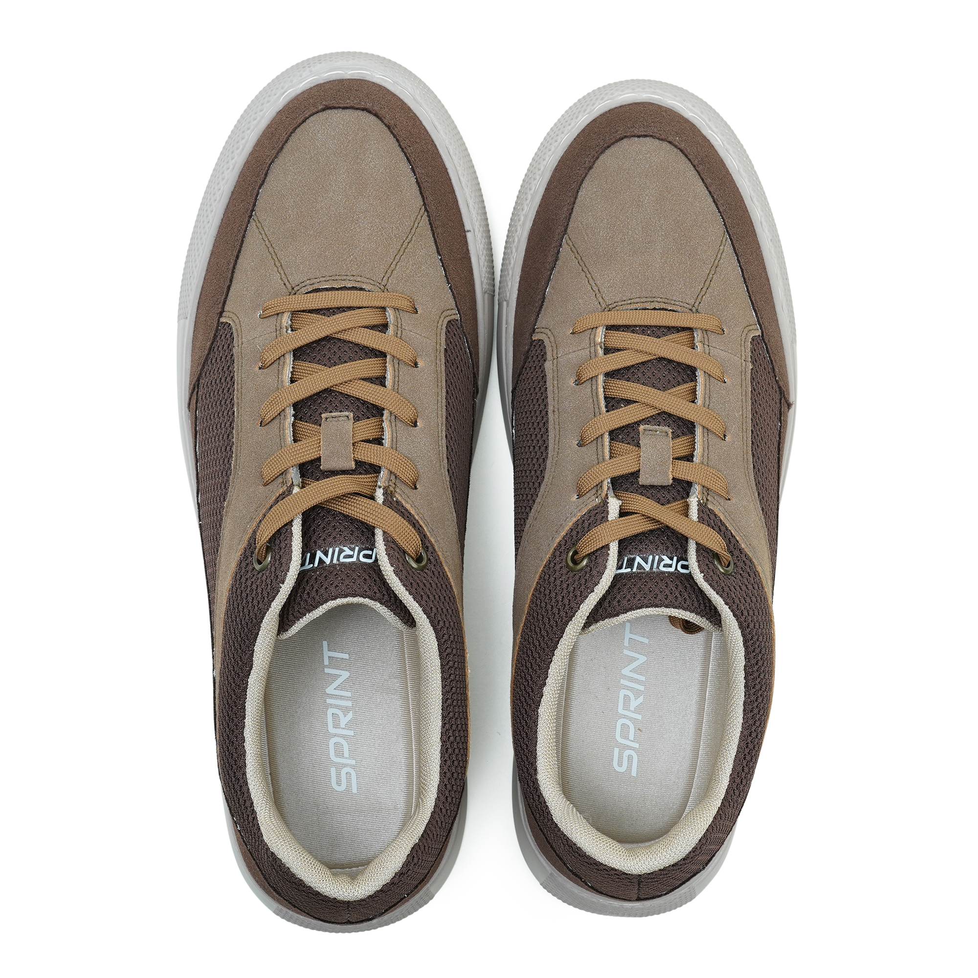Sprint’s men’s canvas shoe in dark brown blends smart casual style with everyday practicality. A smooth PU upper pairs with breathable canvas panels for a balanced look and improved airflow, while tonal stitching and layered textures add subtle character. The lightweight cushioned sole provides comfortable support for city commutes or weekend strolls, and a durable rubber outsole ensures reliable grip and longwear performance. Thoughtful padding at the collar and a secure lace-up closure deliver a snug, confident fit. Versatile and understated, this Sprint shoe transitions effortlessly from casual workdays to relaxed outings with dependable comfort and refined simplicity.