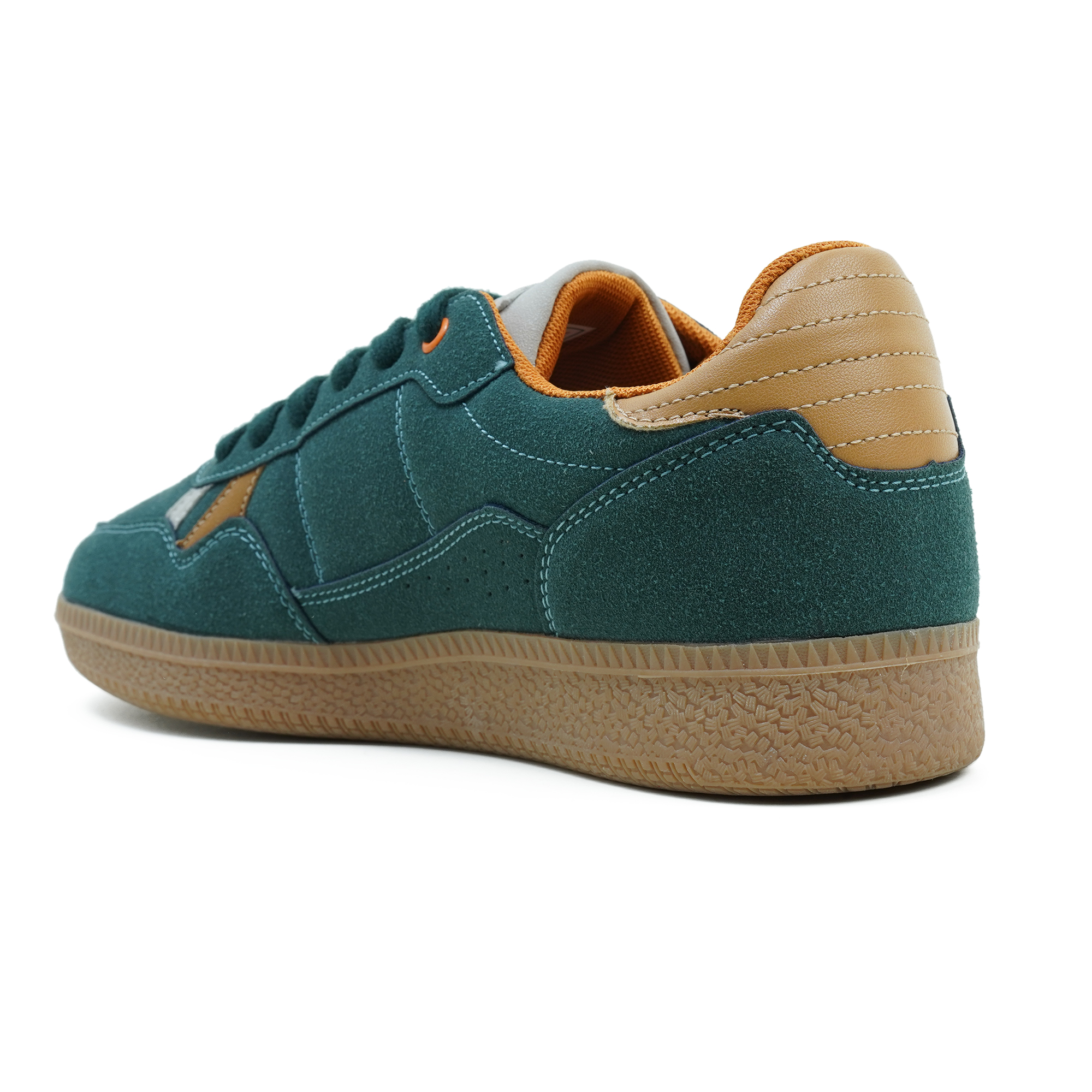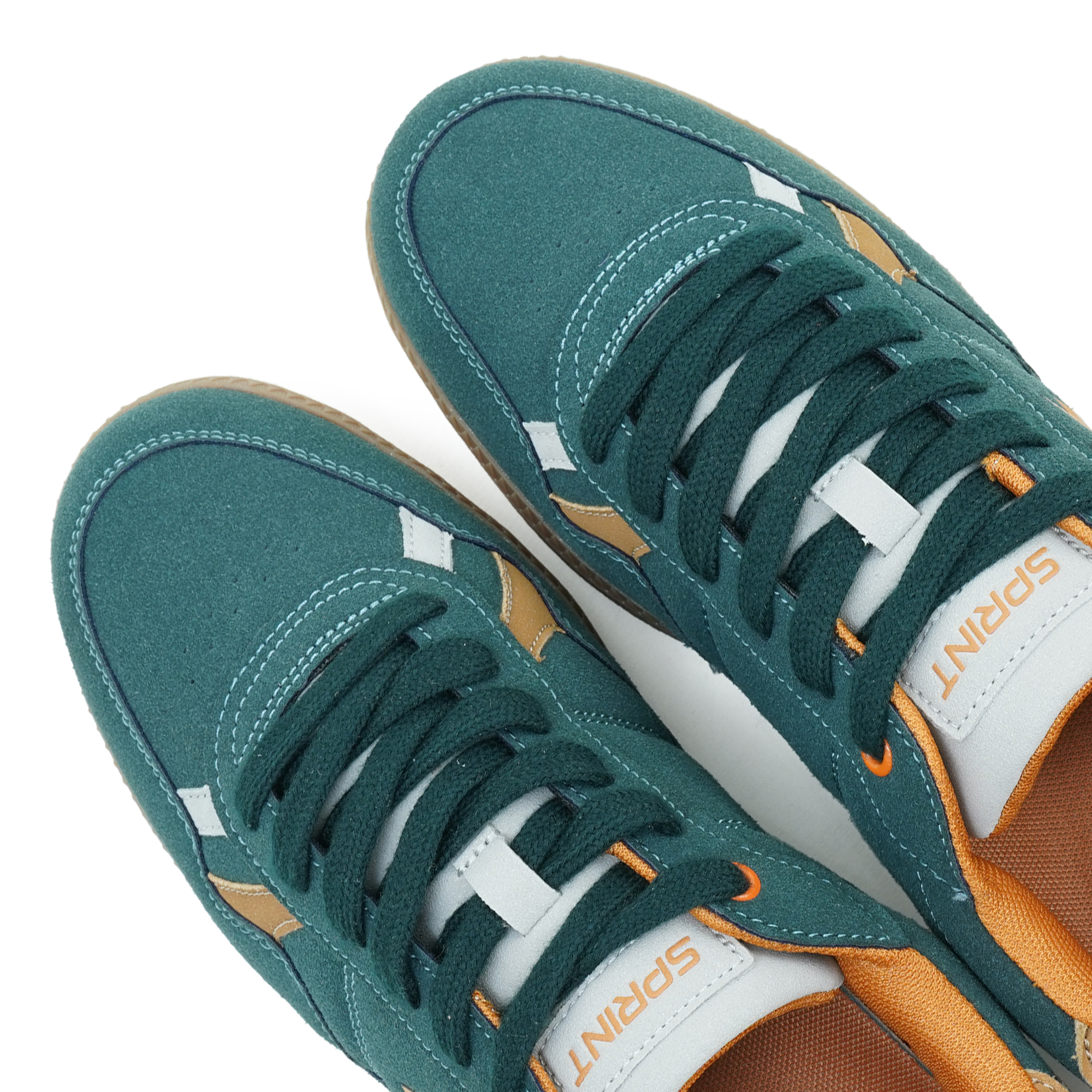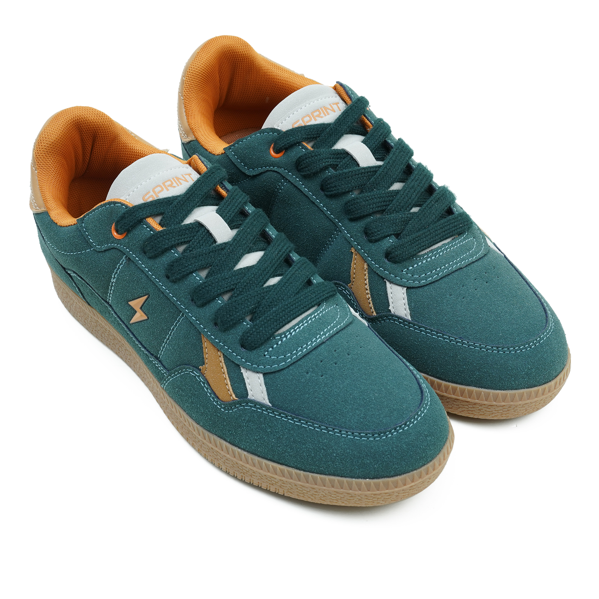 Sprint’s men’s canvas sneaker in a rich green tone blends sporty retro style with everyday comfort. The PU upper provides a smooth, durable finish while canvas and mesh panels add breathability and textured contrast. A lightweight cushioned sole delivers responsive comfort for daily wear, and the durable rubber outsole offers reliable traction on city streets or casual trails. The shoe features a padded collar, secure lace-up closure, and subtle stitched accents for a tidy, finished look. With contrasting inner lining and trim details, this versatile sneaker pairs well with jeans, chinos, or athleisure for an easygoing yet polished appearance.