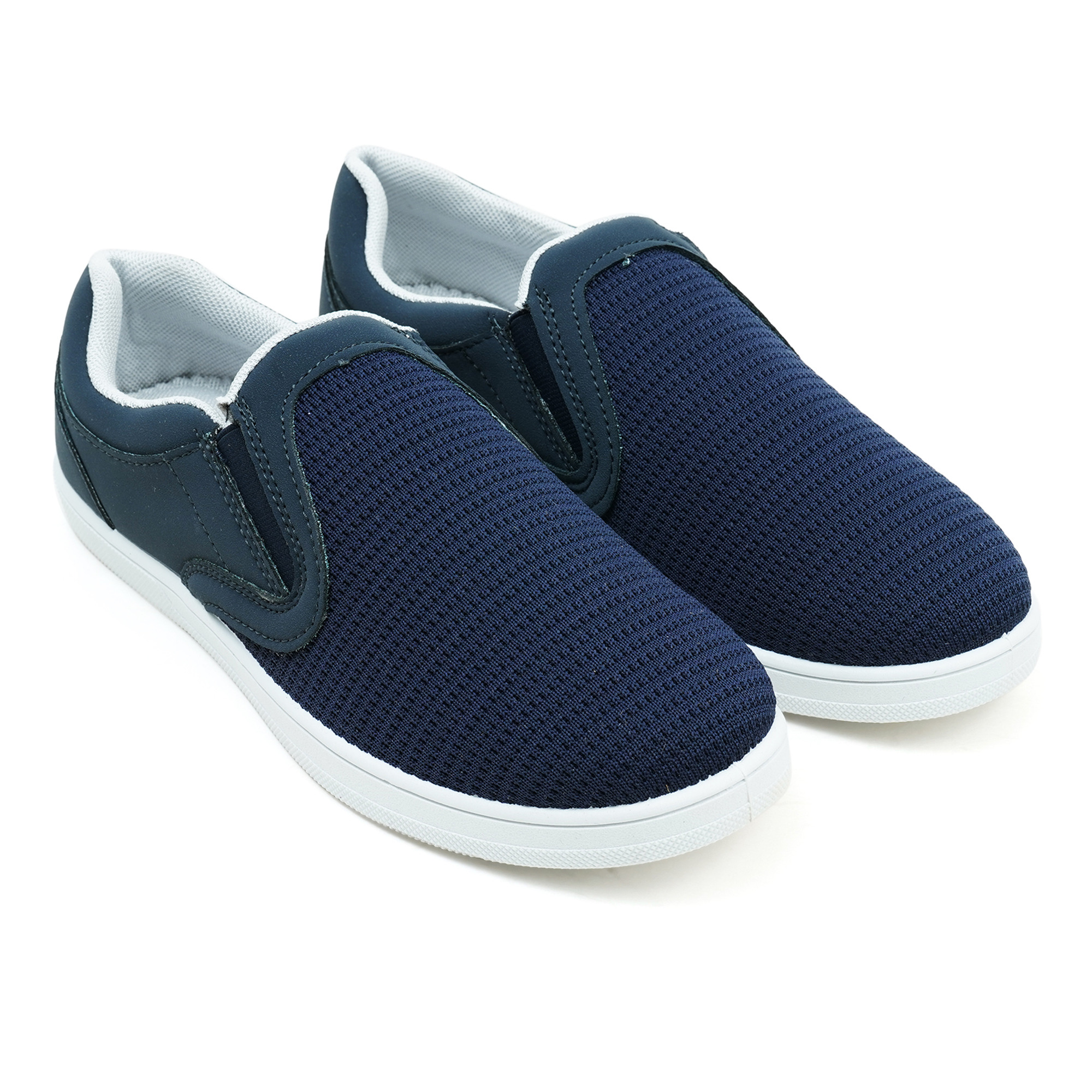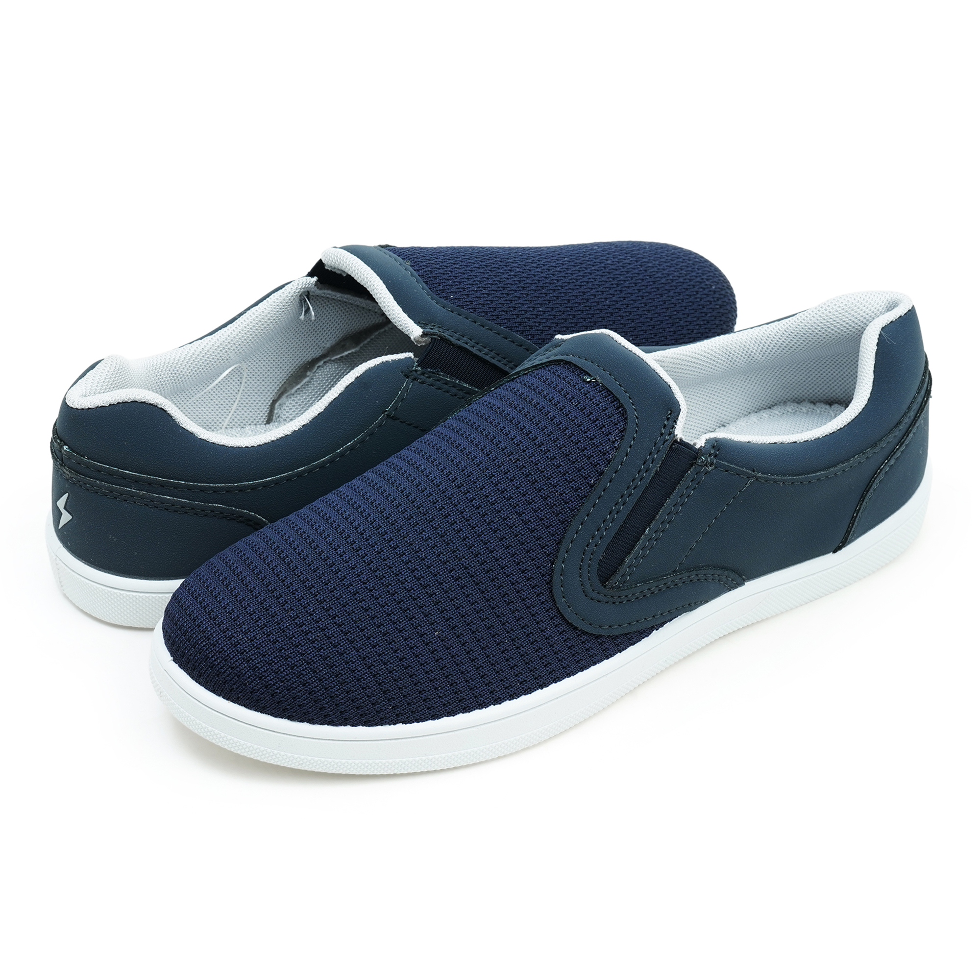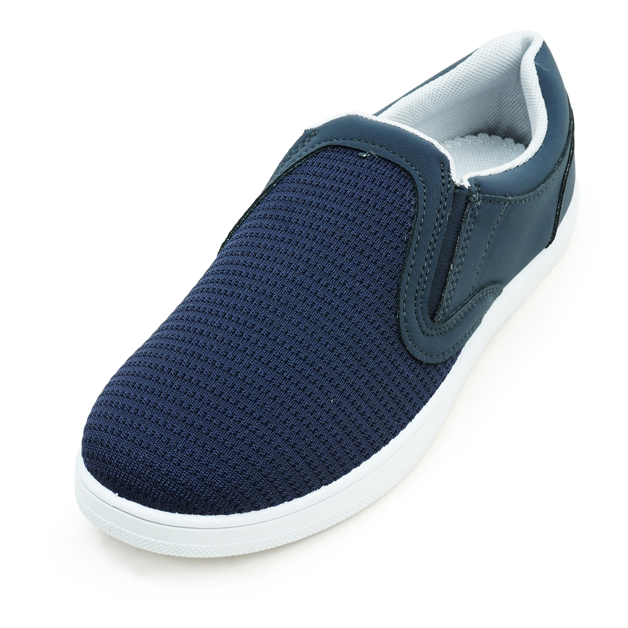 Slide in, head out- no knots, no fuss. Sprint’s specially made navy slip-ons blend breezy knit canvas with sneaker-light PVC cushioning so you can chase every plan in cool comfort. Hidden elastic does the fitting; mesh lining keeps things fresh. Jeans? Joggers? Gym shorts? Yup. Always on the go!