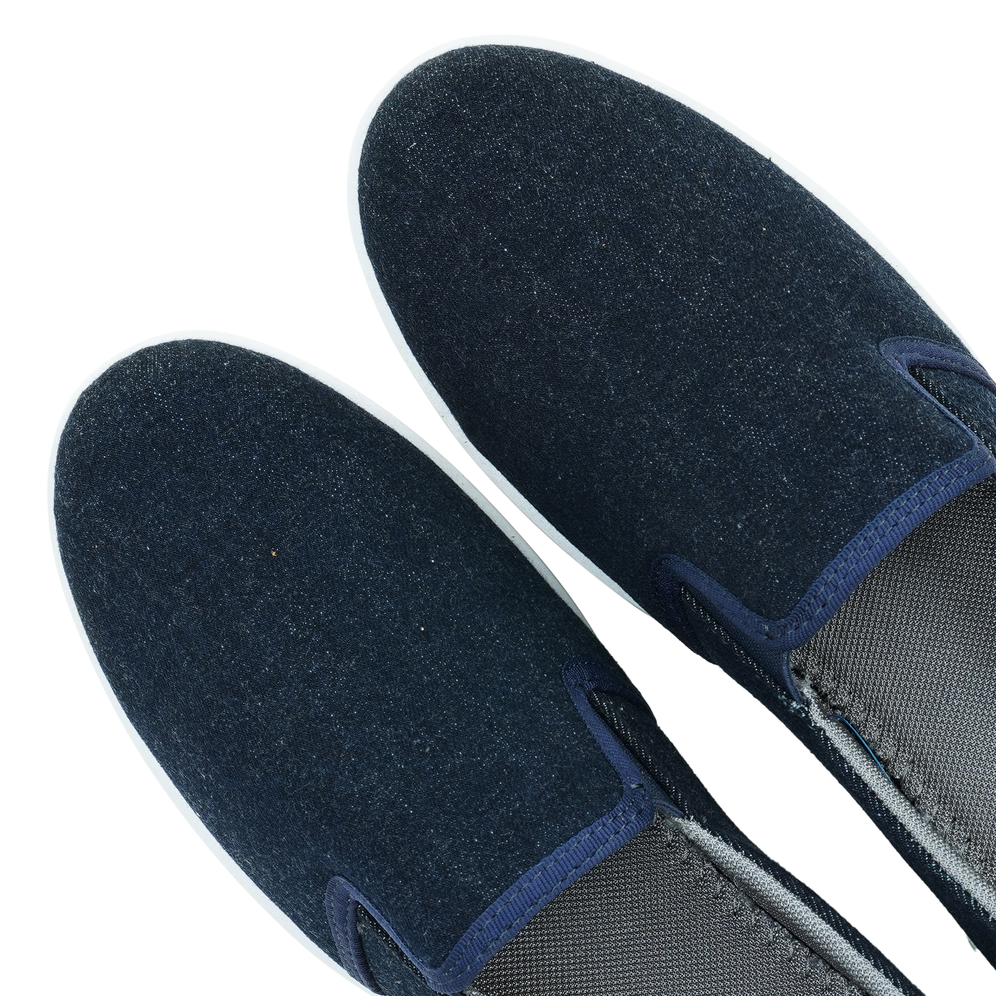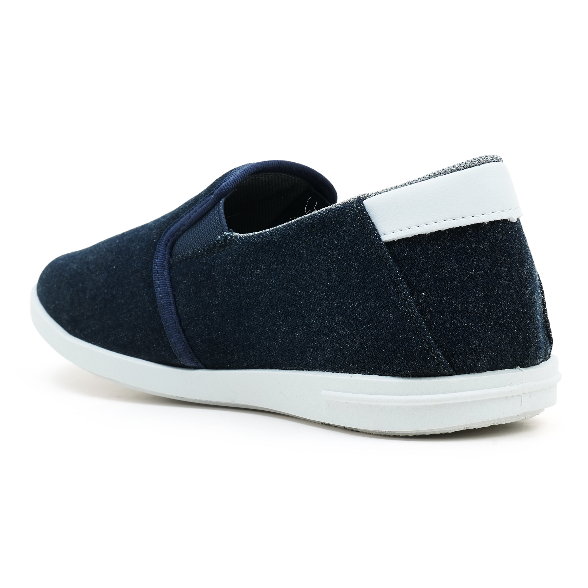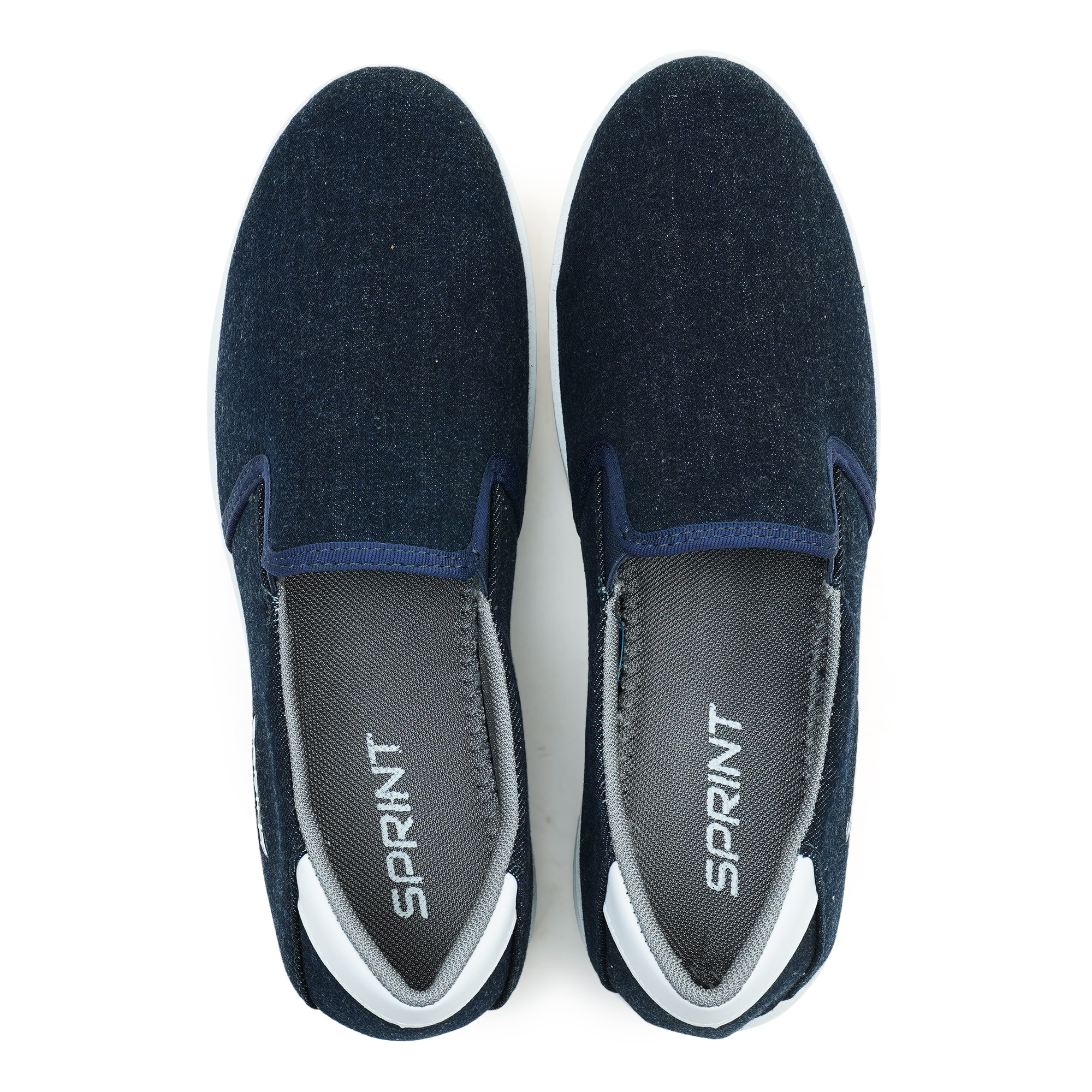 Sprint canvas blends relaxed looks with sneaker-grade comfort. The premium navy canvas upper partners with a moisture-managing mesh lining so your feet stay fresh from the morning train to late-night drives. PVC outsole keeps things light while providing dependable traction on polished floors and city pavements. Dual elastic inserts make it a breeze to kick them on or off.