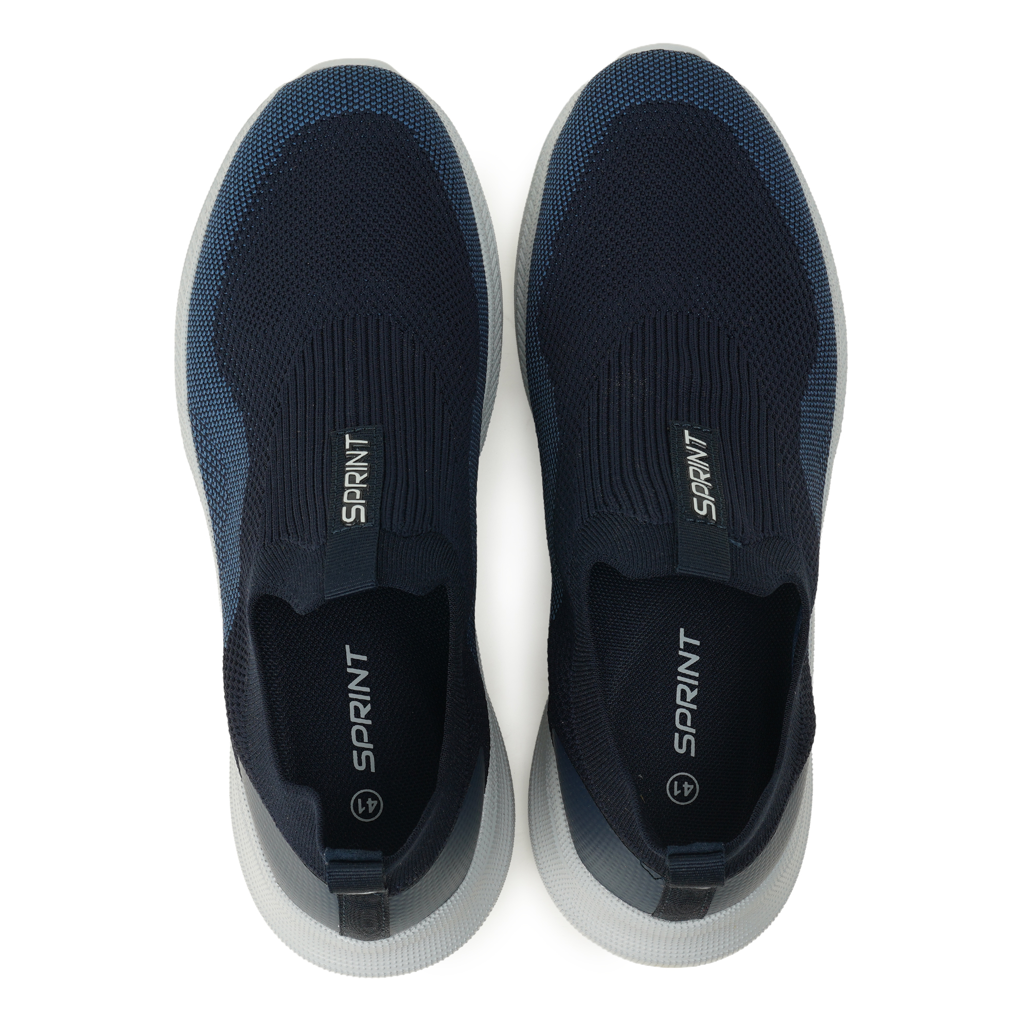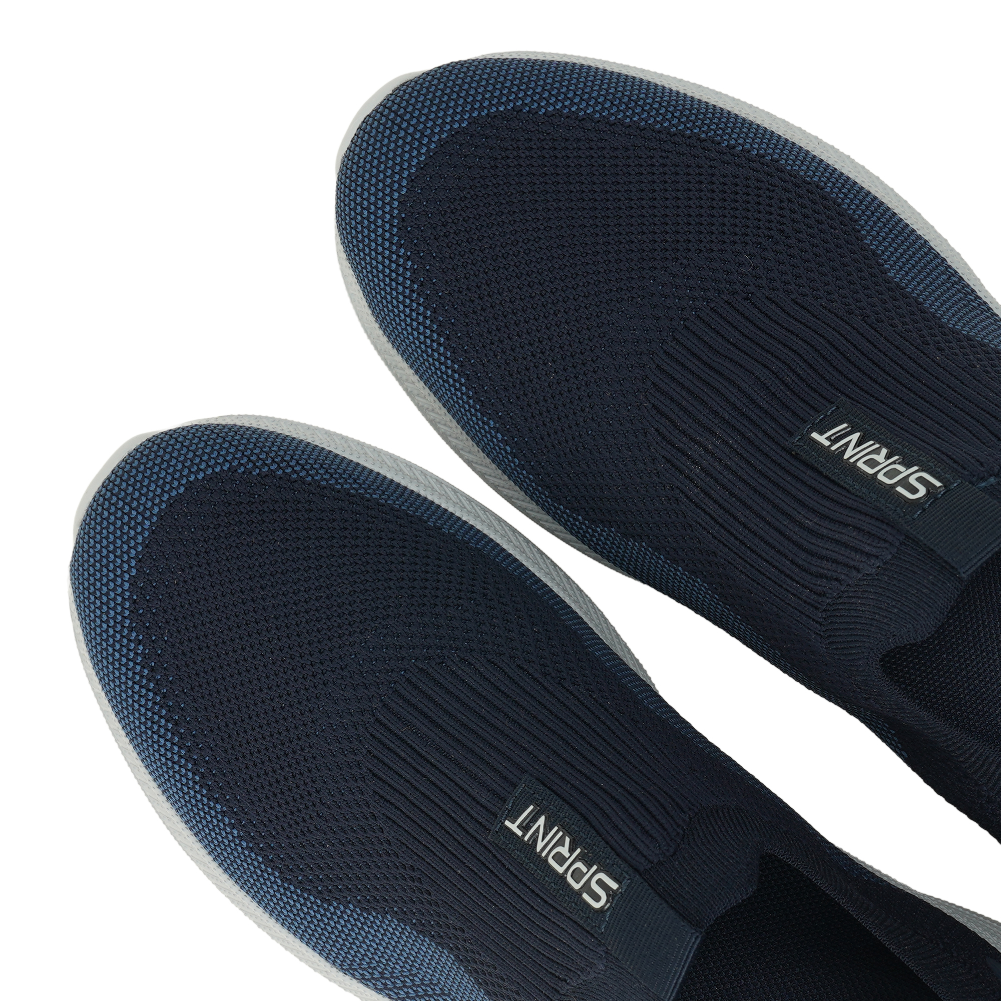 Sprint Men's Canvas in navy blends athletic performance with everyday comfort. The breathable fly-knit upper molds to your foot for a flexible, snug fit, keeping you comfortable during workouts, runs, or casual outings. Its lightweight EVA sole offers responsive cushioning and dependable traction on various surfaces. Designed for active lifestyles, this slip-on sneaker delivers sporty style and effortless wear, making it a versatile choice for men who value both performance and style.