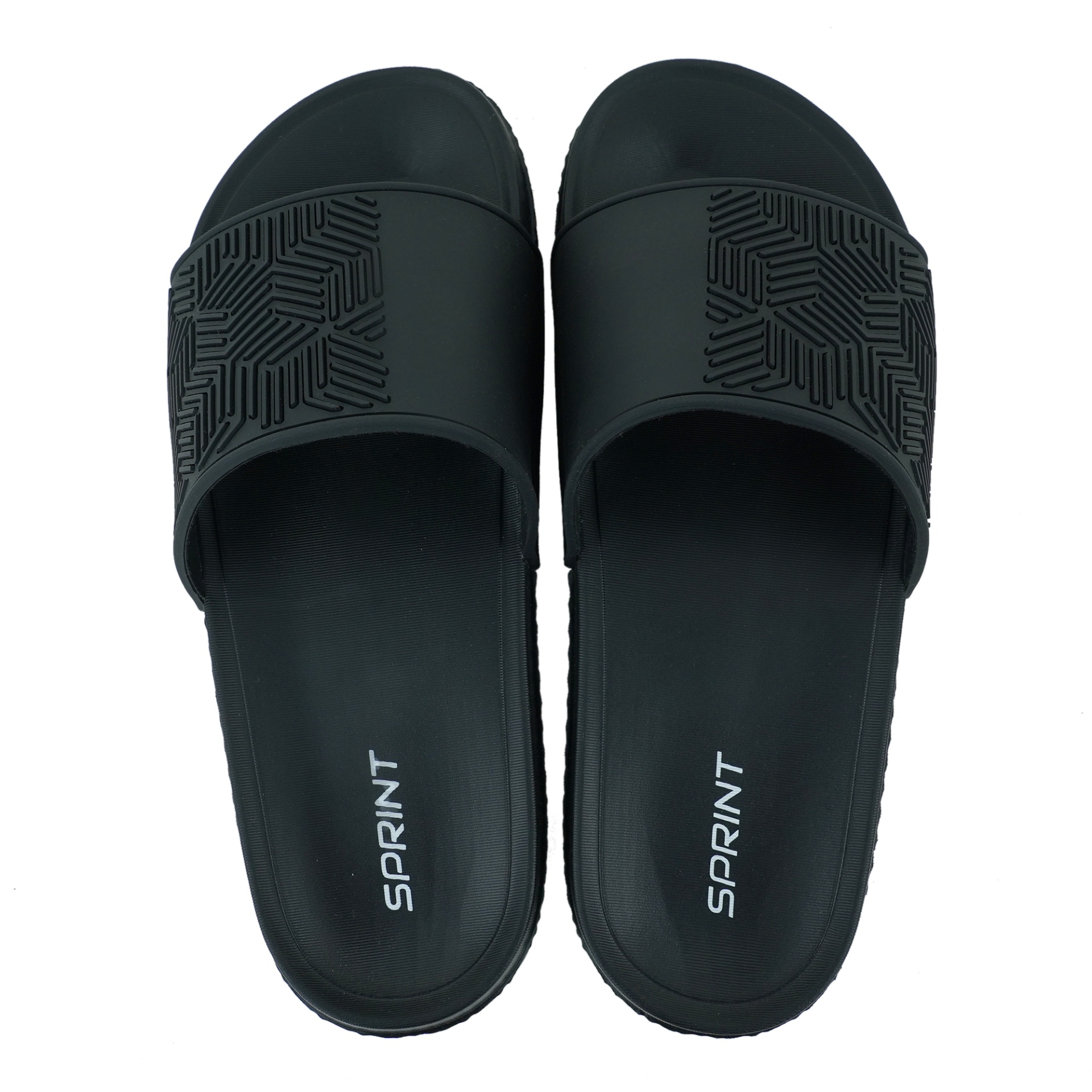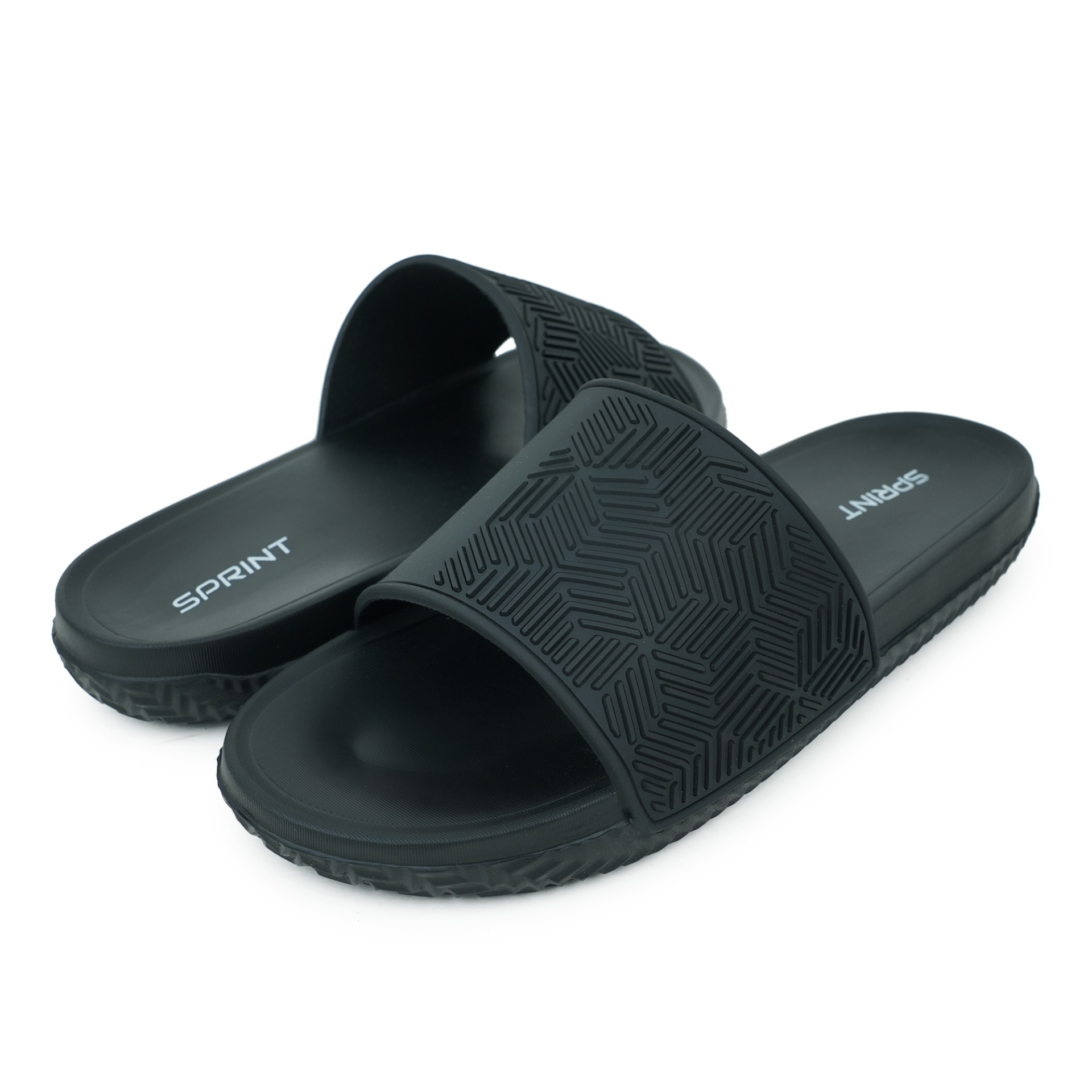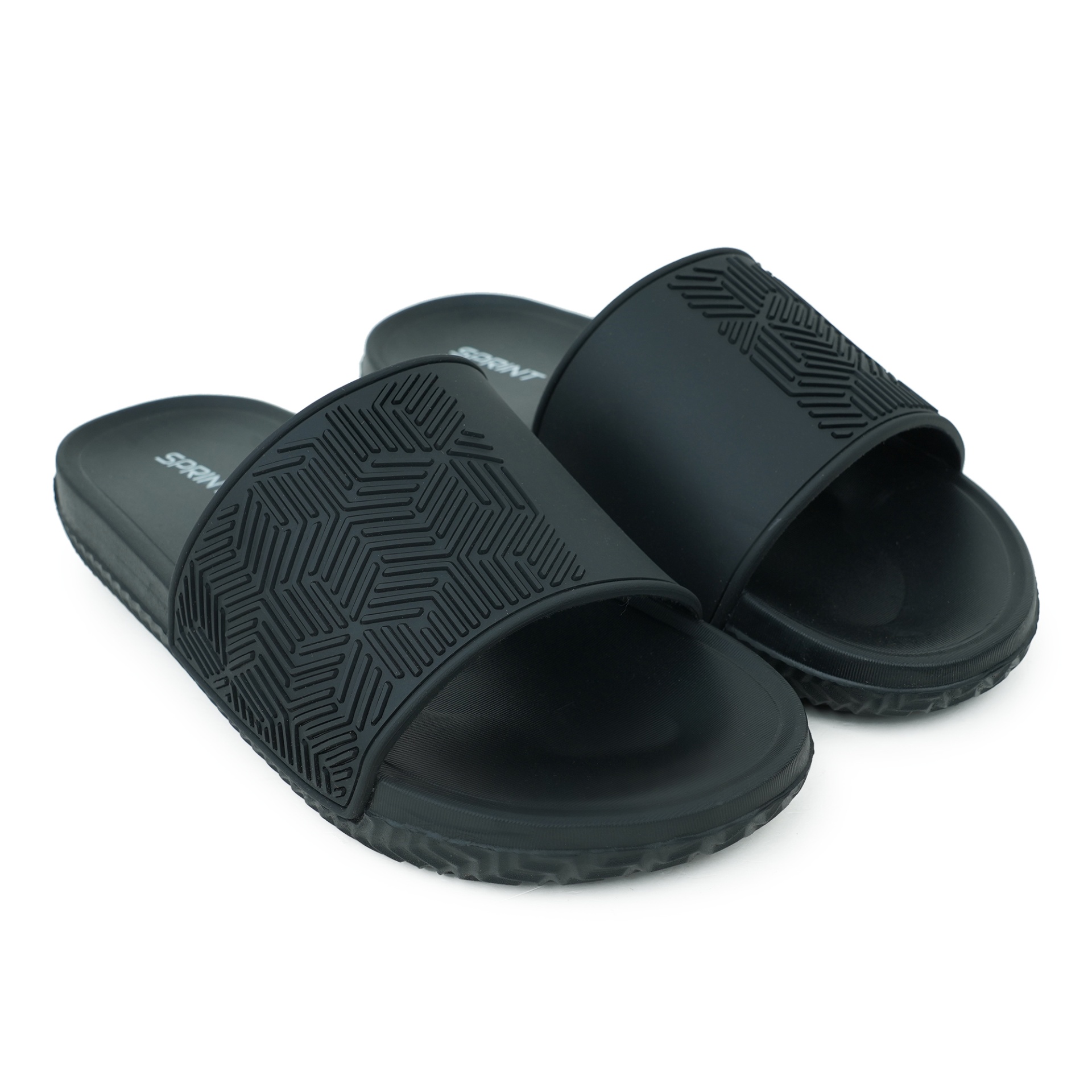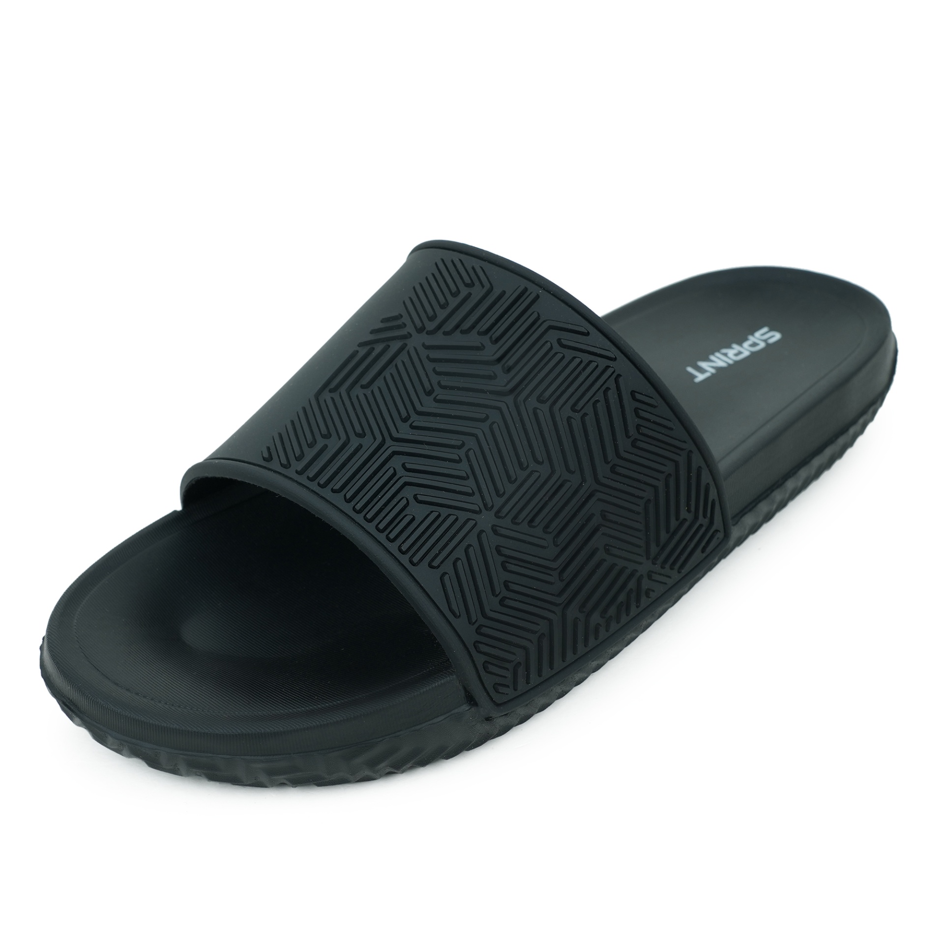 Sprint Men’s Slides are designed for all-day comfort and effortless wear. Featuring a durable PU upper with subtle geometric patterns, they provide both style and structure, while the lightweight EVA sole delivers soft cushioning with every step. The wide strap ensures a secure and comfortable fit, and the slip-on design makes them easy to wear for lounging or casual outings. Sleek and practical, these slides offer a modern look in classic black.