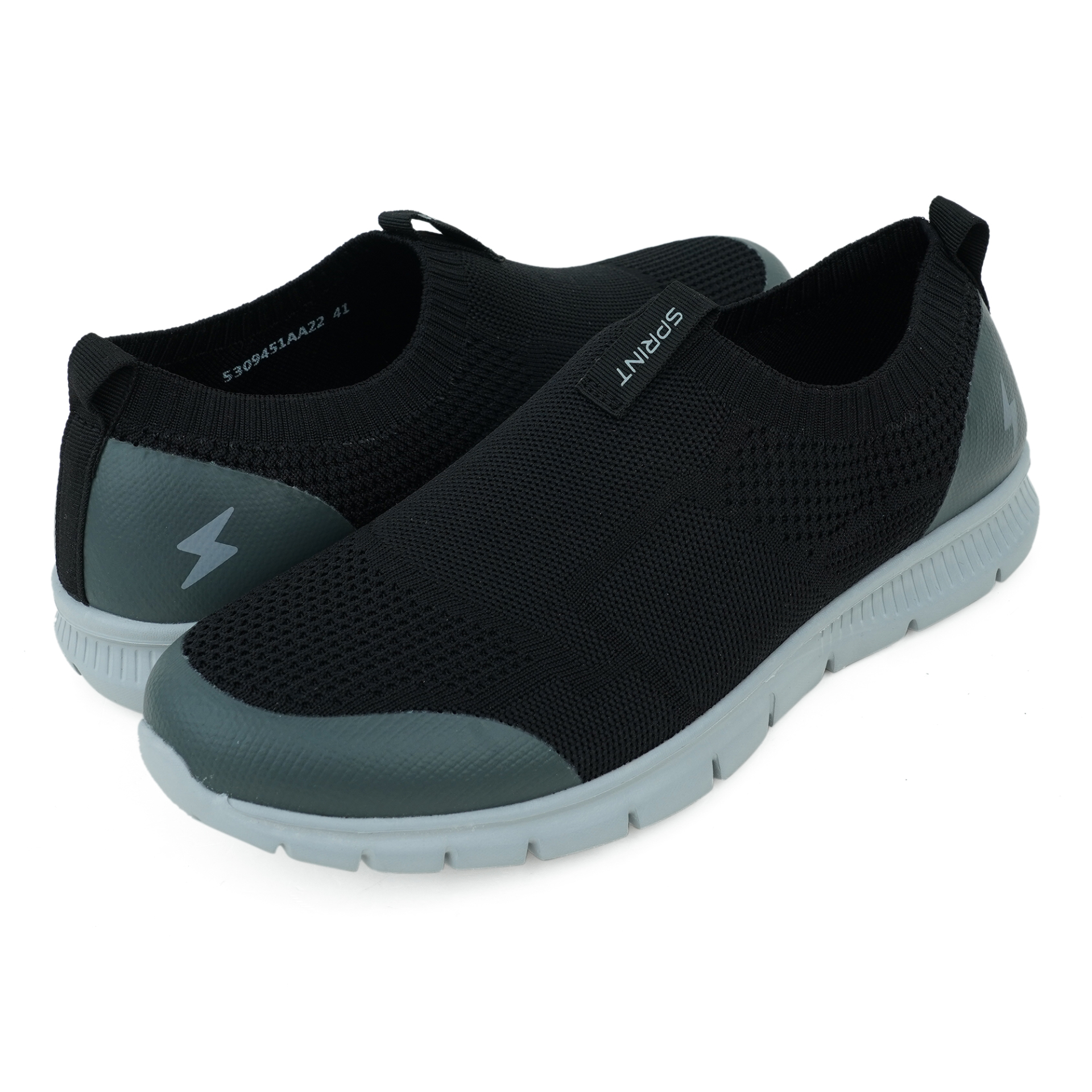 The Sprint Men’s Sports Shoe combines effortless style with everyday comfort. Crafted with a breathable Flyknit upper, it offers flexibility and lightweight support, while the EVA sole provides reliable cushioning and traction. The slip-on, no-lace design ensures easy wear and a secure fit, making it ideal for casual outings, quick errands, or active routines. Designed for practicality and modern sporty appeal, this shoe comes in black with subtle grey accents for a sleek, versatile look.