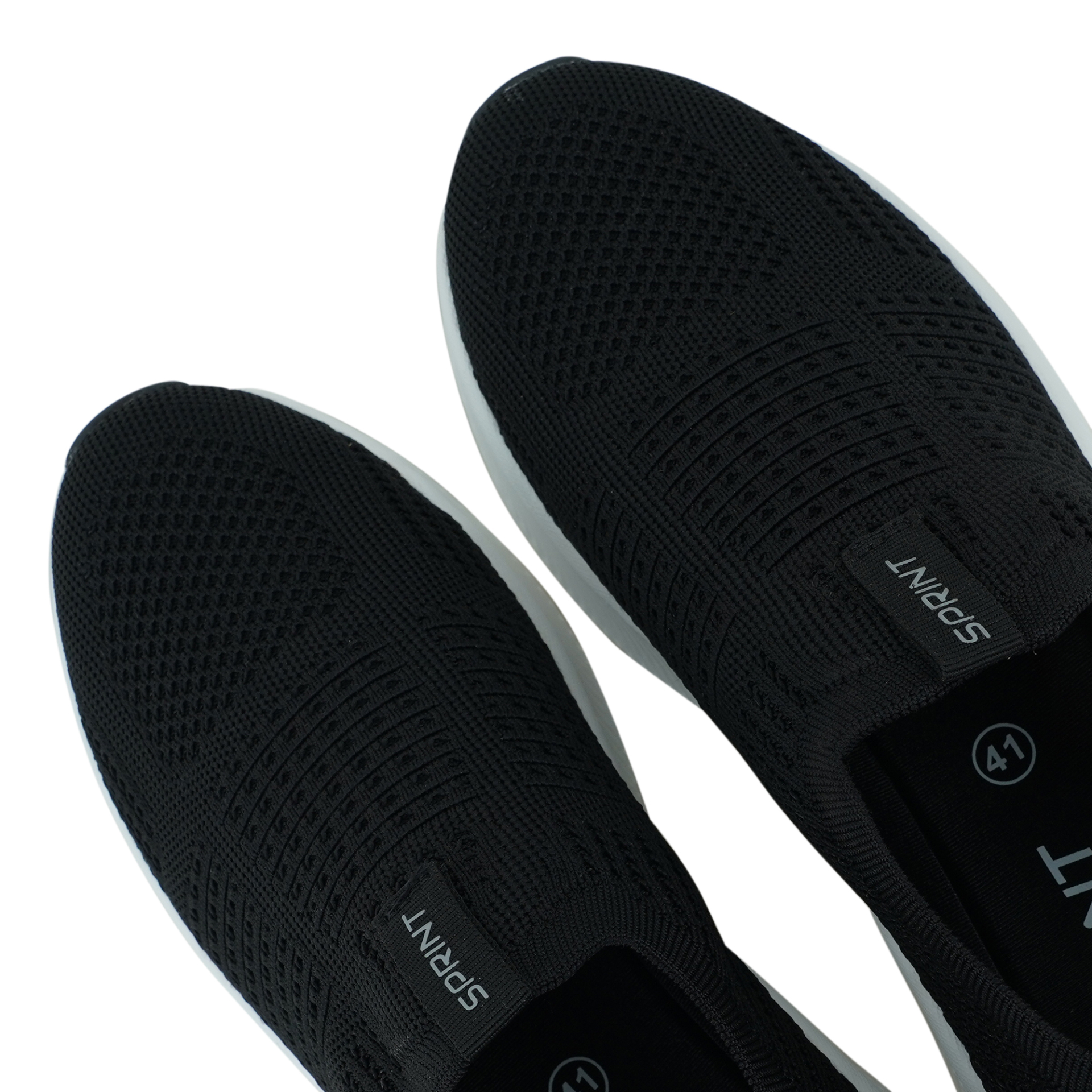 The Sprint Men’s Sports Shoe combines effortless style with everyday comfort. Featuring a breathable Flyknit upper, it provides flexibility and lightweight support, while the EVA sole delivers reliable cushioning and traction. The slip-on, no-lace design ensures easy wear and a secure fit, making it perfect for casual outings, quick errands, or active routines. Designed for practicality and modern sporty appeal, this all-black pair offers a sleek, versatile look for any occasion.