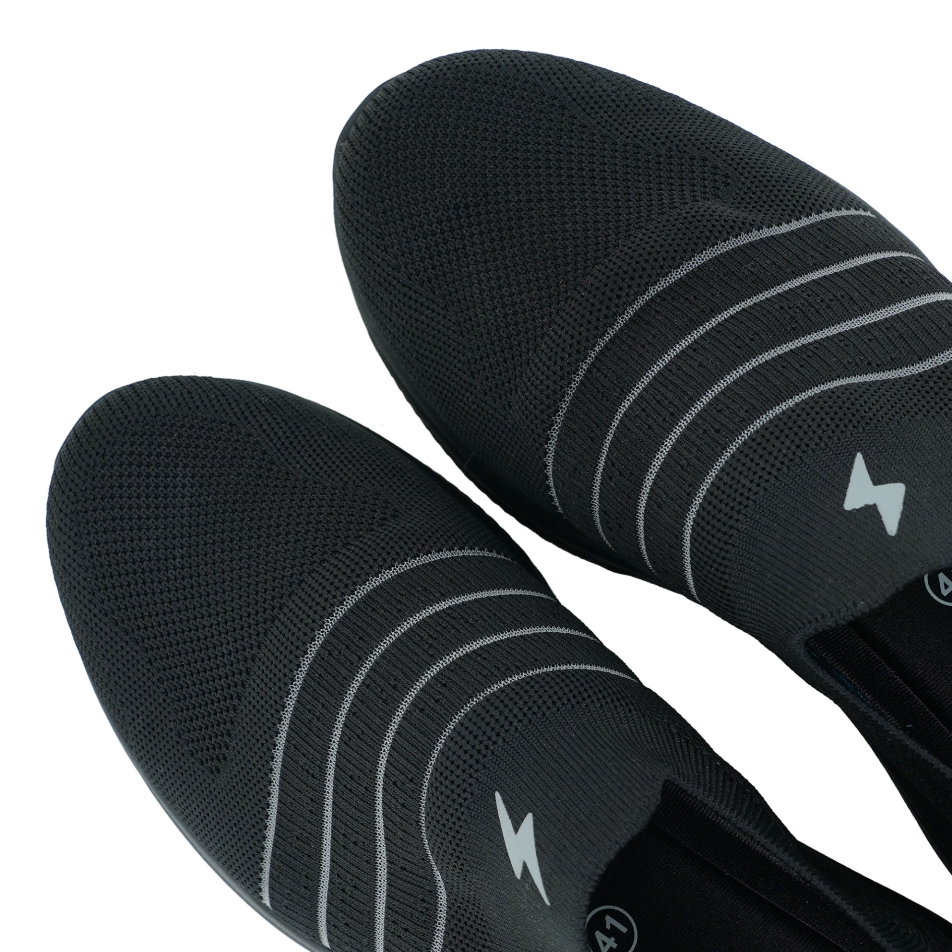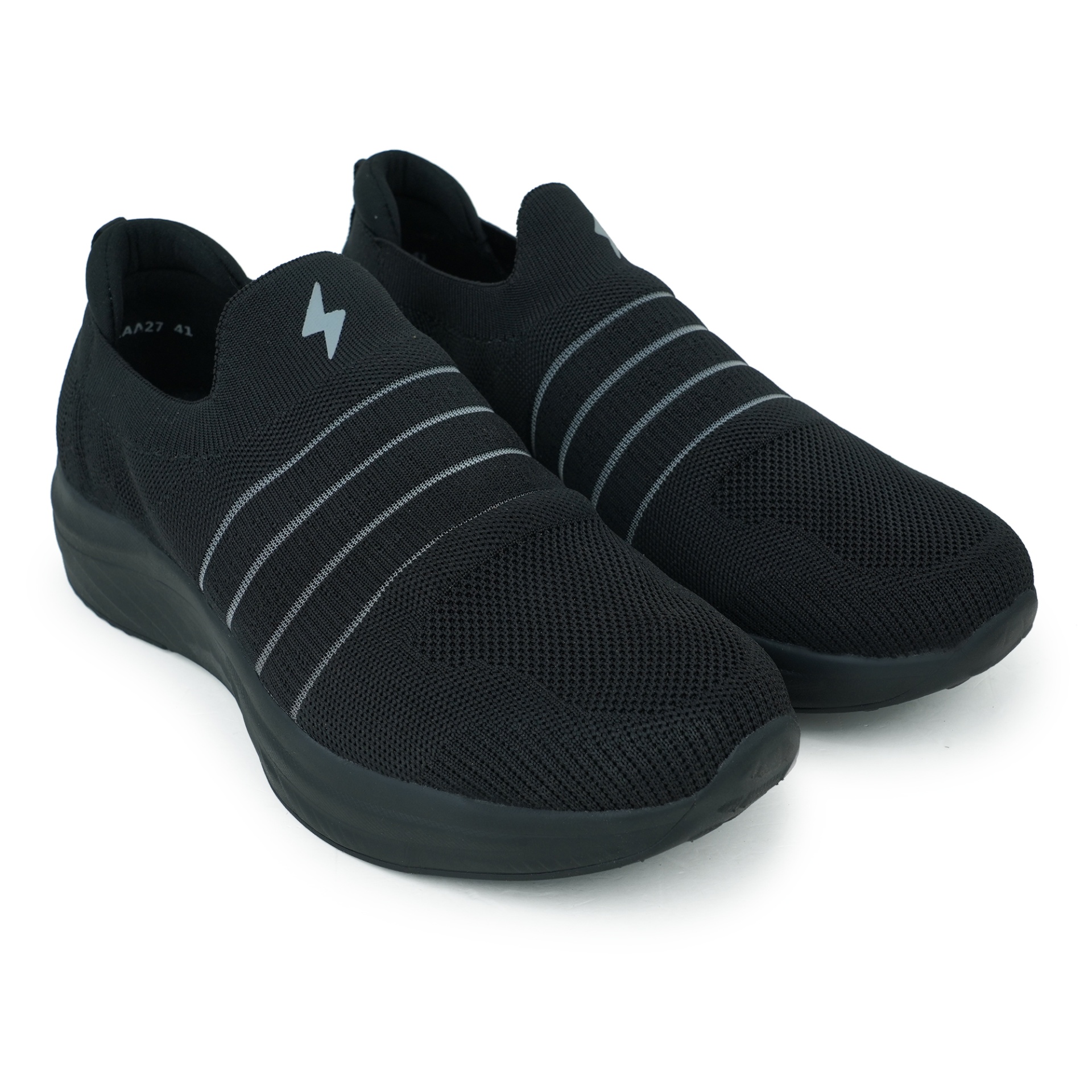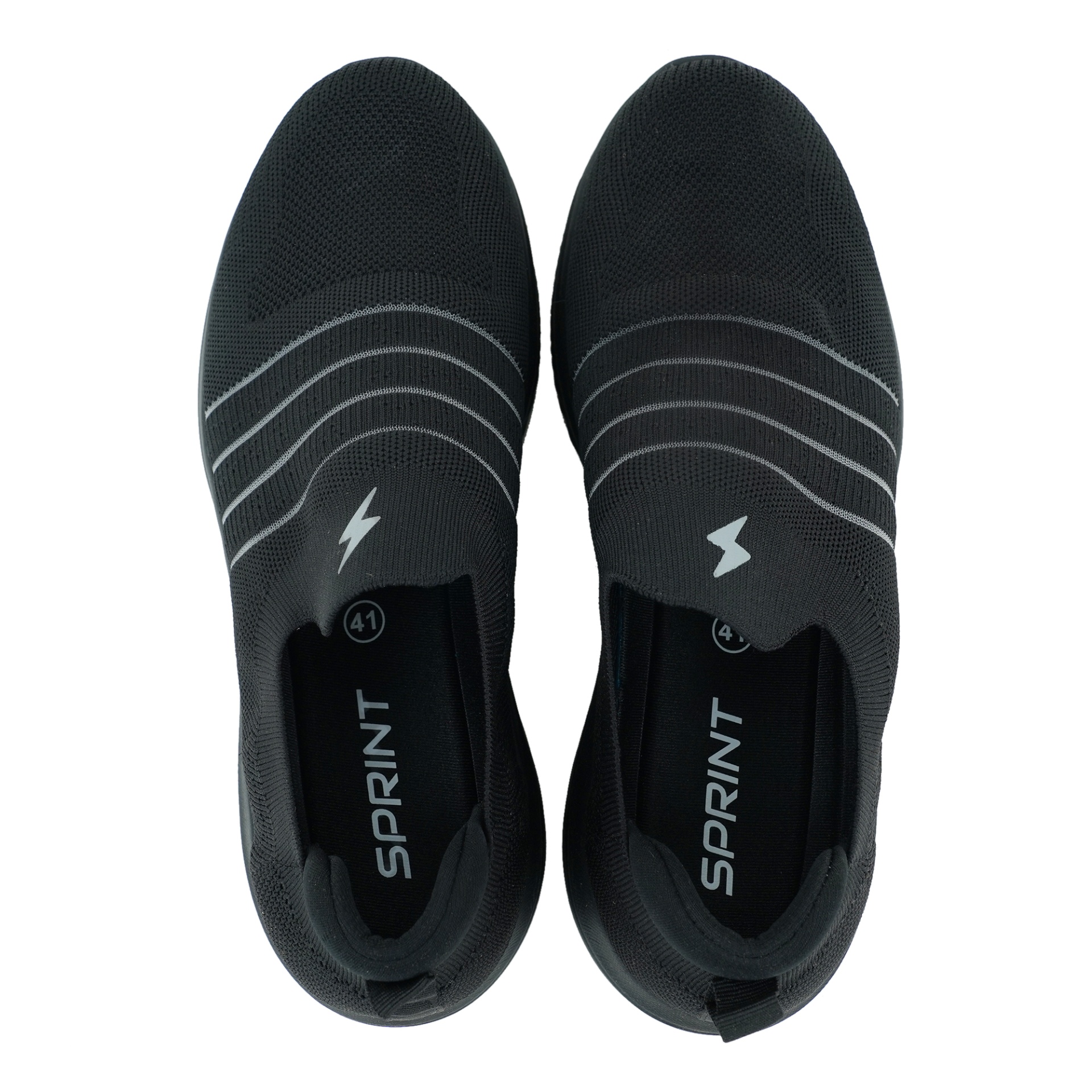 The Sprint Men’s Sports Shoe combines effortless style with all-day comfort. Featuring a breathable Flyknit upper, it offers flexibility and lightweight support, while the EVA sole delivers reliable cushioning and traction. The slip-on, no-lace design ensures easy wear and a secure fit, perfect for casual outings, errands, or active routines. This pair comes in black with subtle grey lines across the upper, adding a modern, sporty touch to the sleek design.