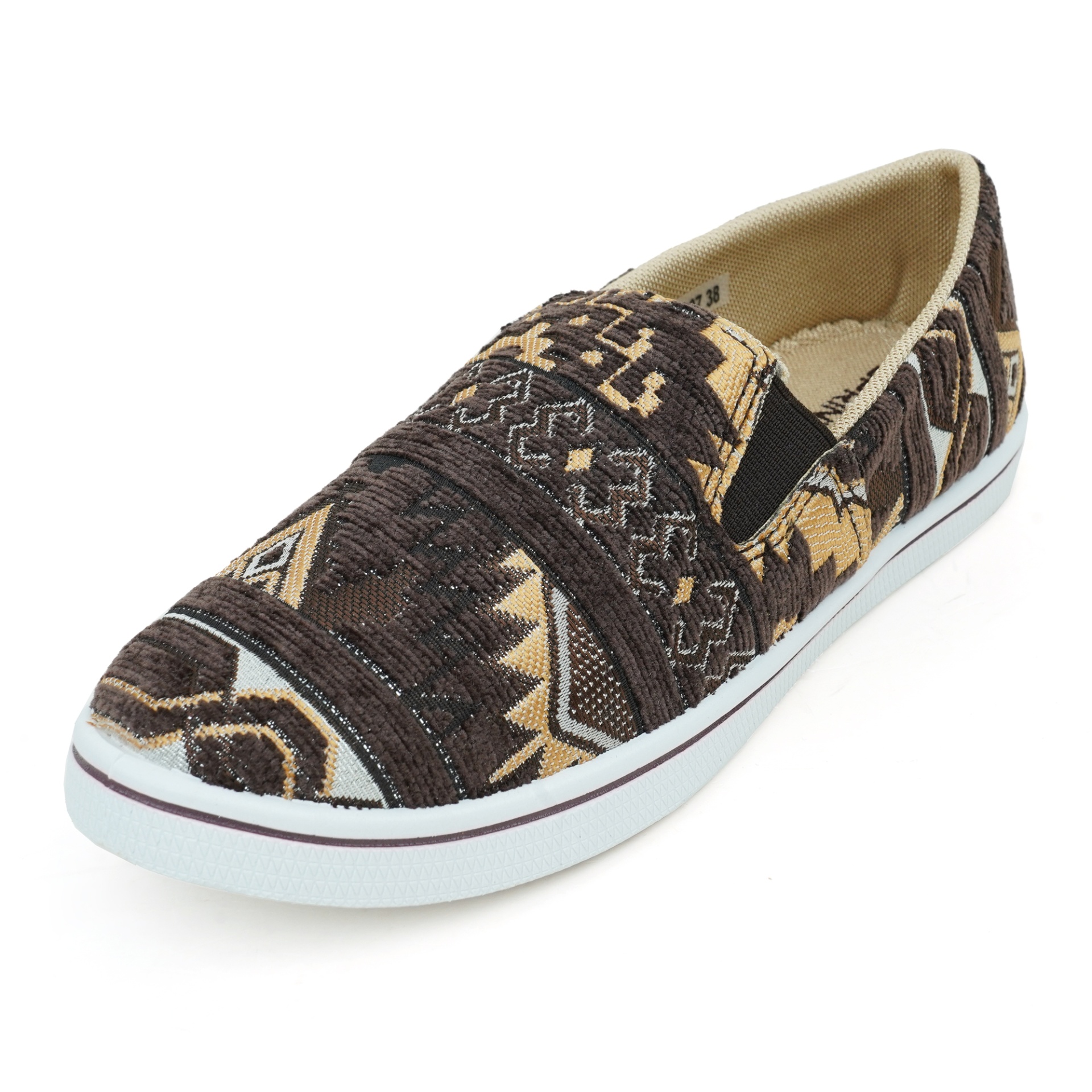 The Sprint Women’s Canvas in dark brown with a boho pattern brings a casual and playful touch to everyday outfits. Crafted with a fabric upper, it feels soft and breathable, while the PVC sole ensures durability and support for daily use. The slip-on style makes it quick and easy to wear, perfect for relaxed outings or running errands. With its fun pattern and practical design, this shoe combines style and comfort effortlessly.