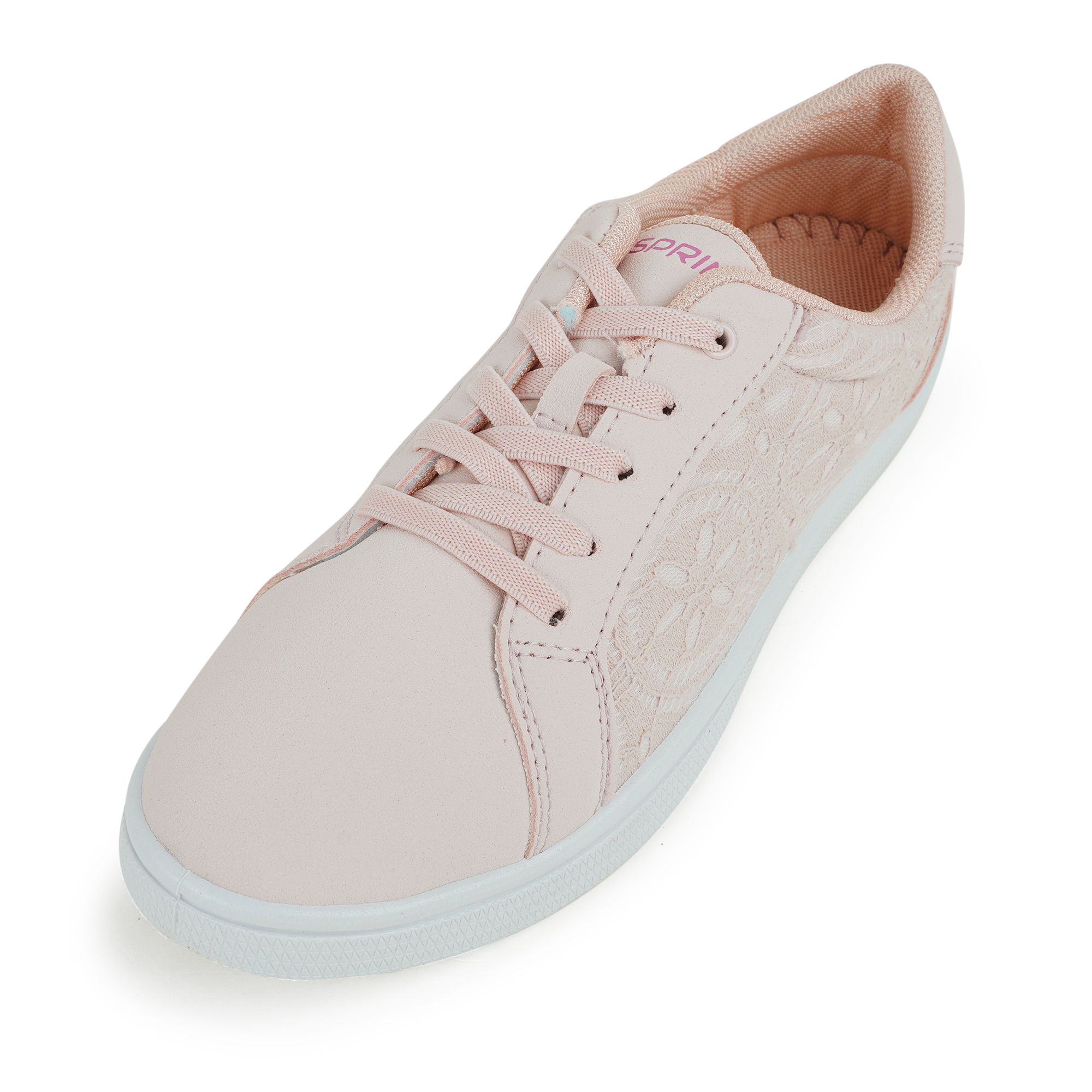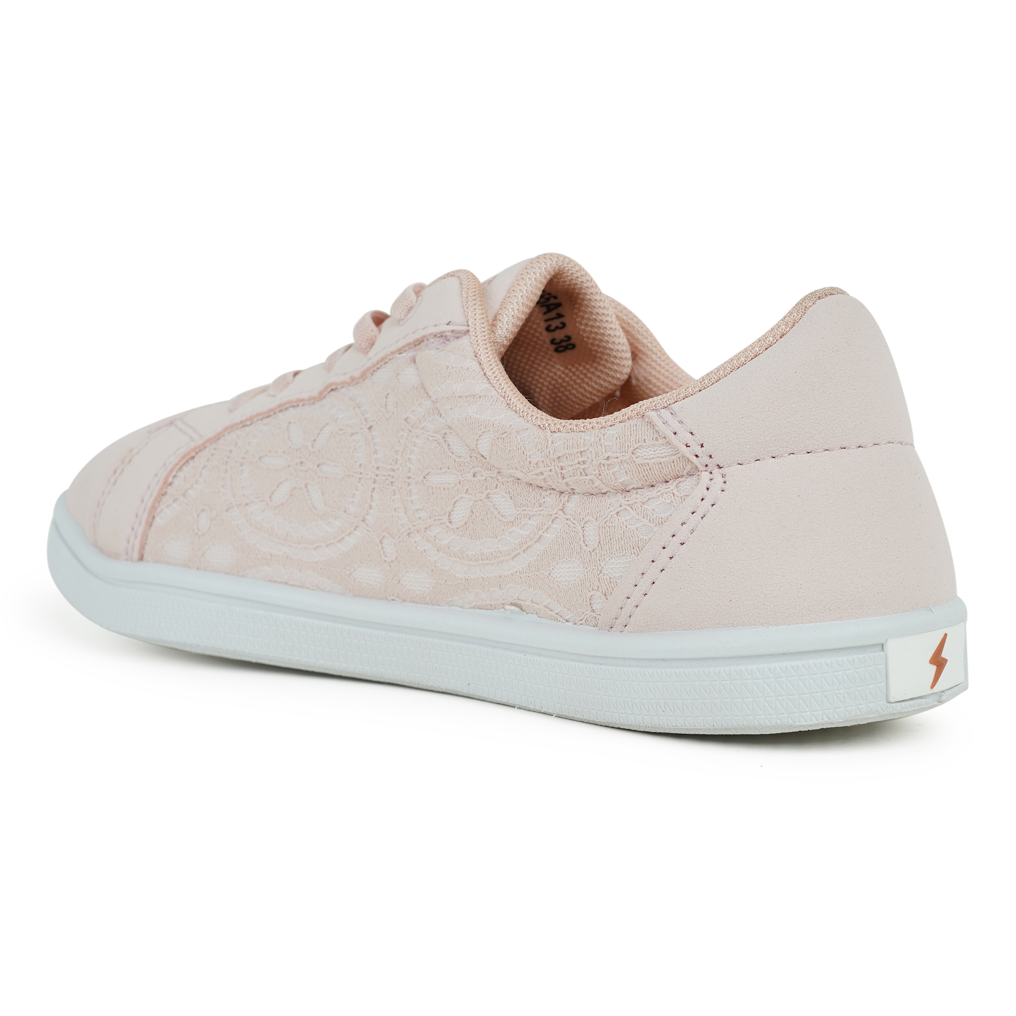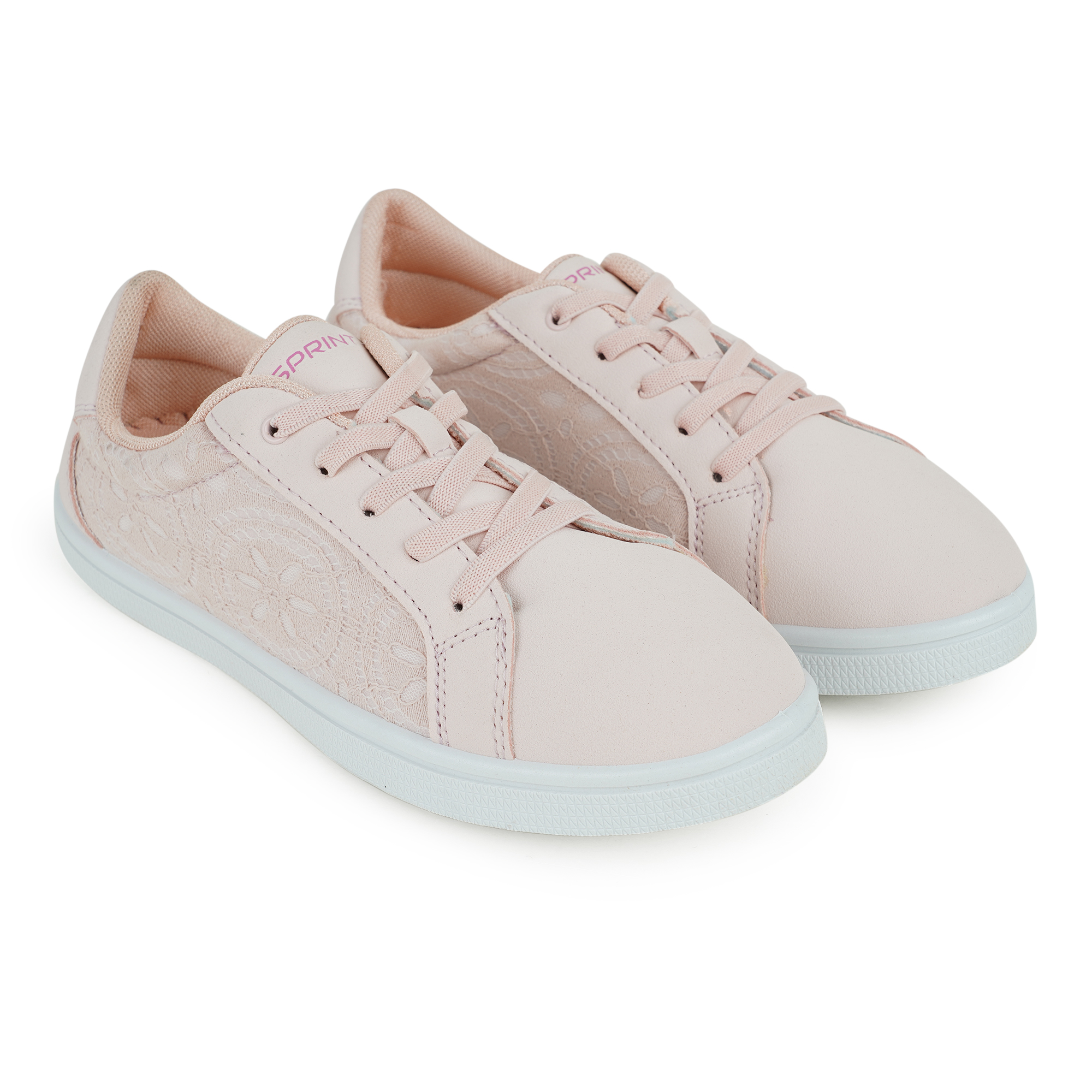Add a touch of soft elegance to your casual look with these Sprint Women's Canvas shoes in a lovely shade of pink. Featuring a classic lace-up design with delicate floral detailing on the sides, these sneakers are as stylish as they are comfortable. The lightweight outsole and cushioned insole make them perfect for all-day wear, whether you're running errands or meeting friends.