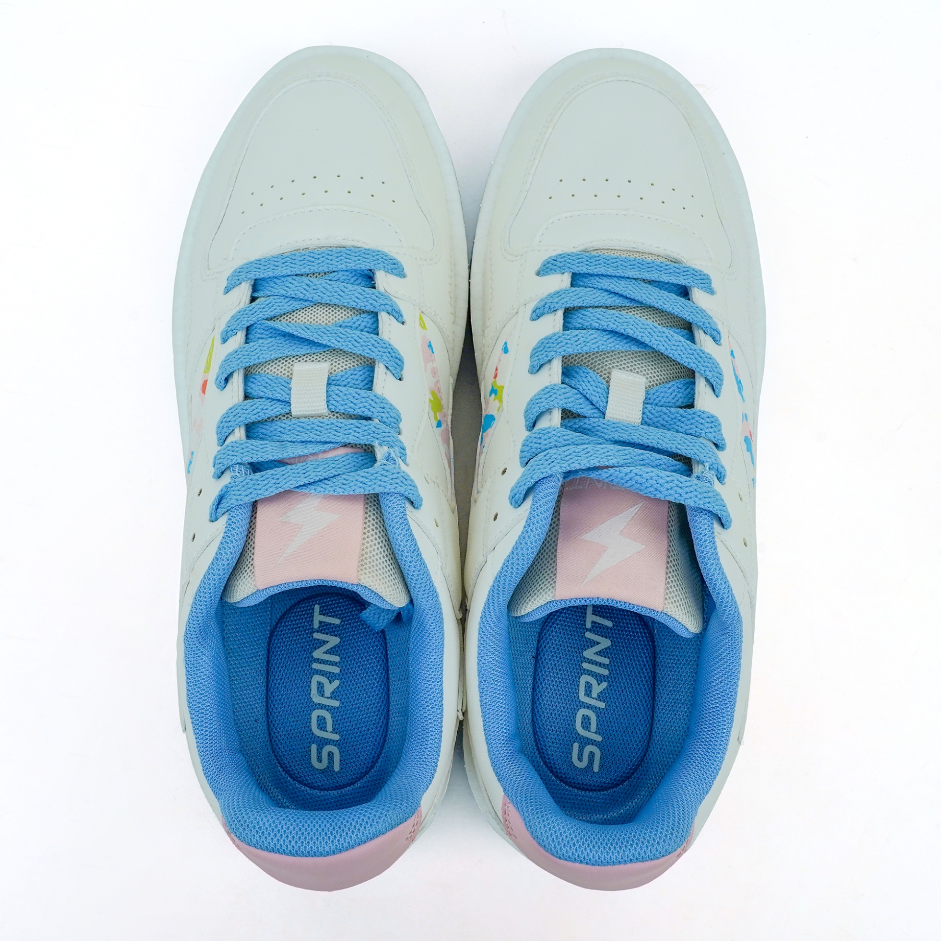 The Sprint Women’s Canvas with sky-blue laces adds a fun and vibrant touch to everyday comfort. Crafted with a PU and mesh upper, it offers breathability and lightweight support, while the playful patterns on the upper make the design stand out up close. The EVA sole ensures cushioning and reliable grip, keeping every step comfortable during errands, walks, or casual outings. Combining style and practicality, this canvas shoe is perfect for women who love a sporty yet cheerful look.