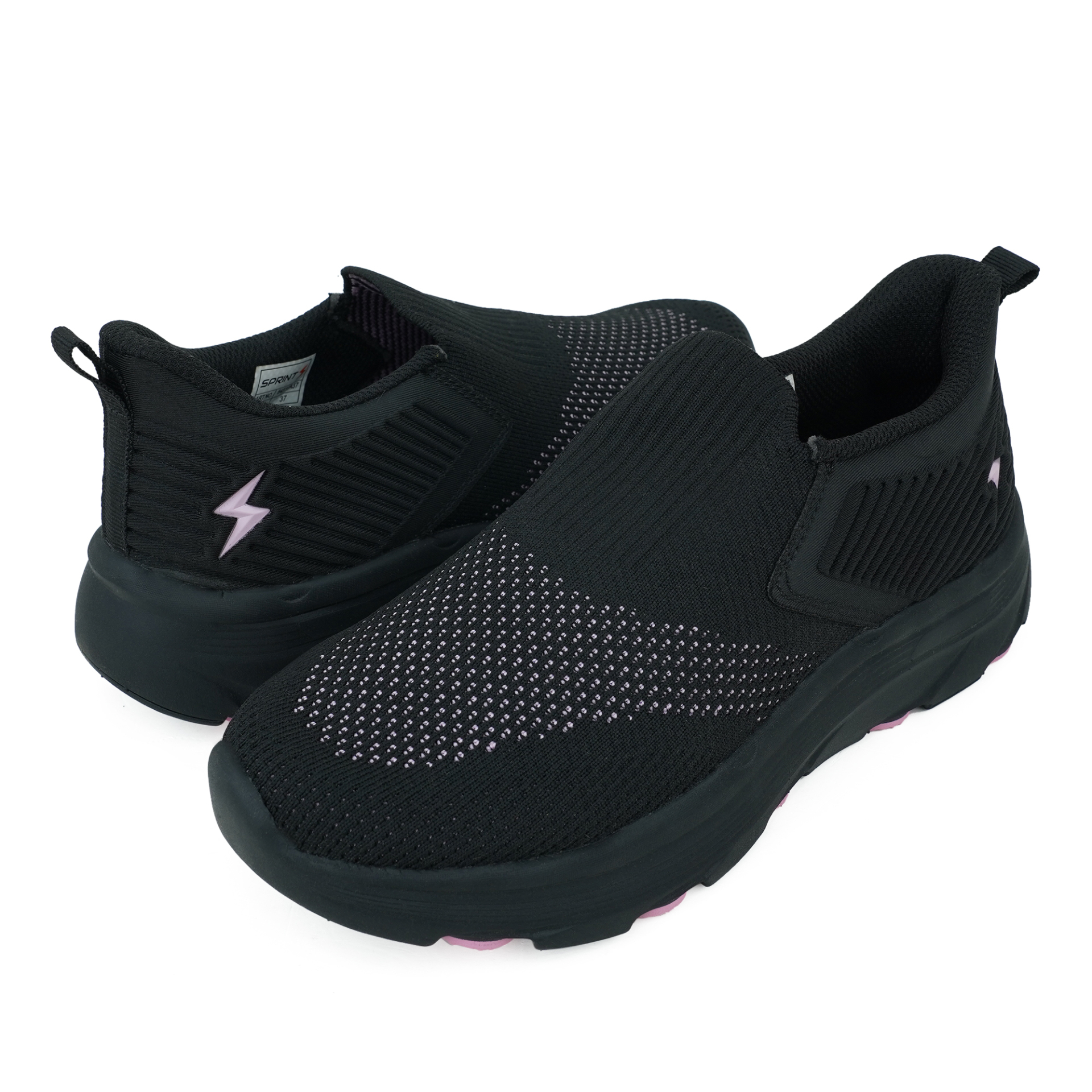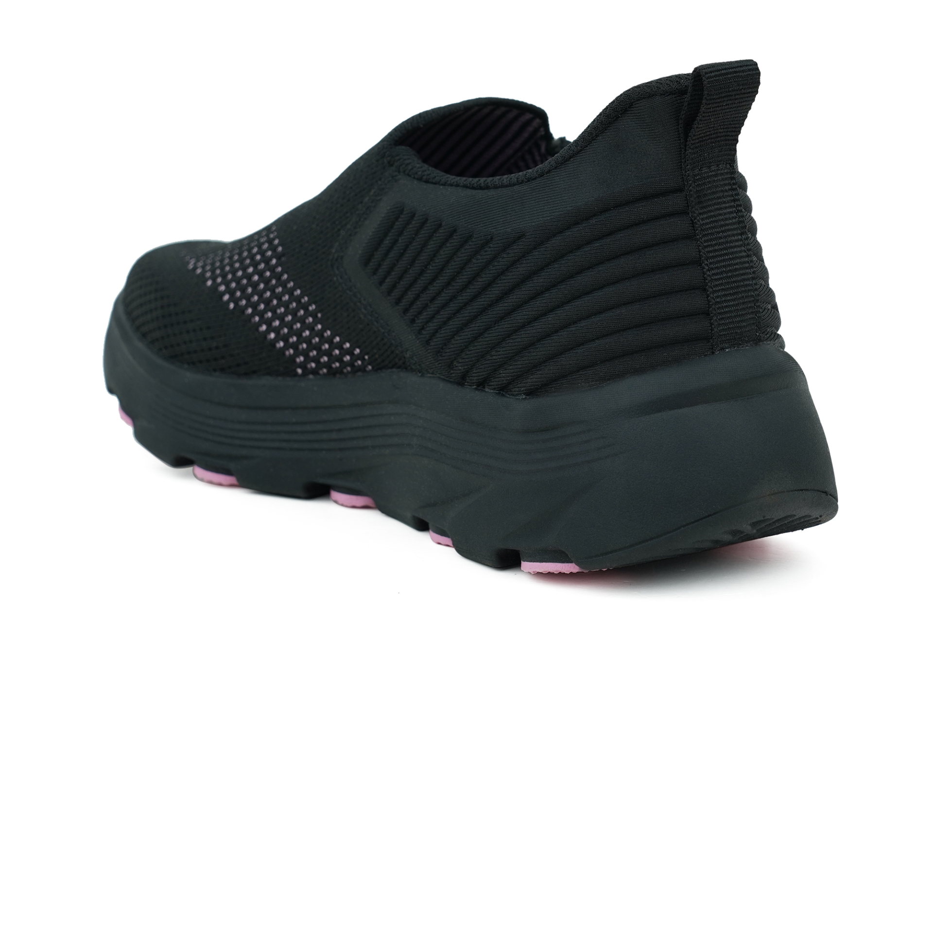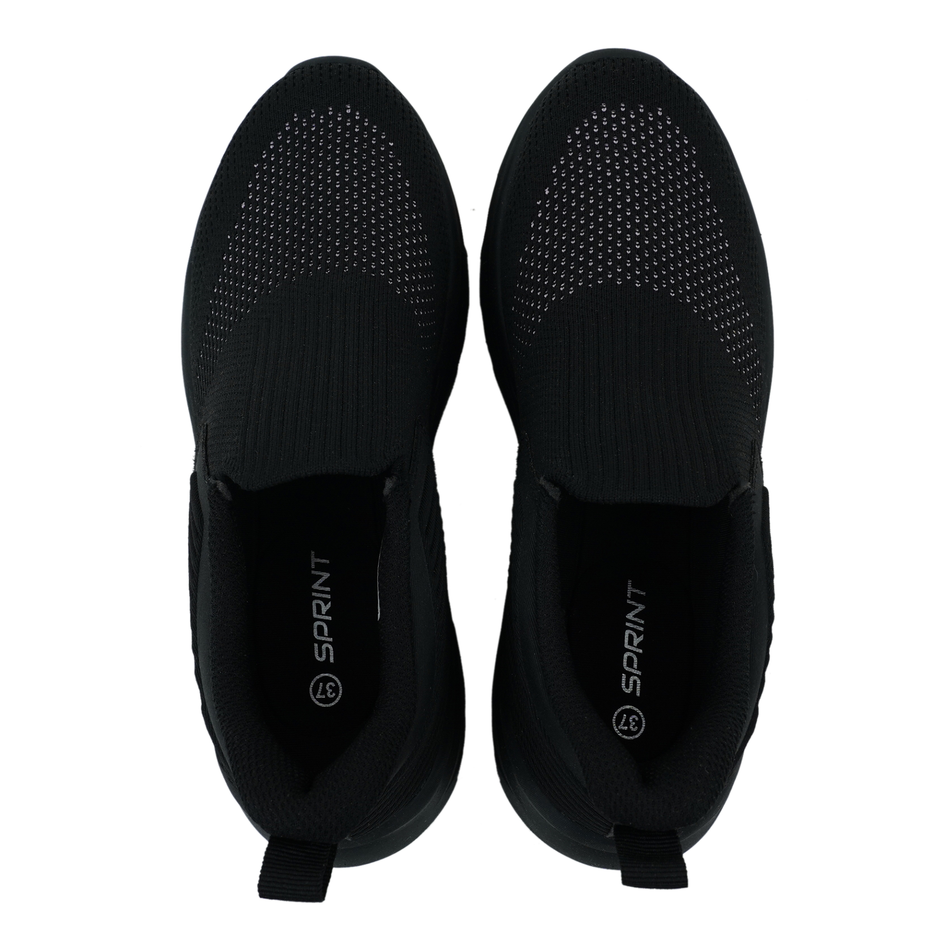 The Sprint Women's Sports Shoe in black with subtle pink details combines casual style with all-day comfort. Crafted with a breathable Flyknit upper, it offers flexibility and lightweight support, while the EVA sole delivers reliable cushioning and traction. The slip-on, no-lace design ensures easy wear, making it perfect for workouts, errands, or relaxed outings. Practical, comfortable, and versatile, this shoe keeps up with an active lifestyle while maintaining a sleek, modern look.