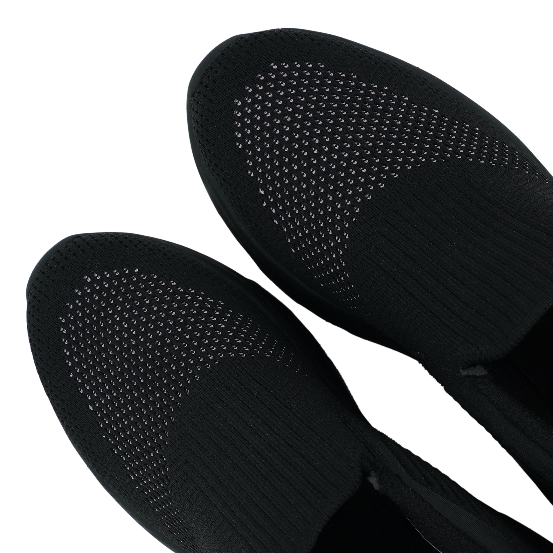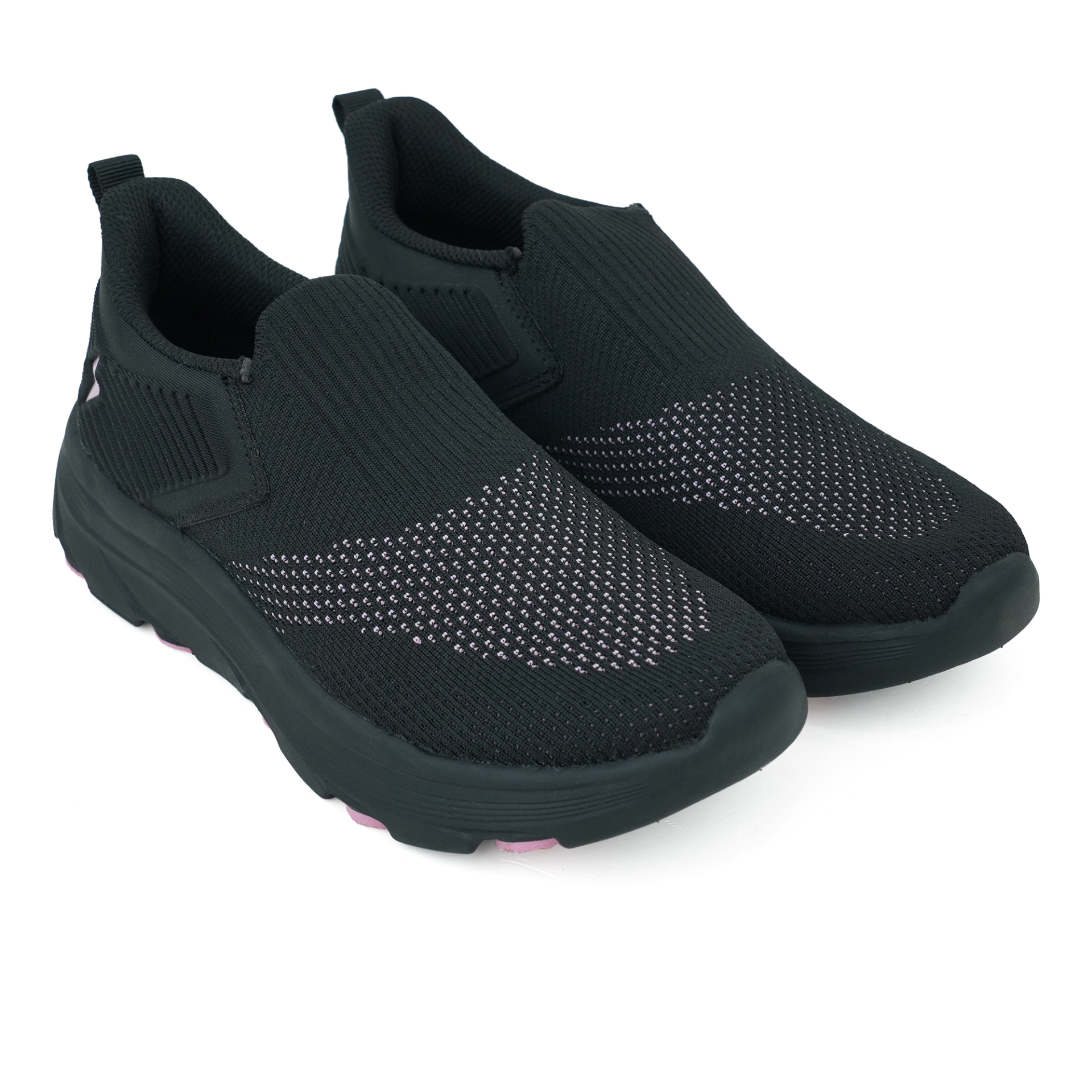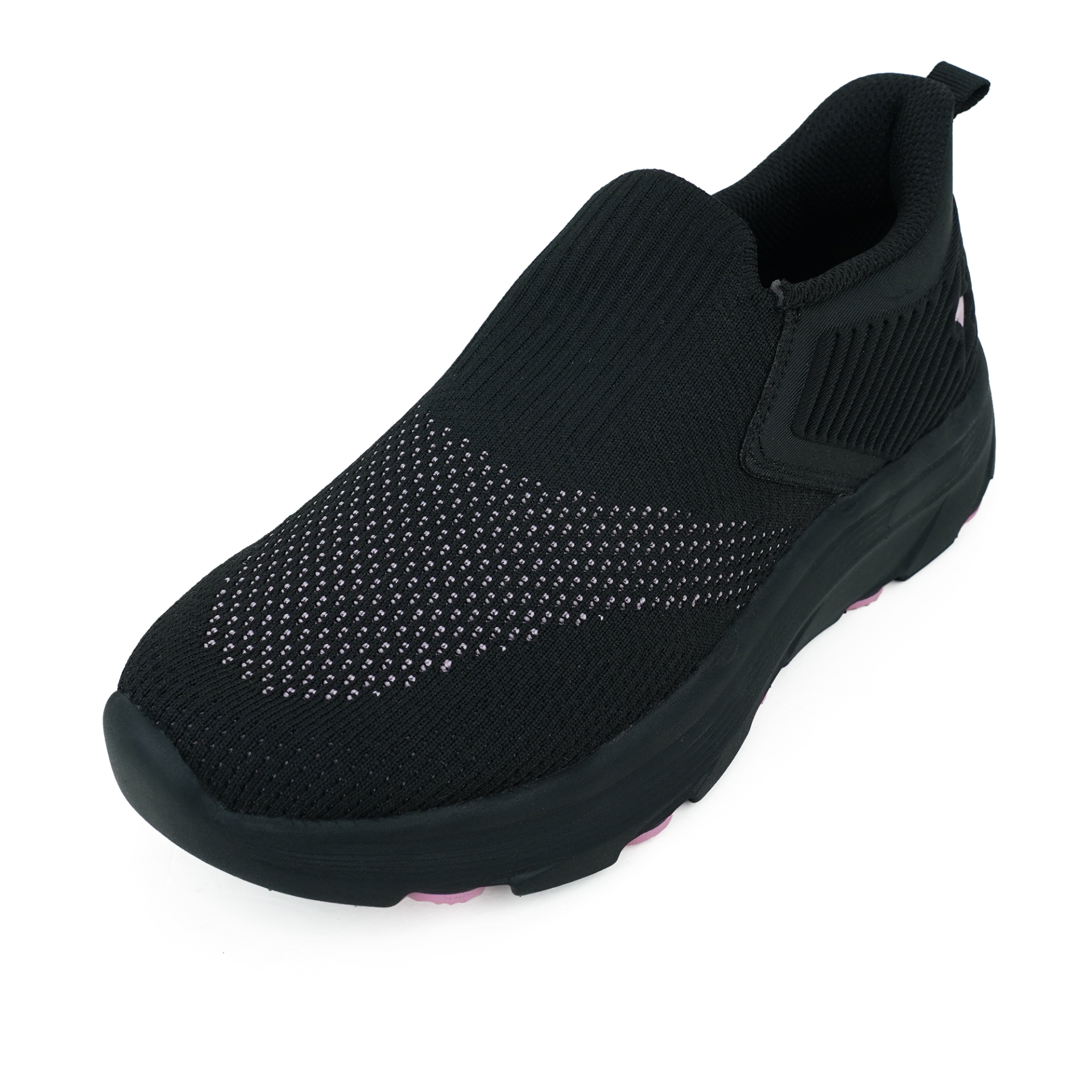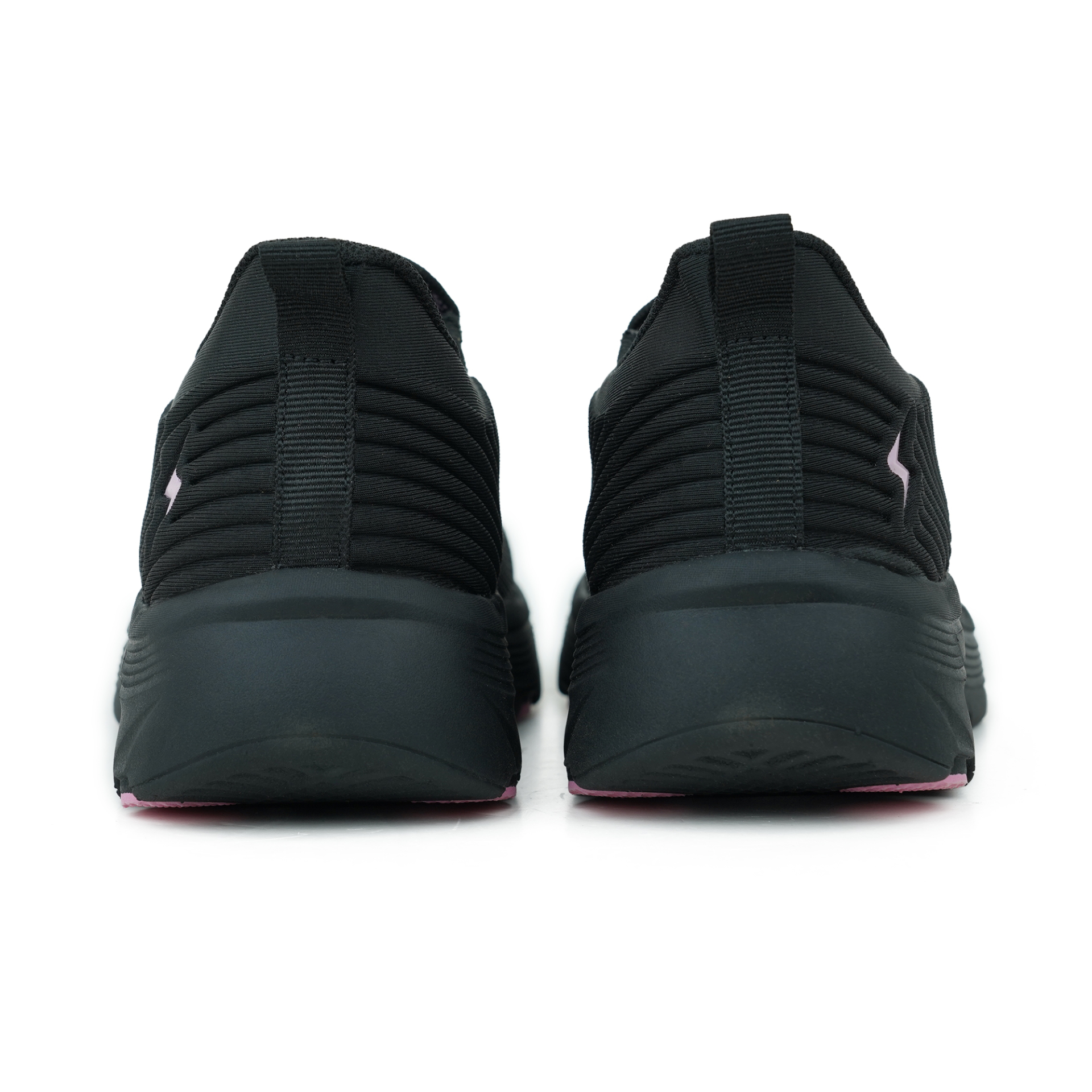 The Sprint Women's Sports Shoe in black with subtle pink details combines casual style with all-day comfort. Crafted with a breathable Flyknit upper, it offers flexibility and lightweight support, while the EVA sole delivers reliable cushioning and traction. The slip-on, no-lace design ensures easy wear, making it perfect for workouts, errands, or relaxed outings. Practical, comfortable, and versatile, this shoe keeps up with an active lifestyle while maintaining a sleek, modern look.