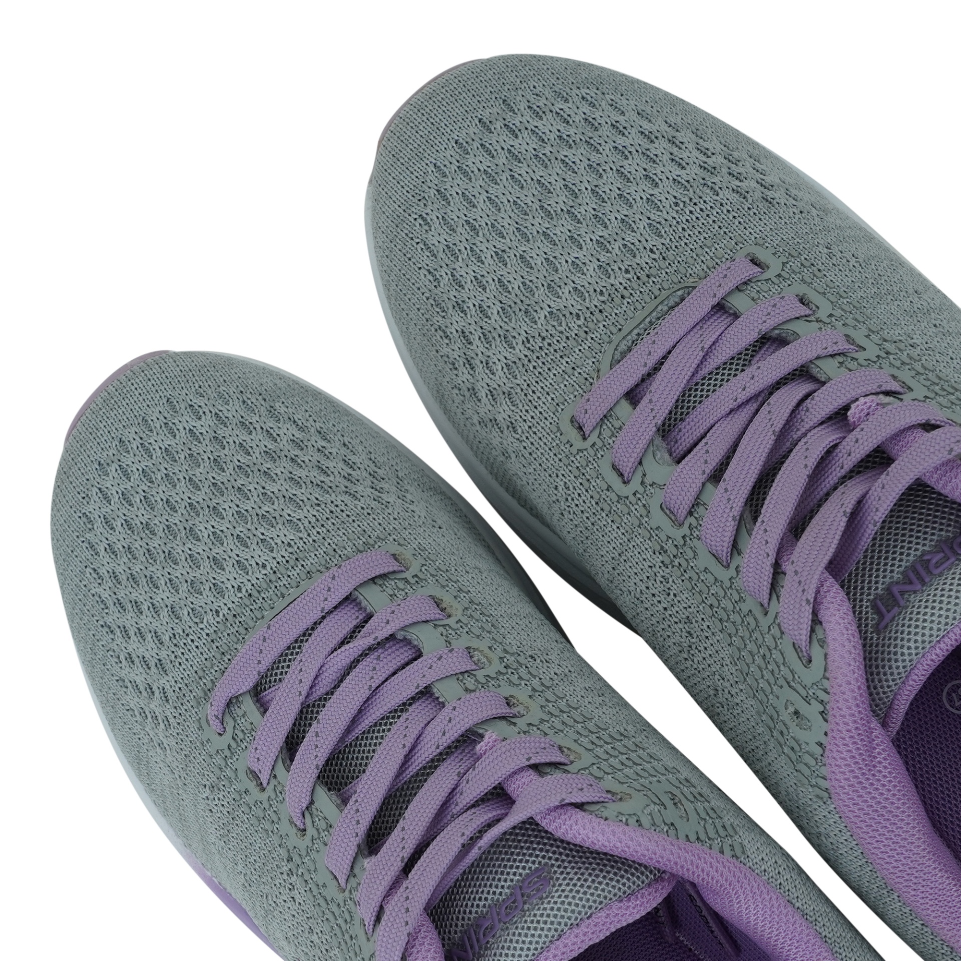The Sprint Women’s Sports Shoe combines comfort and performance for an active lifestyle. Crafted with a breathable mesh upper, it provides flexibility and ventilation, while the EVA sole ensures lightweight cushioning and reliable support. The lace-up design allows a secure and adjustable fit, perfect for workouts, errands, or casual wear. This pair comes in grey with a soft lavender lining, adding a subtle, stylish touch to your sporty look.