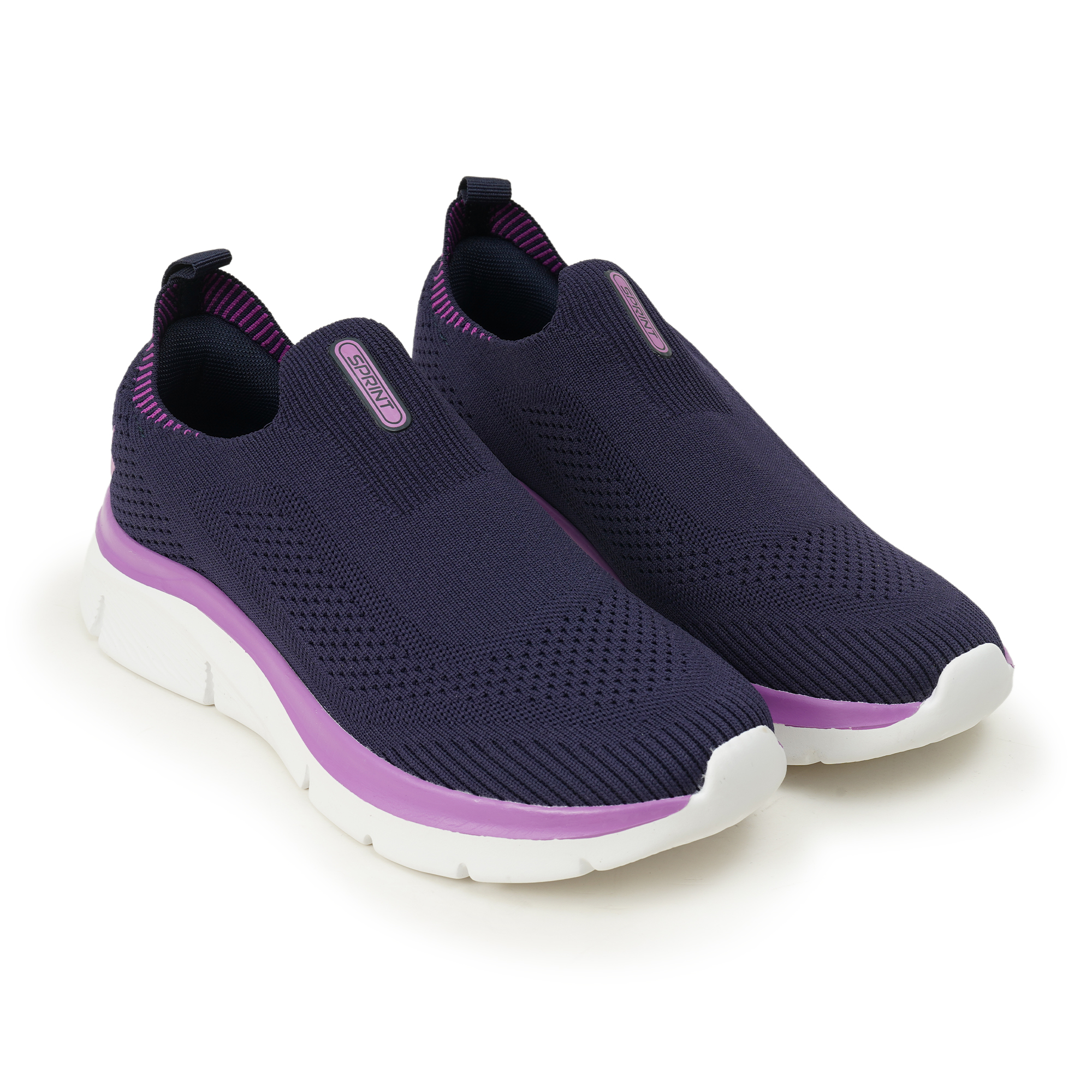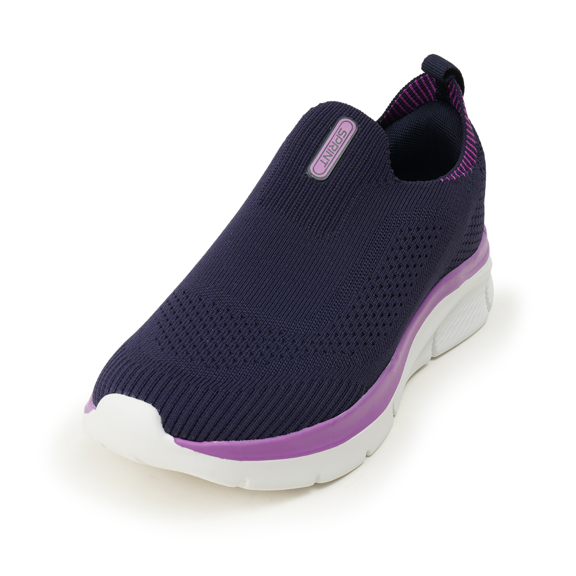 Picture the comfort of your yoga sessions combined with the bounce of the Sprint Women's Sports Shoe. That fusion lives in Sprint’s sock-fit runner. Knit in one seamless tube, the navy upper flexes in four directions so your foot can swell, bend and breathe naturally. A blush-lilac collar and lightning-bolt heel tab provide the colour hit your athleisure wardrobe craves, while a marshmallow-soft EVA midsole deletes pavement obstacles.