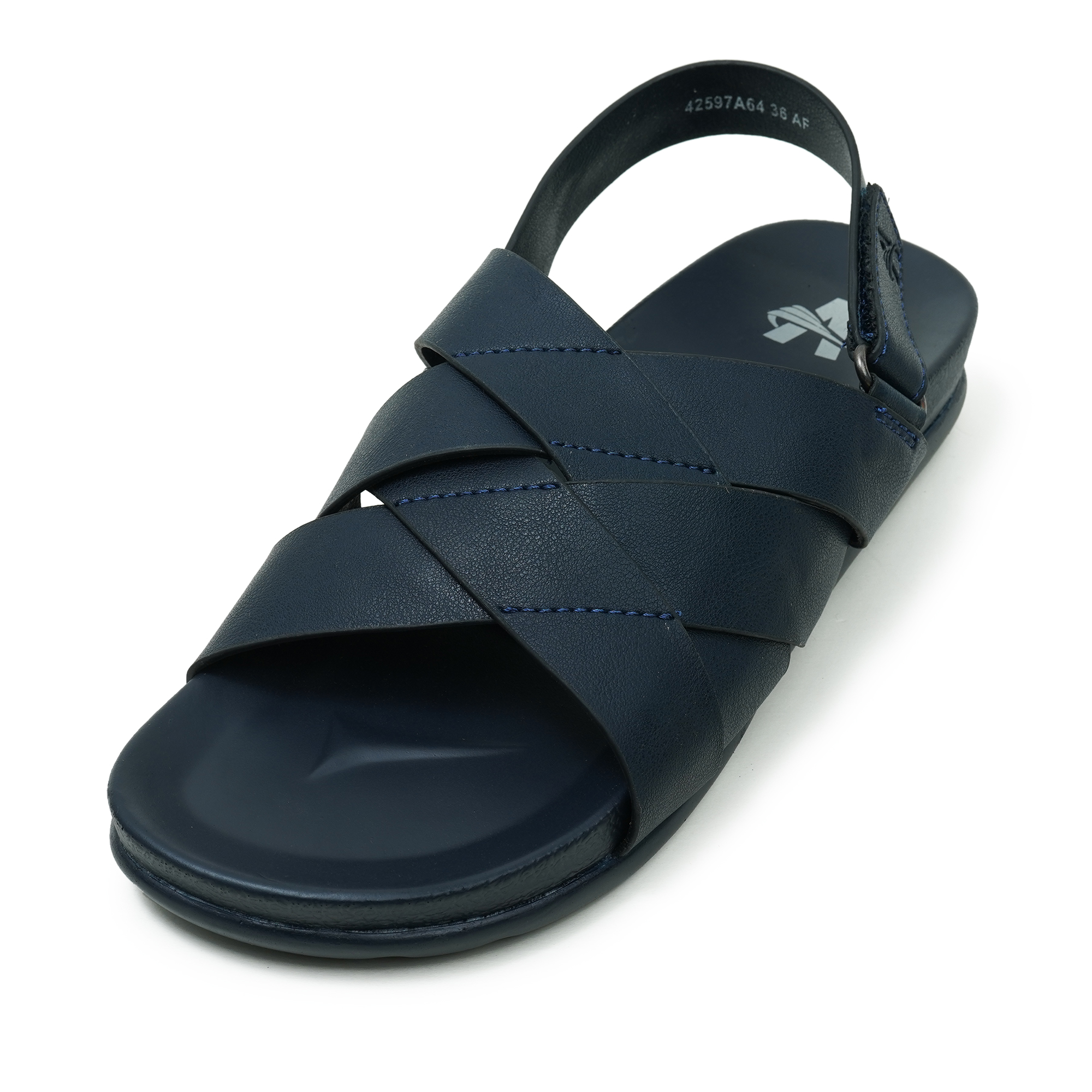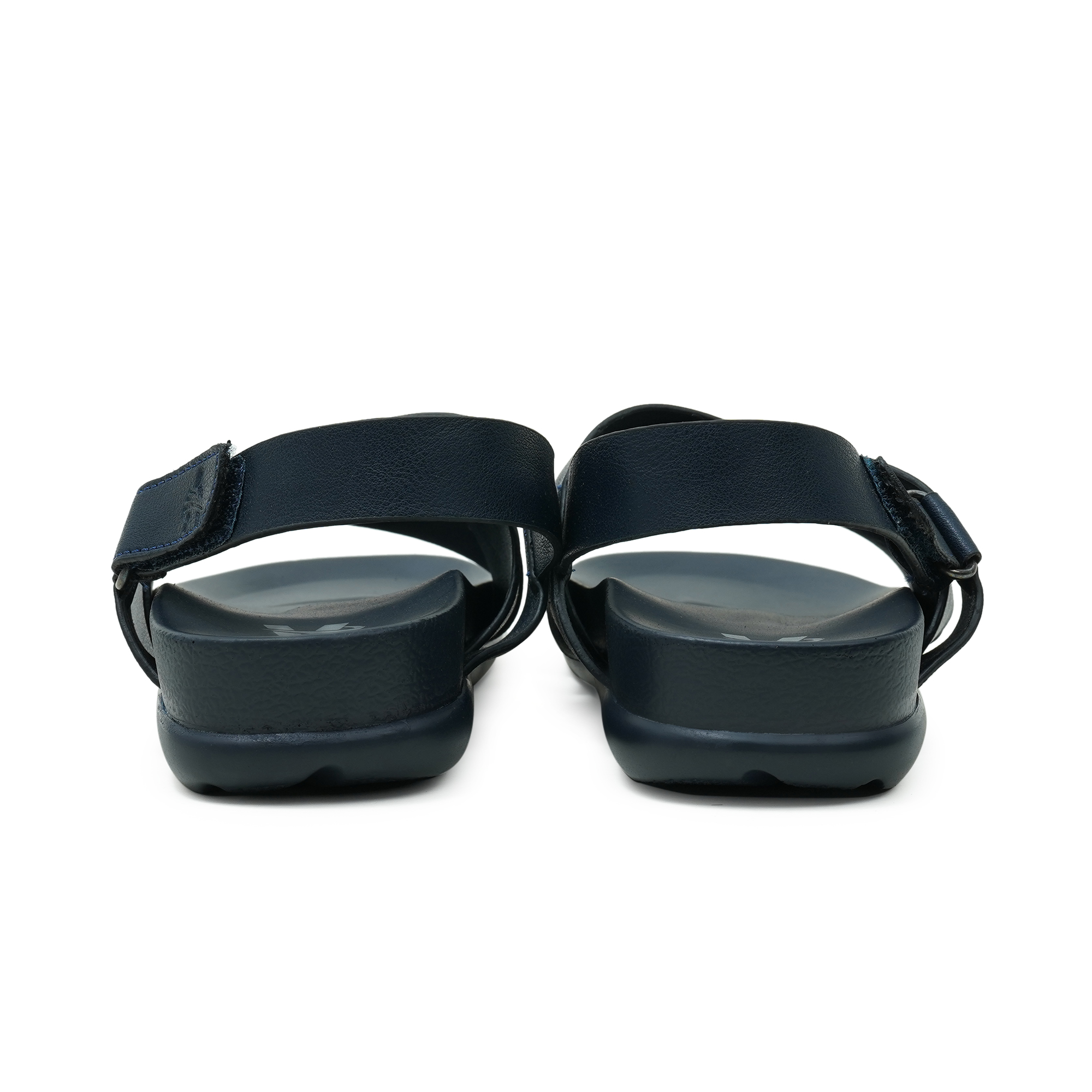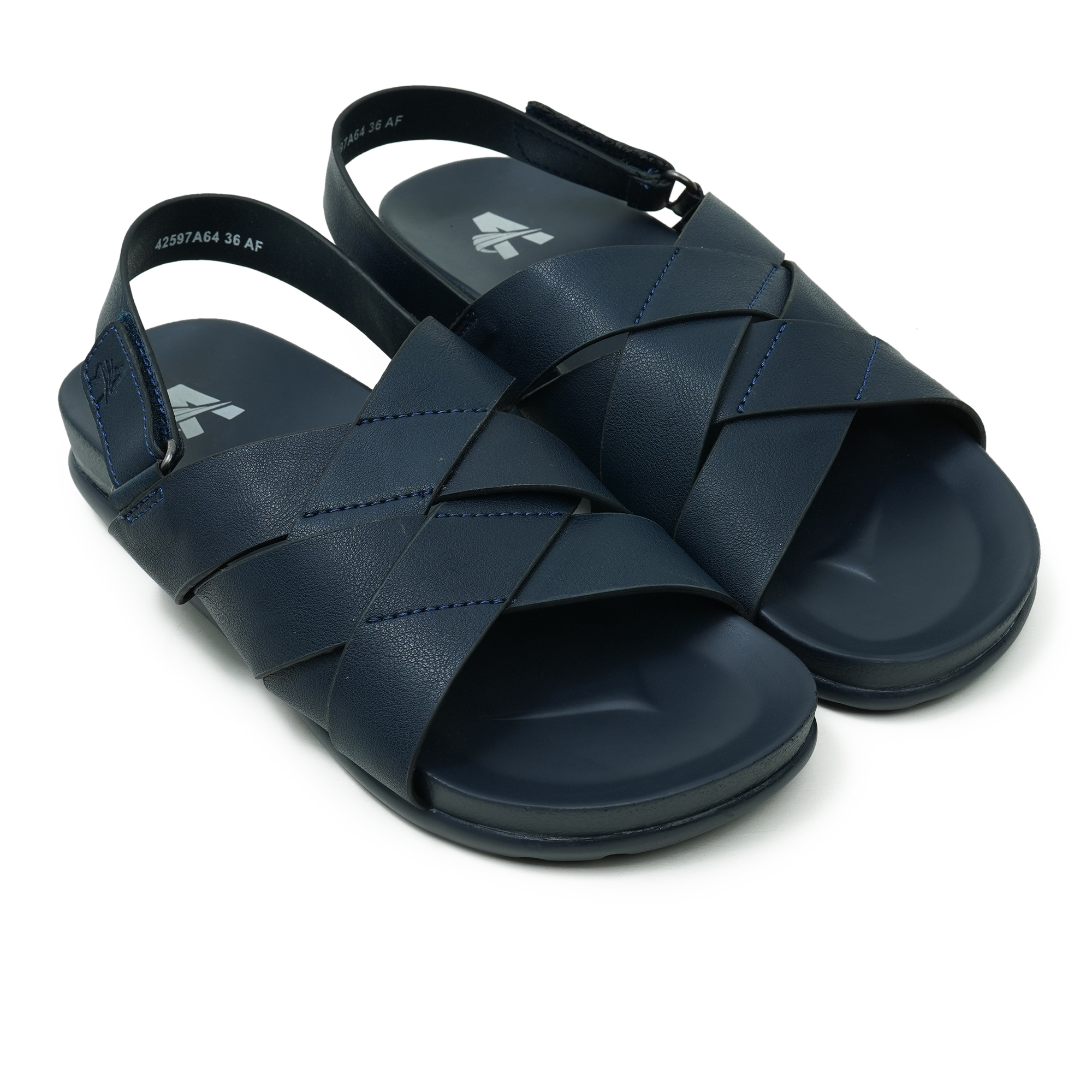 Twinkler’s boys’ black backbelt sandal combines durable PVC construction with a timeless criss-cross vamp for reliable everyday wear. The adjustable heel strap ensures a secure fit while the contoured cushioned footbed delivers comfortable support for active little feet. A sturdy stitched EVA/rubber outsole provides dependable traction, and reinforced stitching plus a metal ring detail add durability and subtle style. Practical and versatile, this sandal pairs well with shorts, jeans, or casual trousers for playtime and outings.