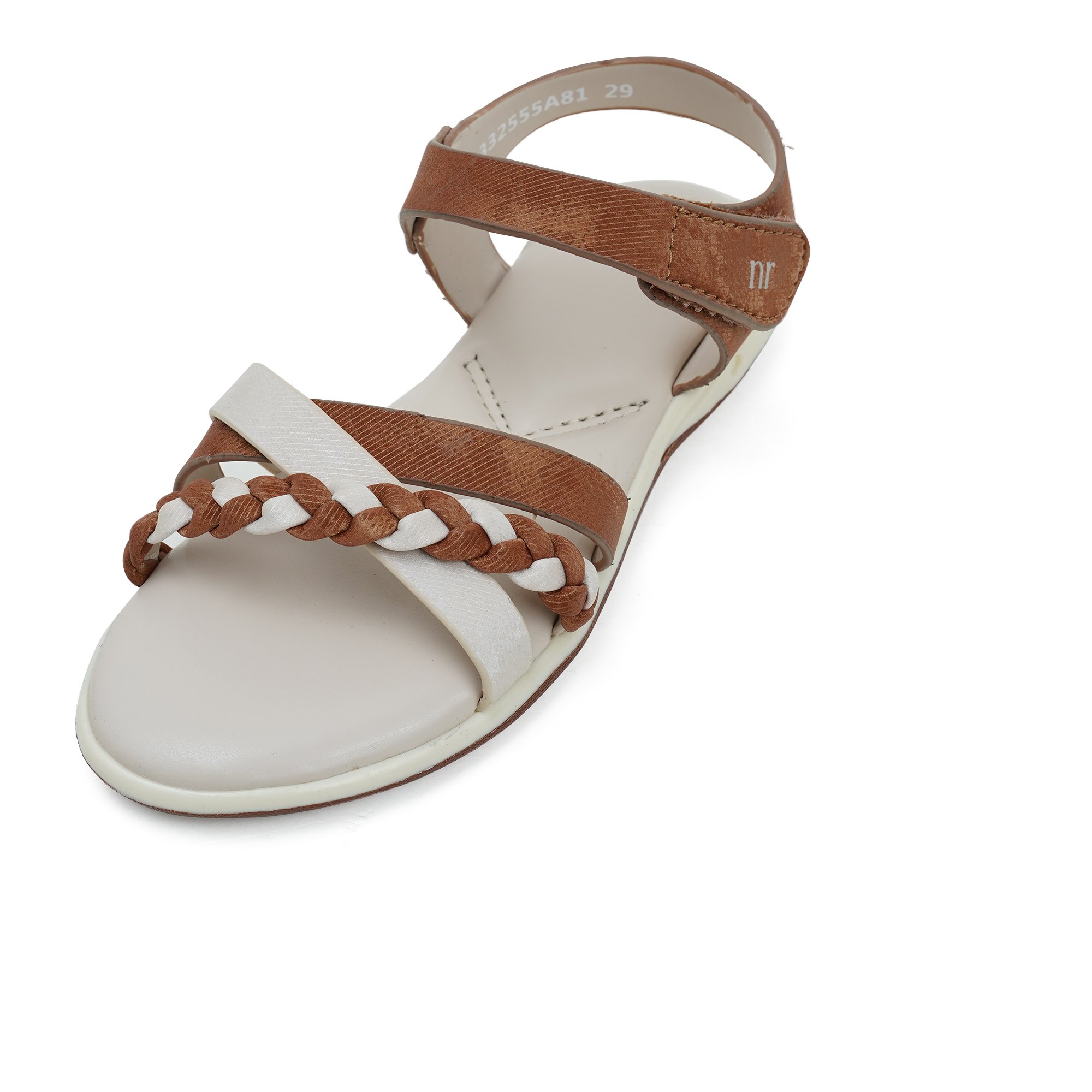 Twinkler Girls Sandal in a classic brown tone features a trendy white and brown cross-strap design with a charming braided accent that elevates the look. The ankle strap helps keep the sandal securely in place, making it comfortable for walking and active days. Designed to be lightweight with a soft footbed, it’s ideal for long wear—whether for casual outings, family functions, or daily use. Pairs beautifully with dresses, jeans, and ethnic wear.