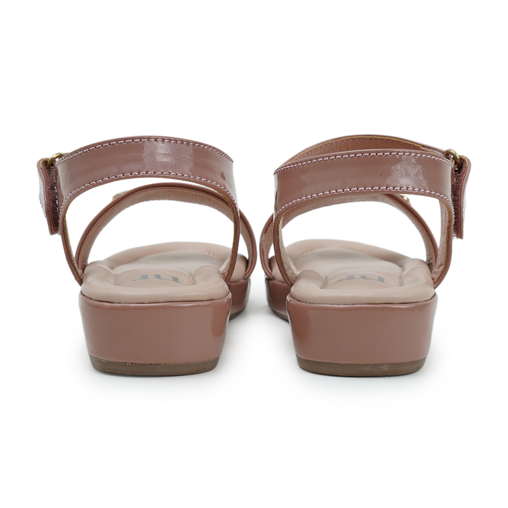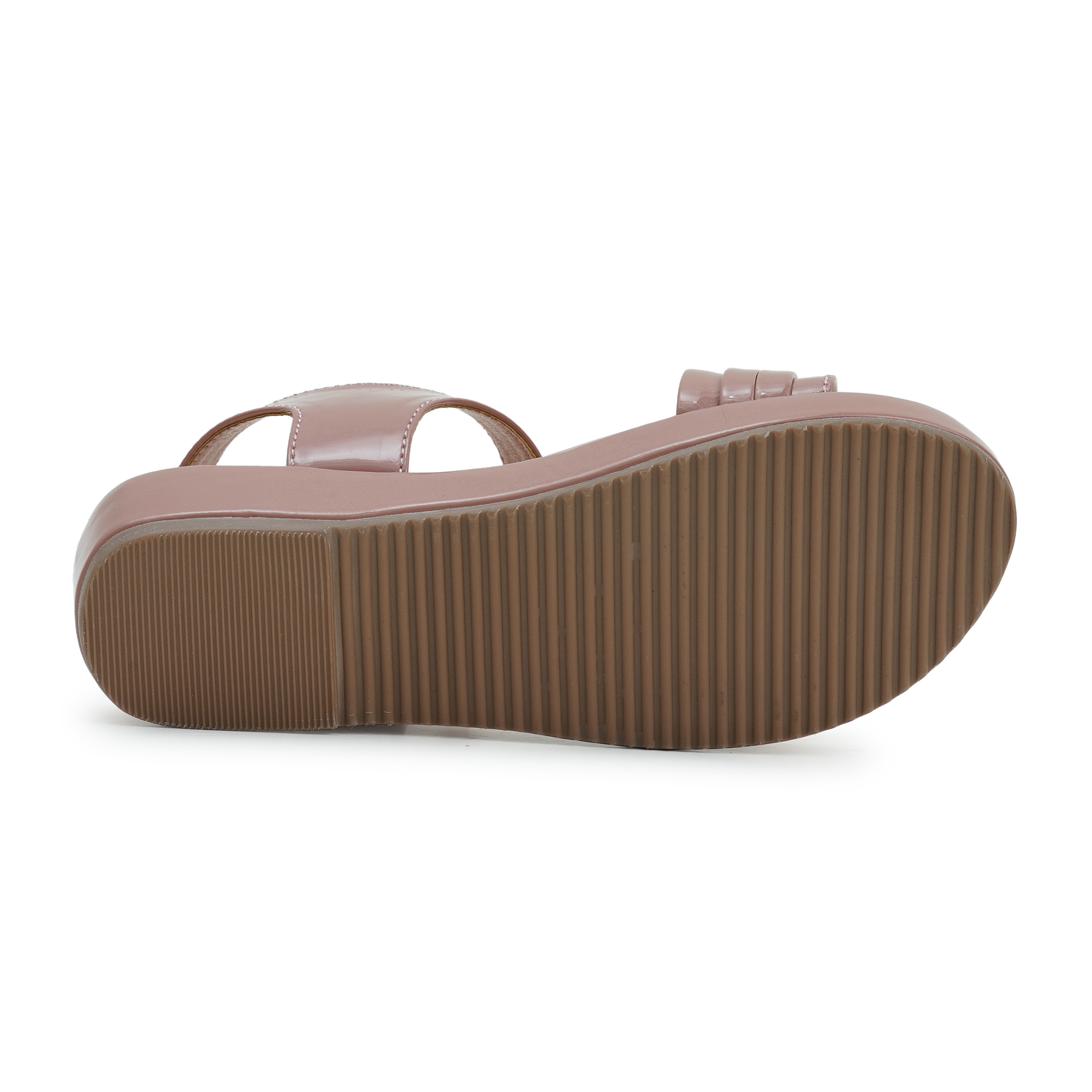 - Soft blush-pink glossy upper with neat contrast stitching