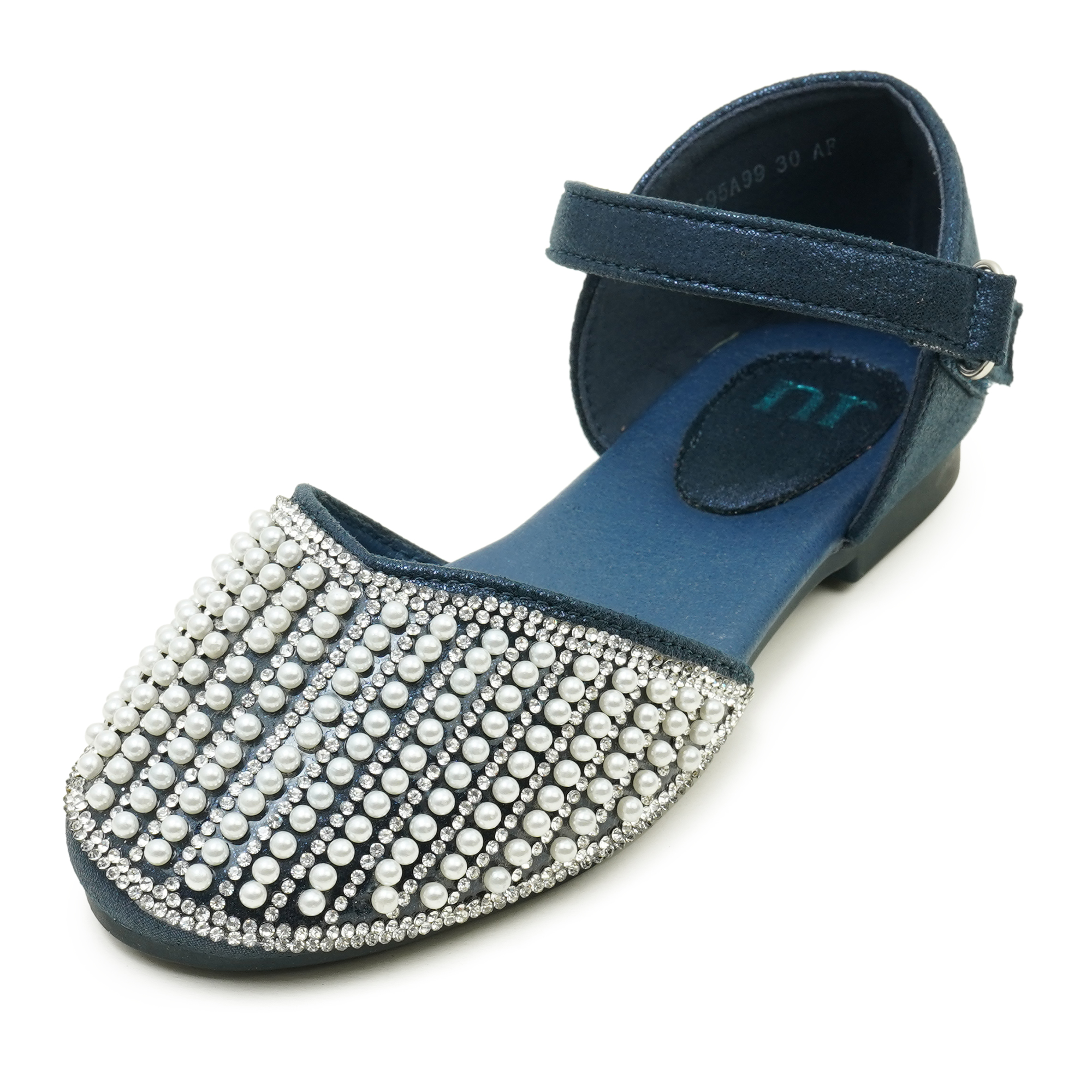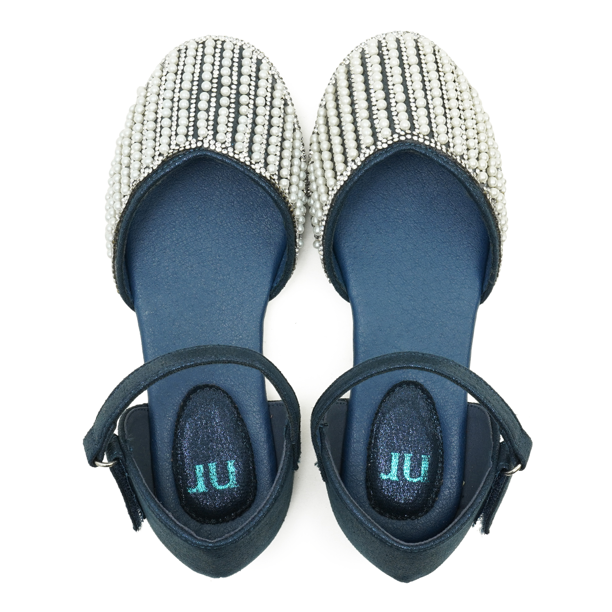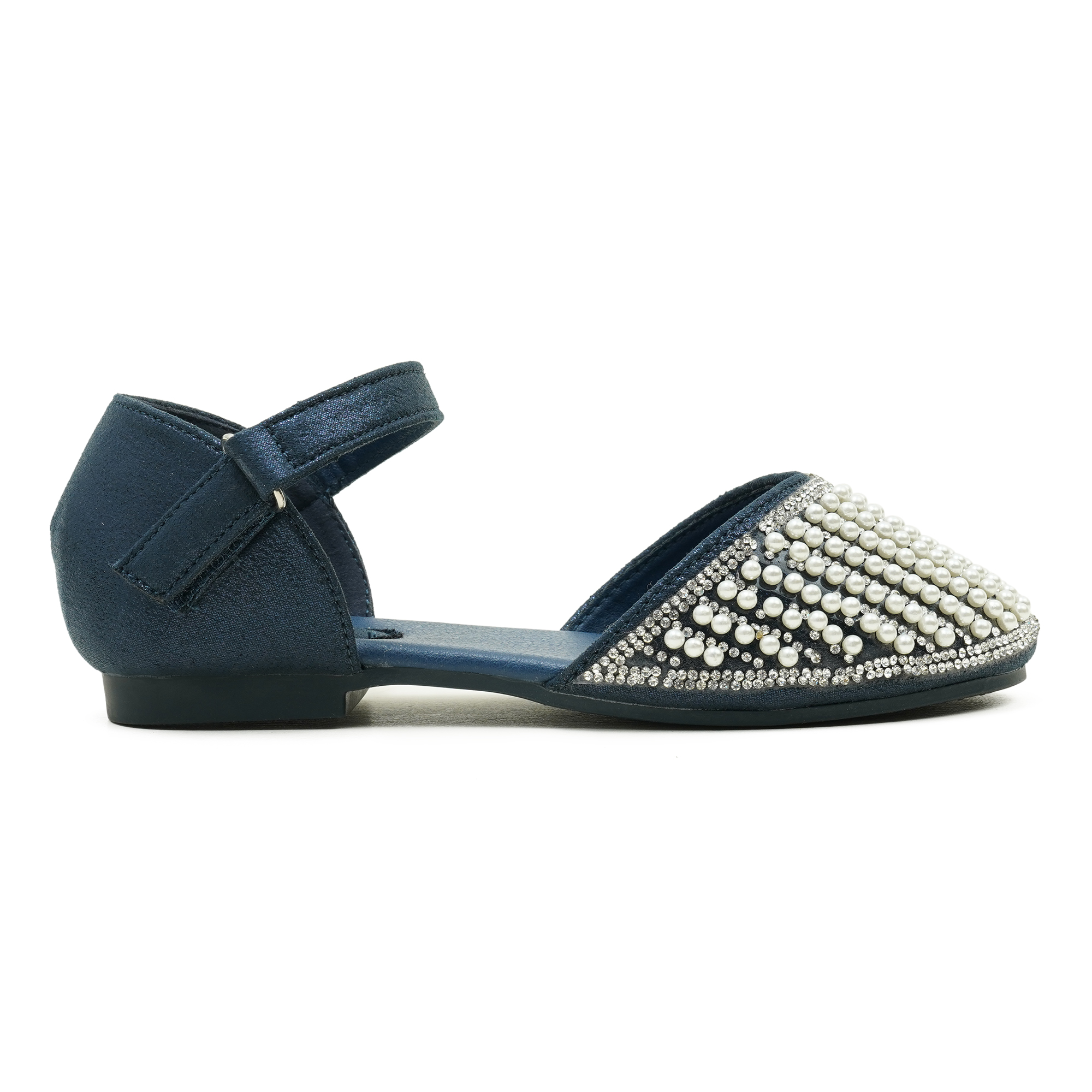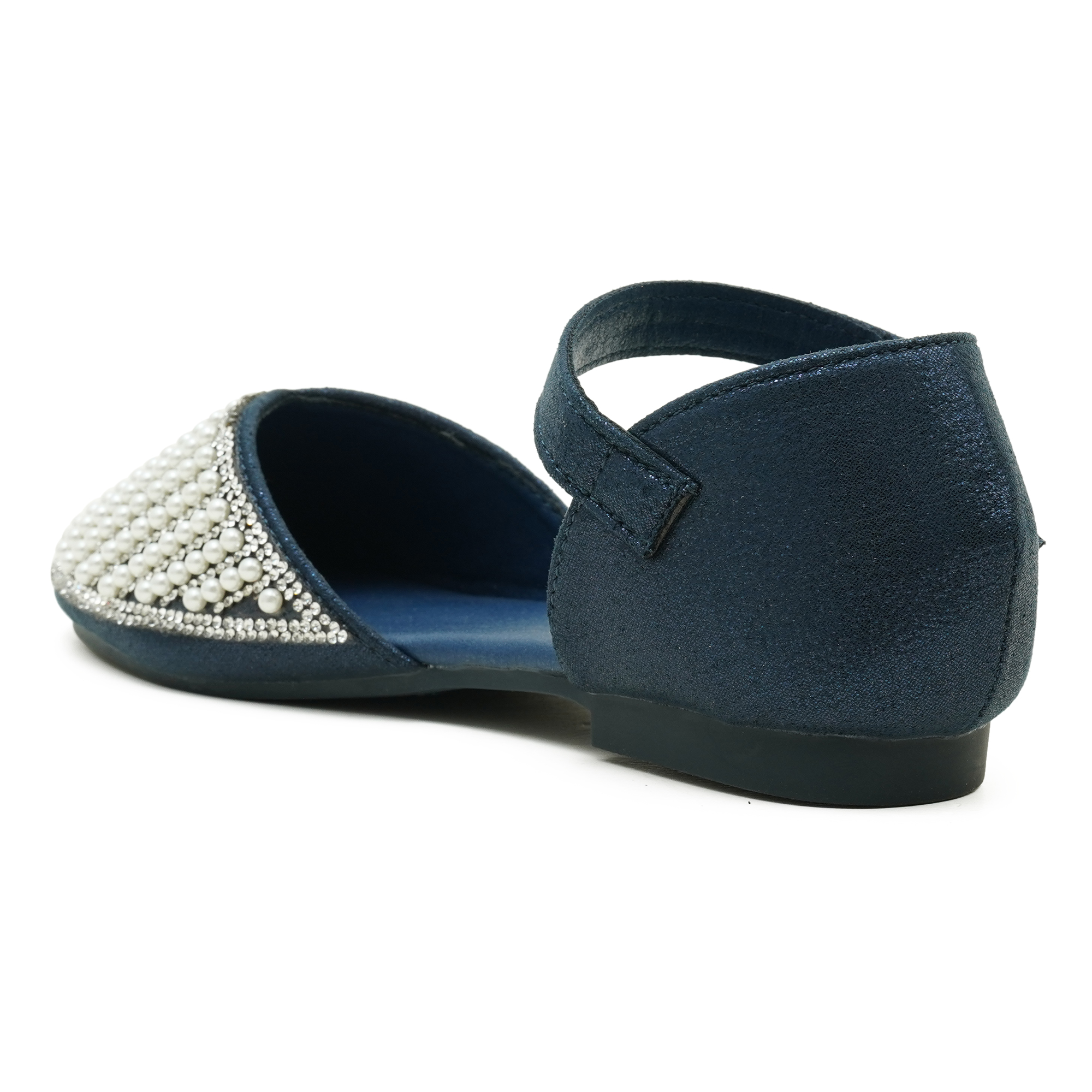The rich navy color brings a stylish, festive touch to your child’s look. The soft fabric upper feels comfortable, while the belt strap offers a secure fit for confident steps. Beautiful stone work with pearl detailing adds sparkle and a premium finish, making it perfect for parties, weddings, and family functions. Lightweight and easy to wear, this sandal keeps her comfortable while looking dressy all day.