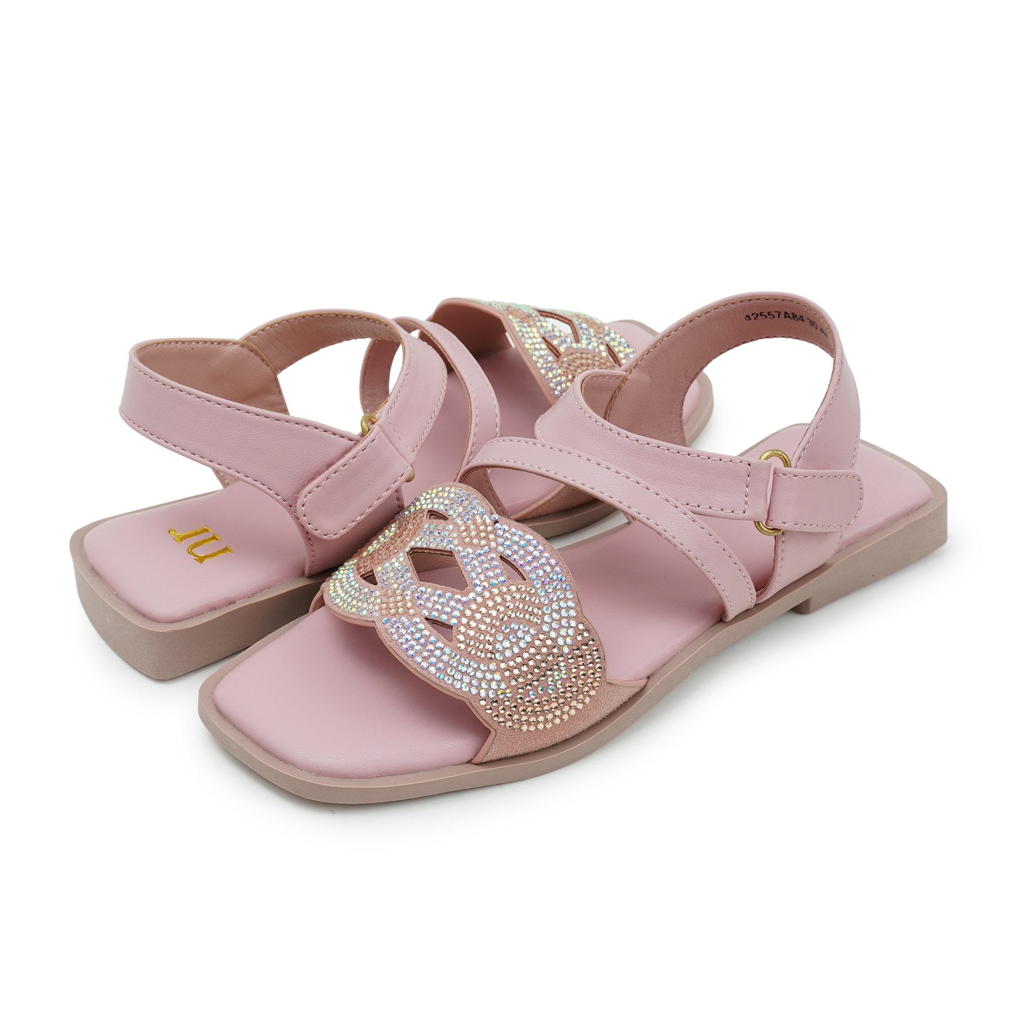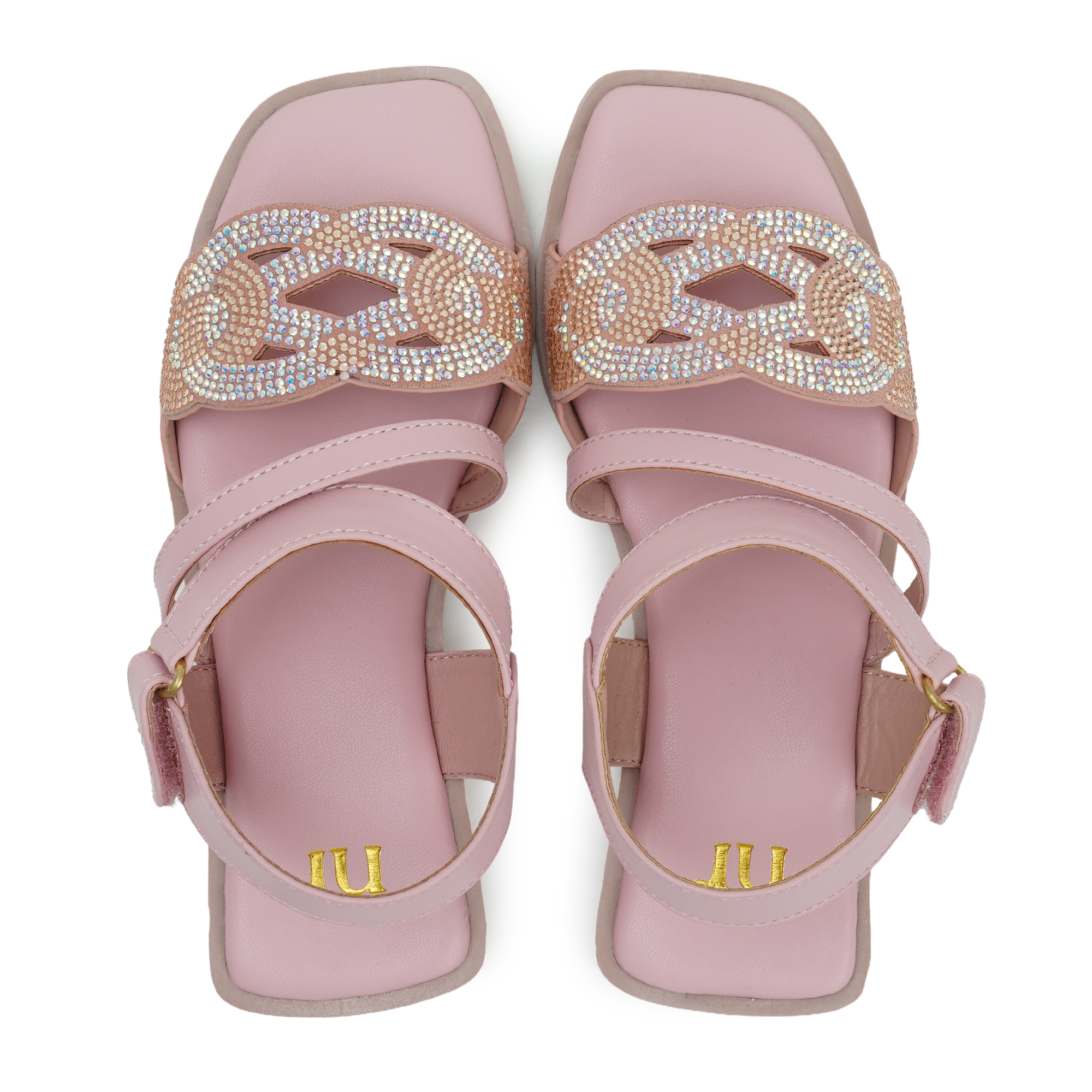 - Sparkling cat-shaped gem applique on the toe strap