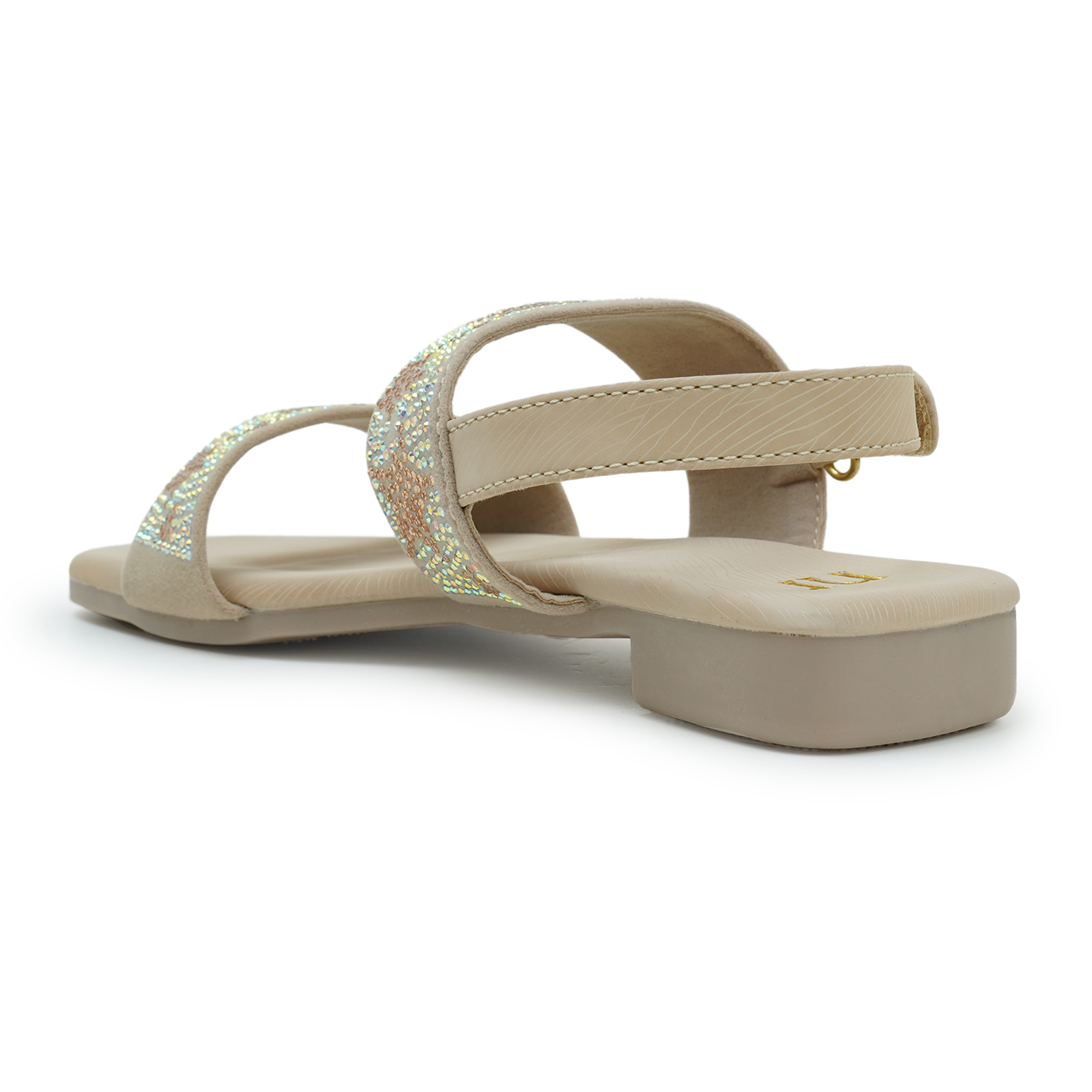 - Decorative slim belt detail across the instep with gold-tone buckle