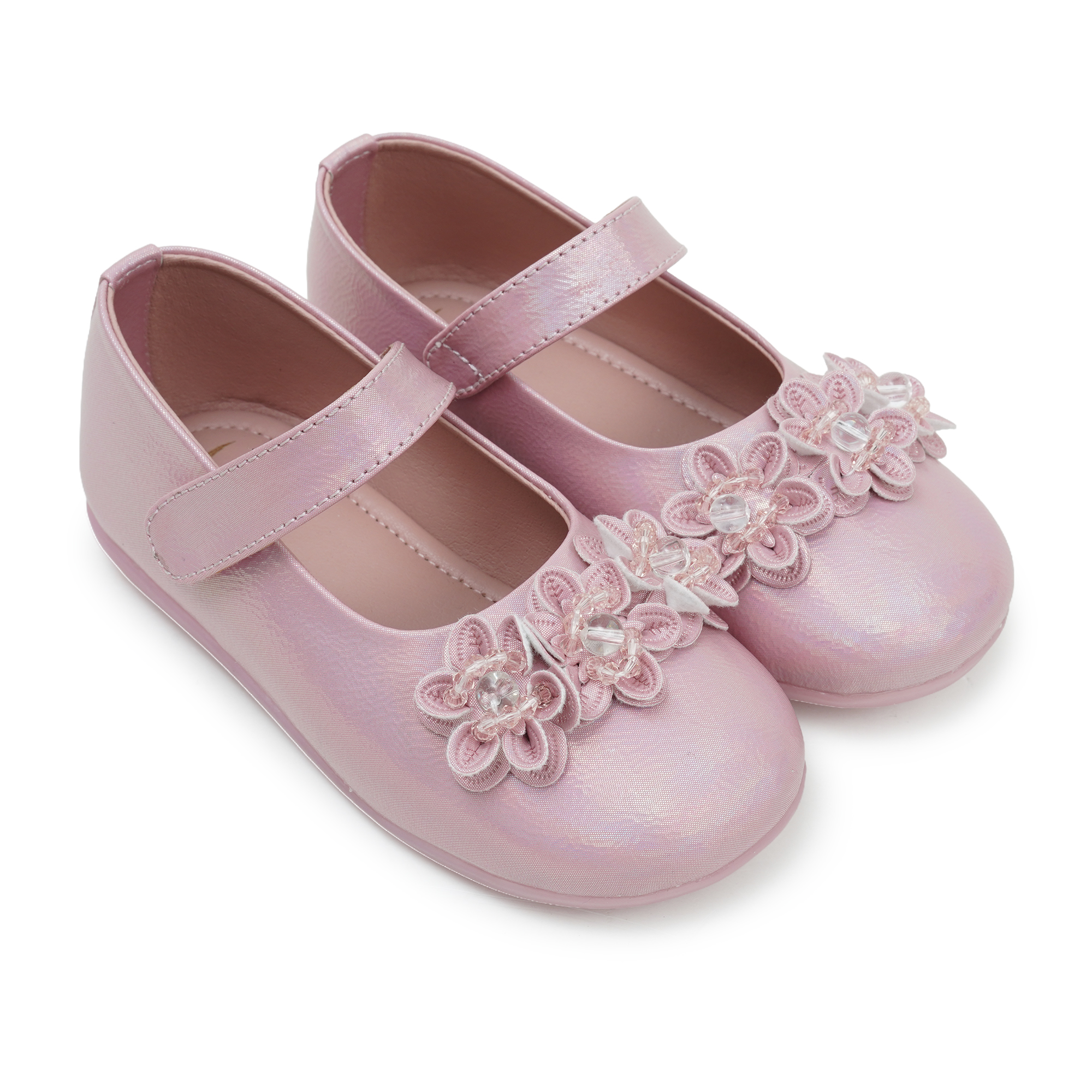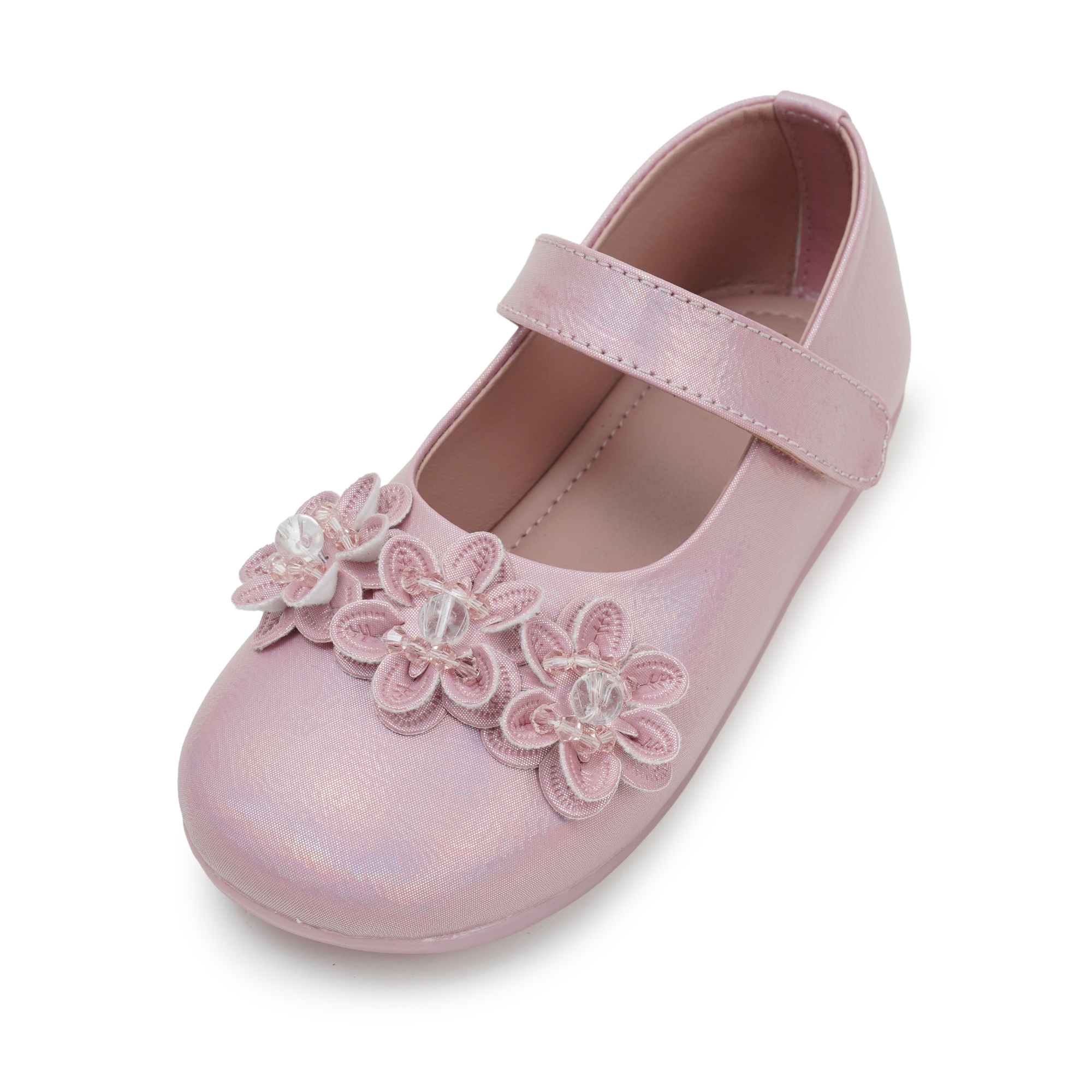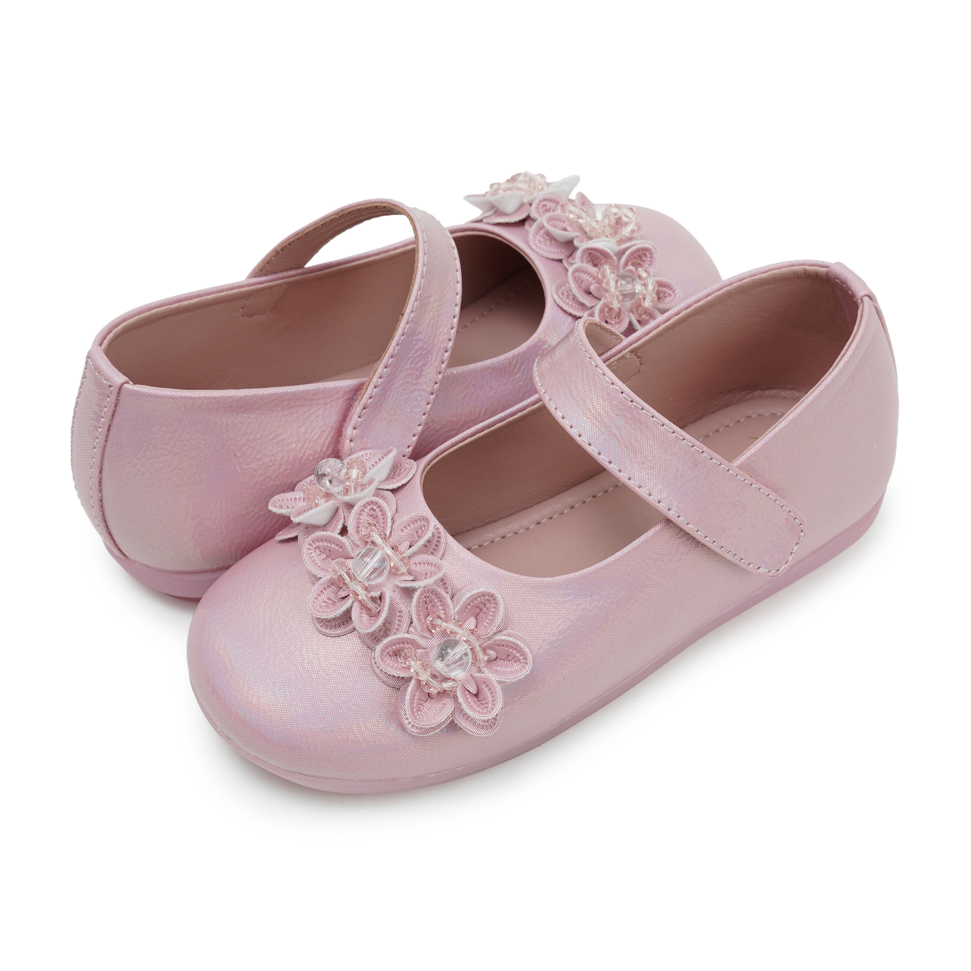 Twinkler kids’ pump shines with a subtle iridescent finish and a sweet floral applique. The adjustable hook‑and‑loop strap and cushioned insole provide a secure, comfy fit while the lightweight sole keeps little feet happy ,ideal for parties and dress‑up.