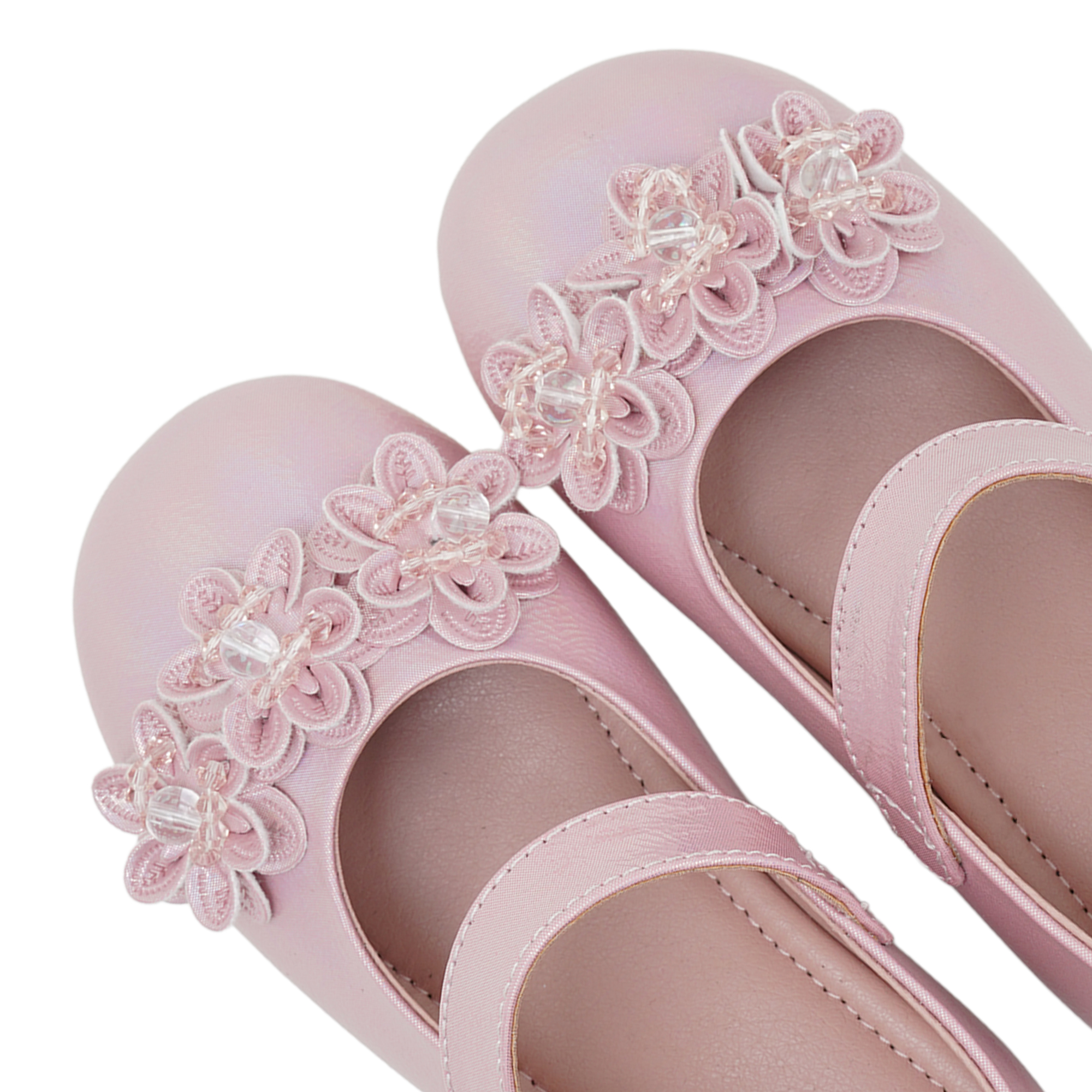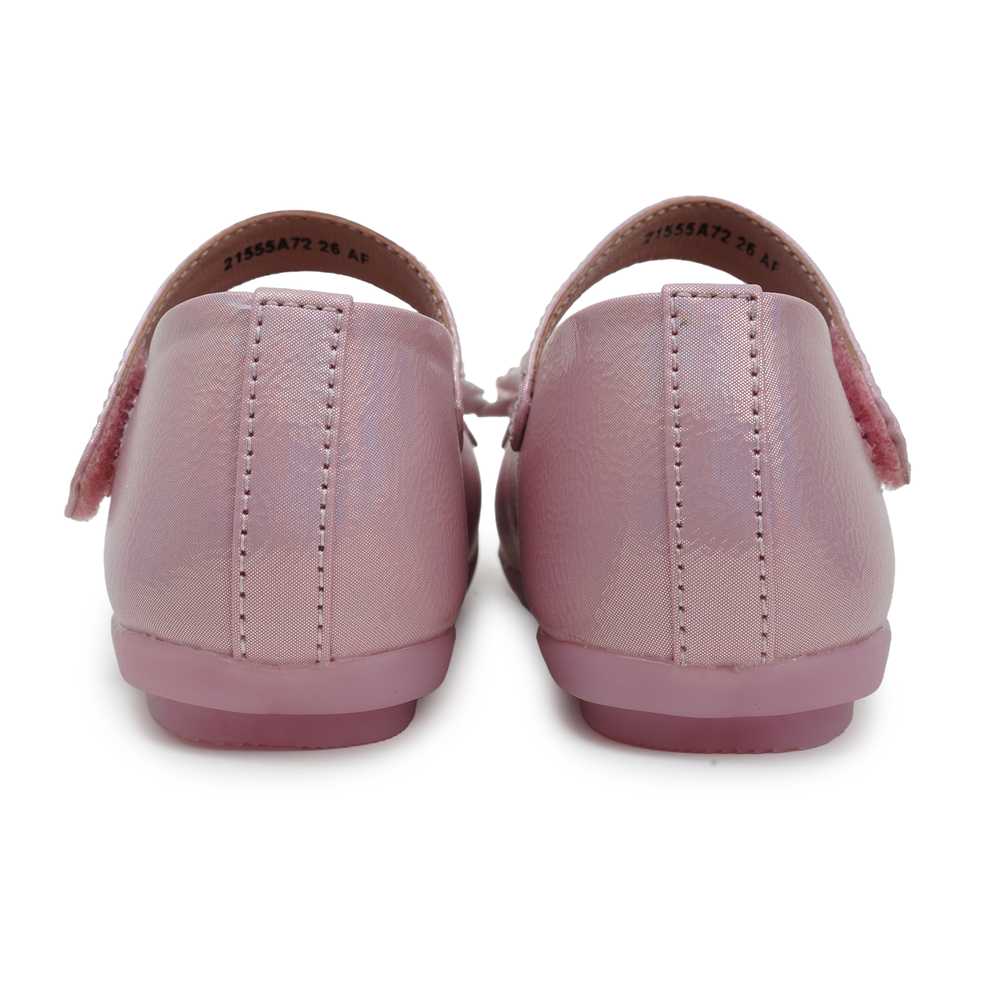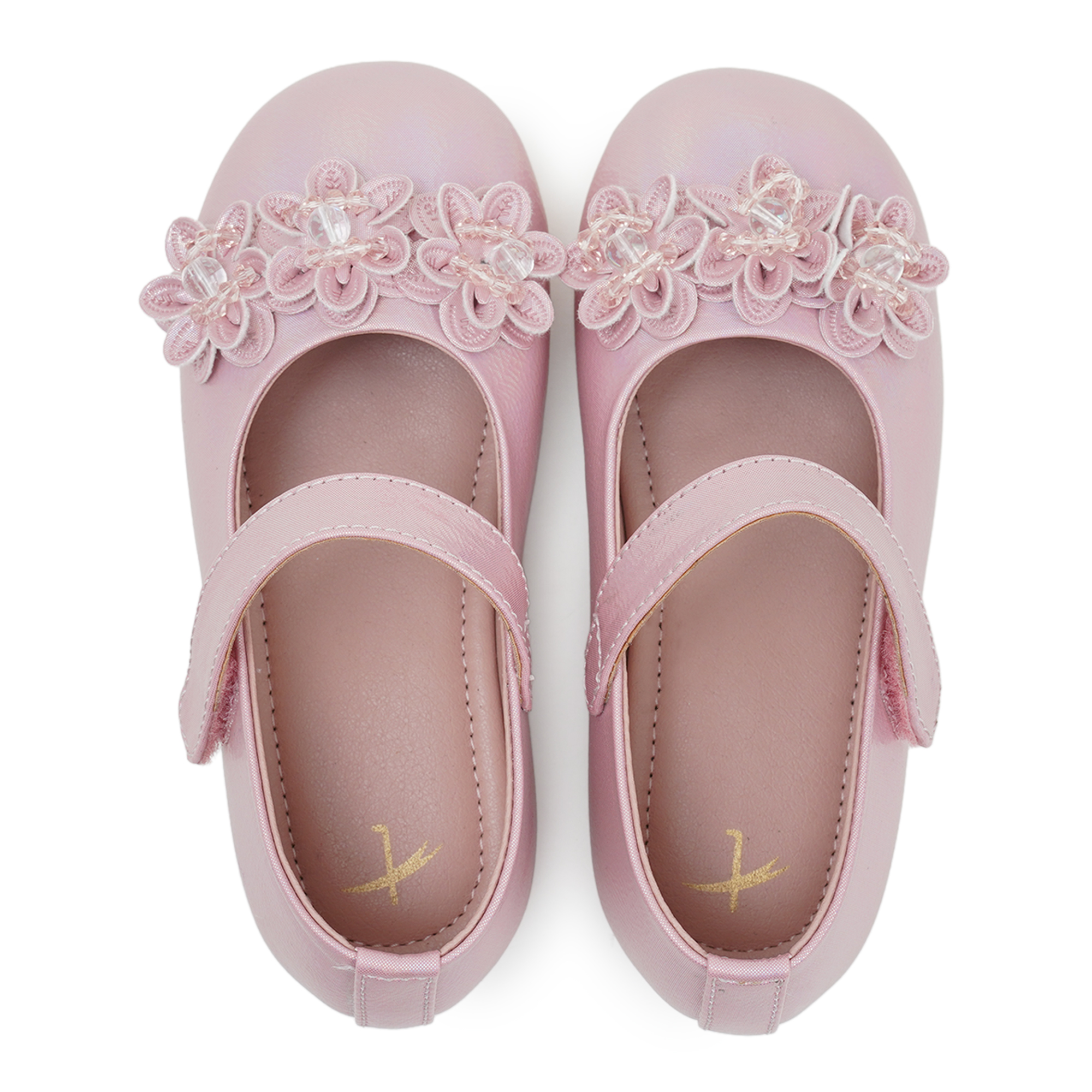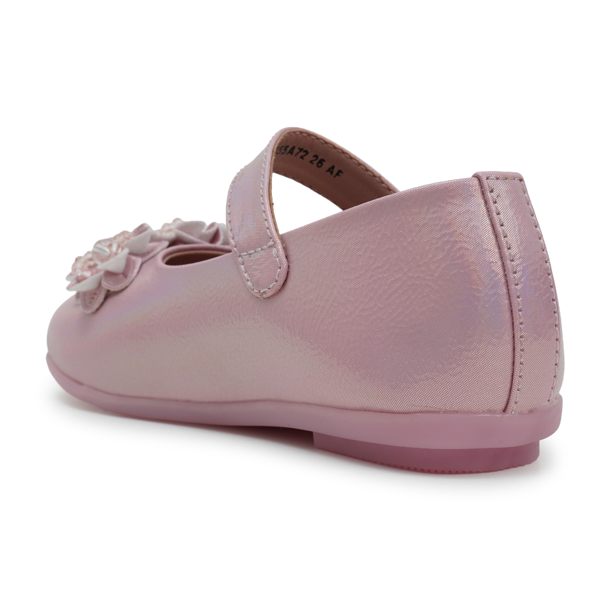 Twinkler kids’ pump shines with a subtle iridescent finish and a sweet floral applique. The adjustable hook‑and‑loop strap and cushioned insole provide a secure, comfy fit while the lightweight sole keeps little feet happy ,ideal for parties and dress‑up.