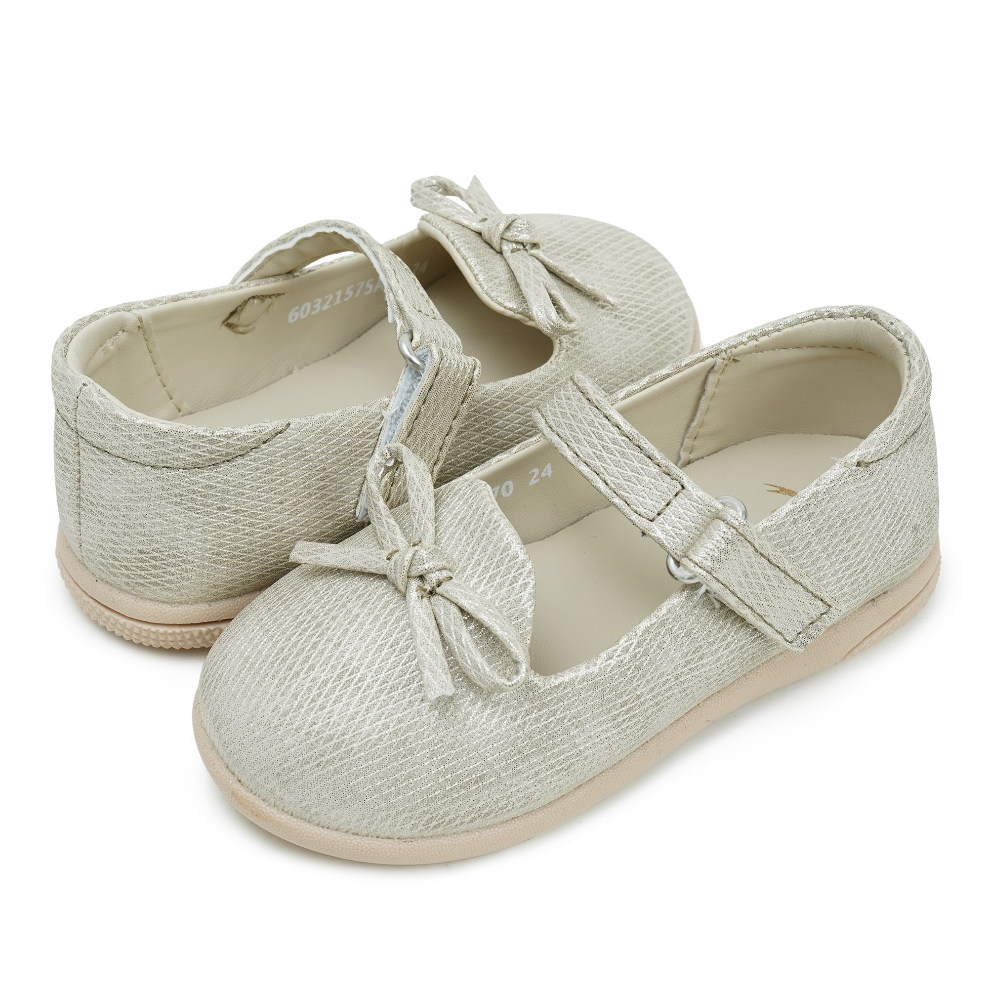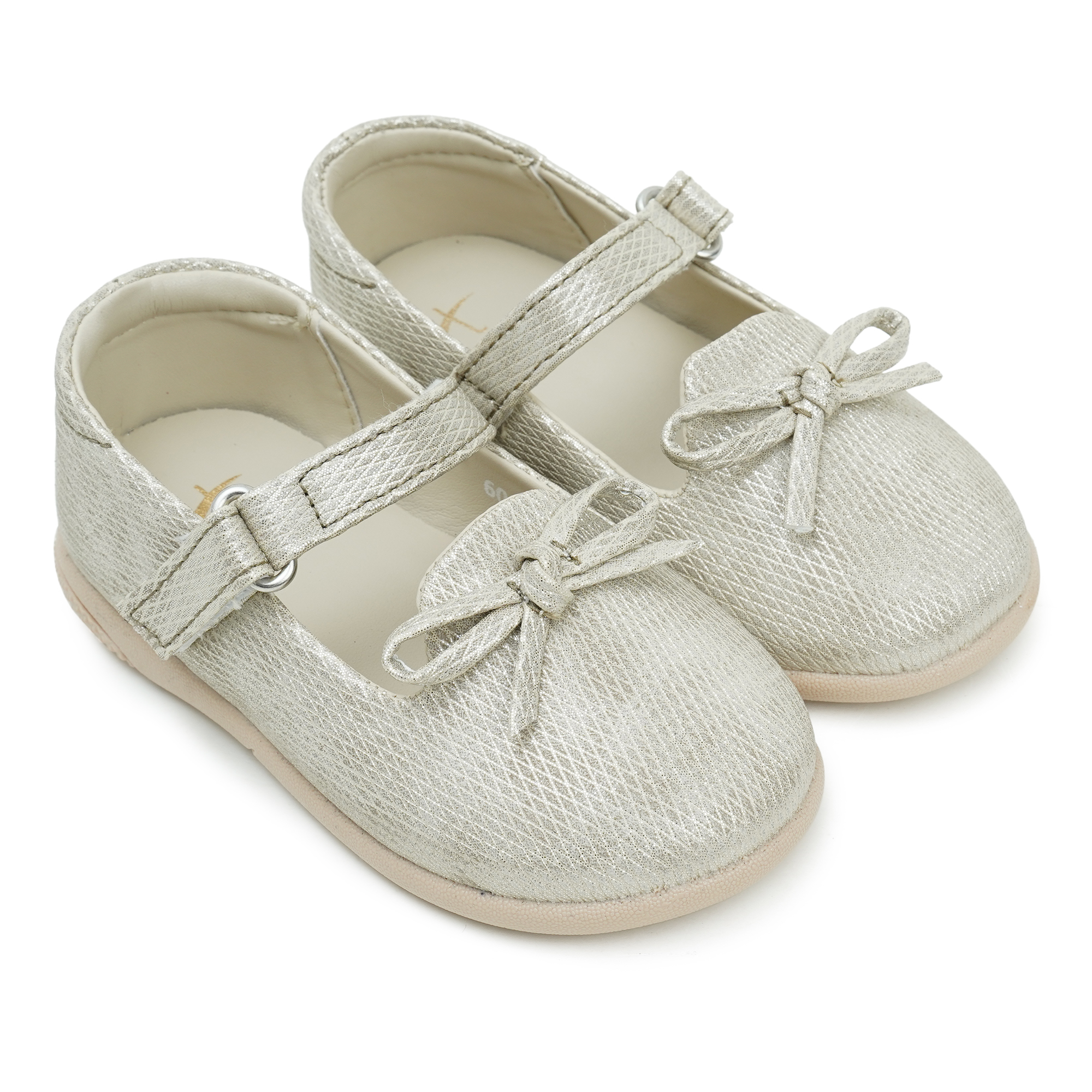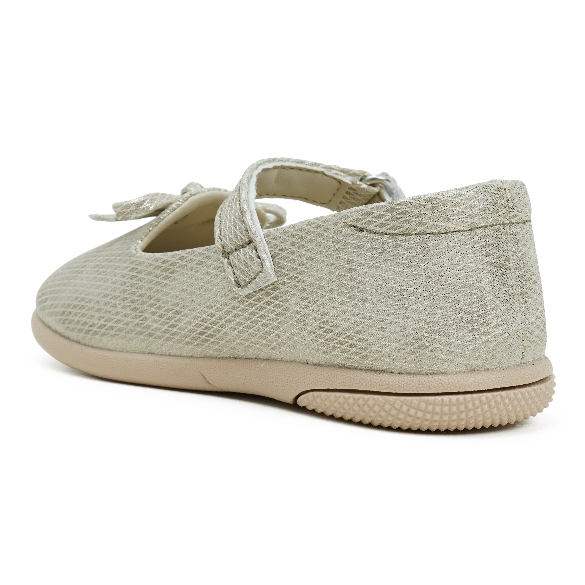- Shimmering gold PU upper with a textured, party-ready finish