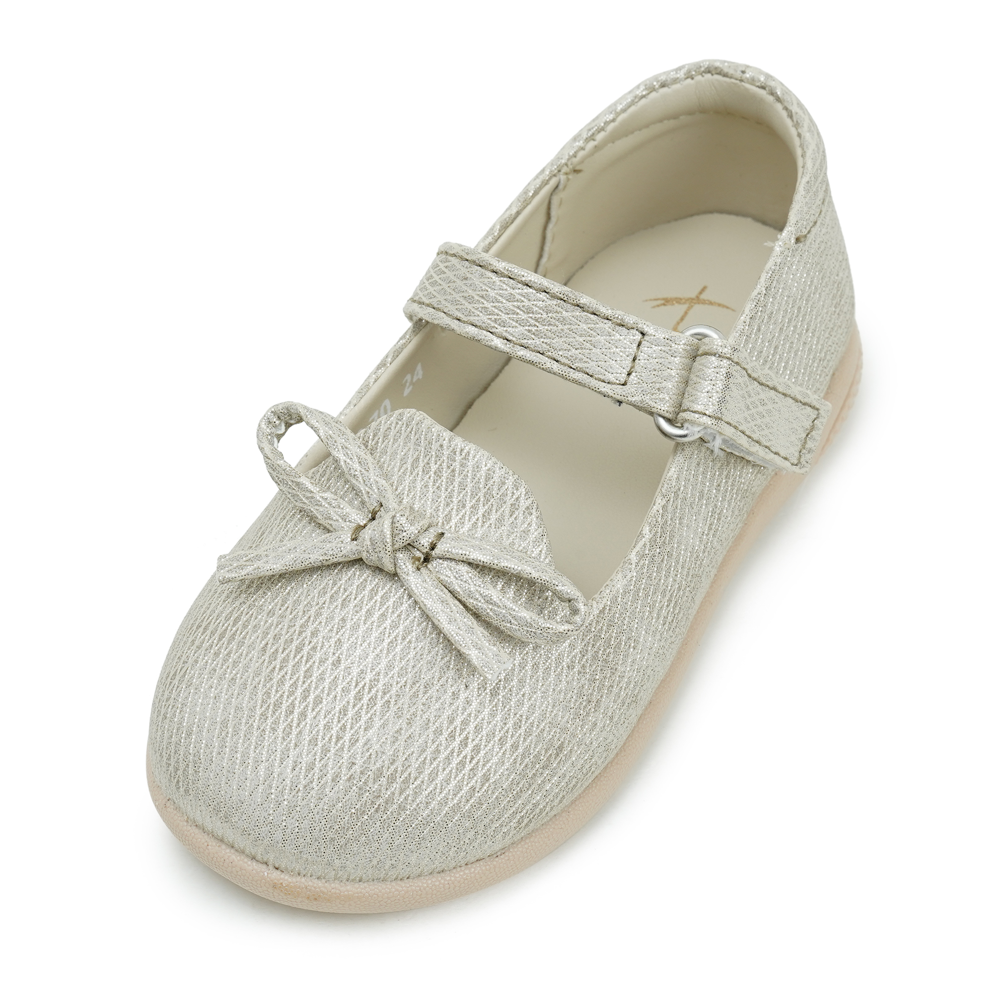 Let her shine brighter than the candles with Twinkler’s glittering gold pumps. Soft PU surrounds little feet in comfort; a single hook-and-loop bar opens wide for fuss-free mornings. The neat bow detail finishes any outfit, from frilly frocks to denim leggings. Underfoot, cushioned padding and a bendy PVC outsole encourage natural moves without slips. Lightweight, durable and easy to wipe, they’re the go-to shoes for every picture-perfect moment all day.