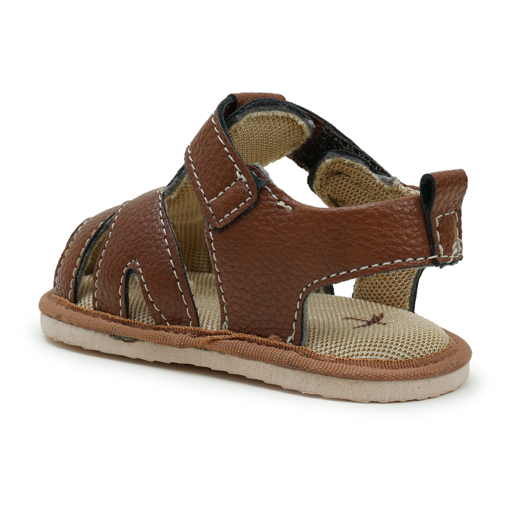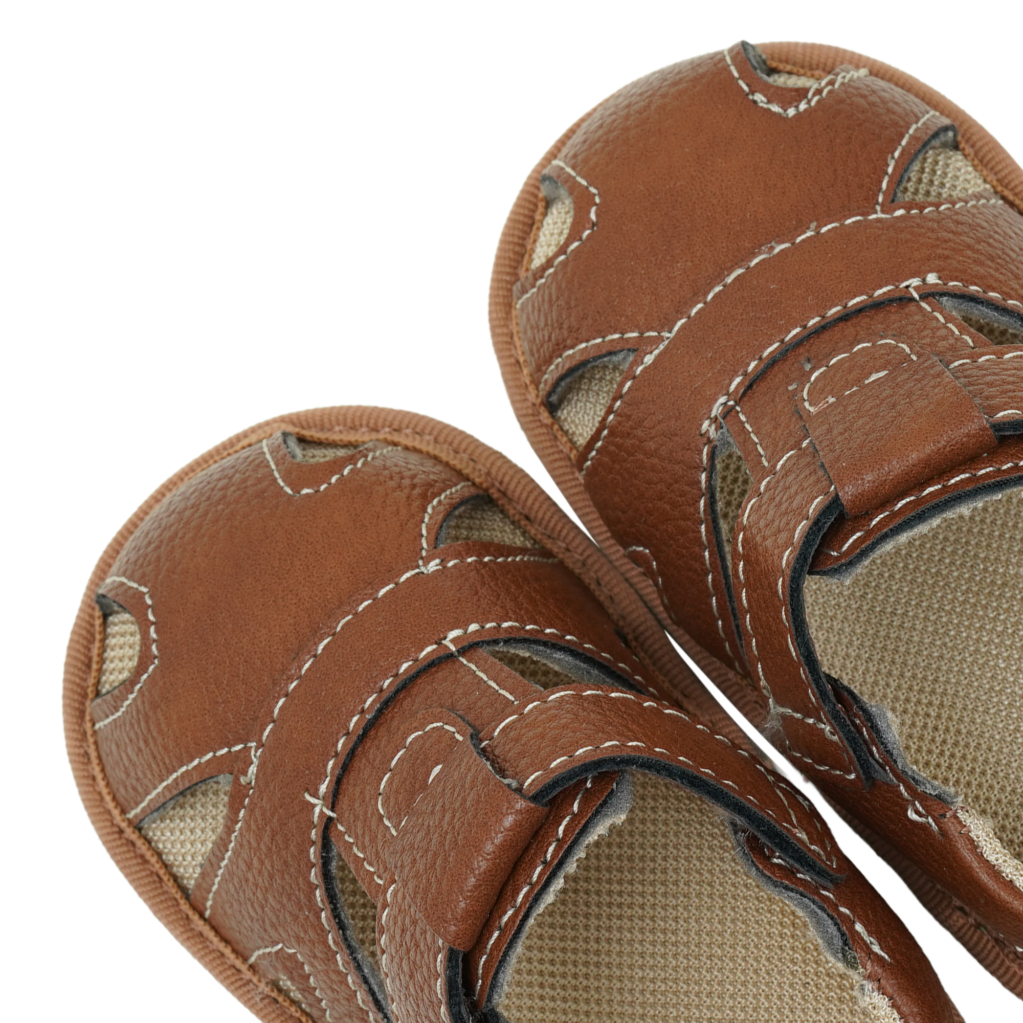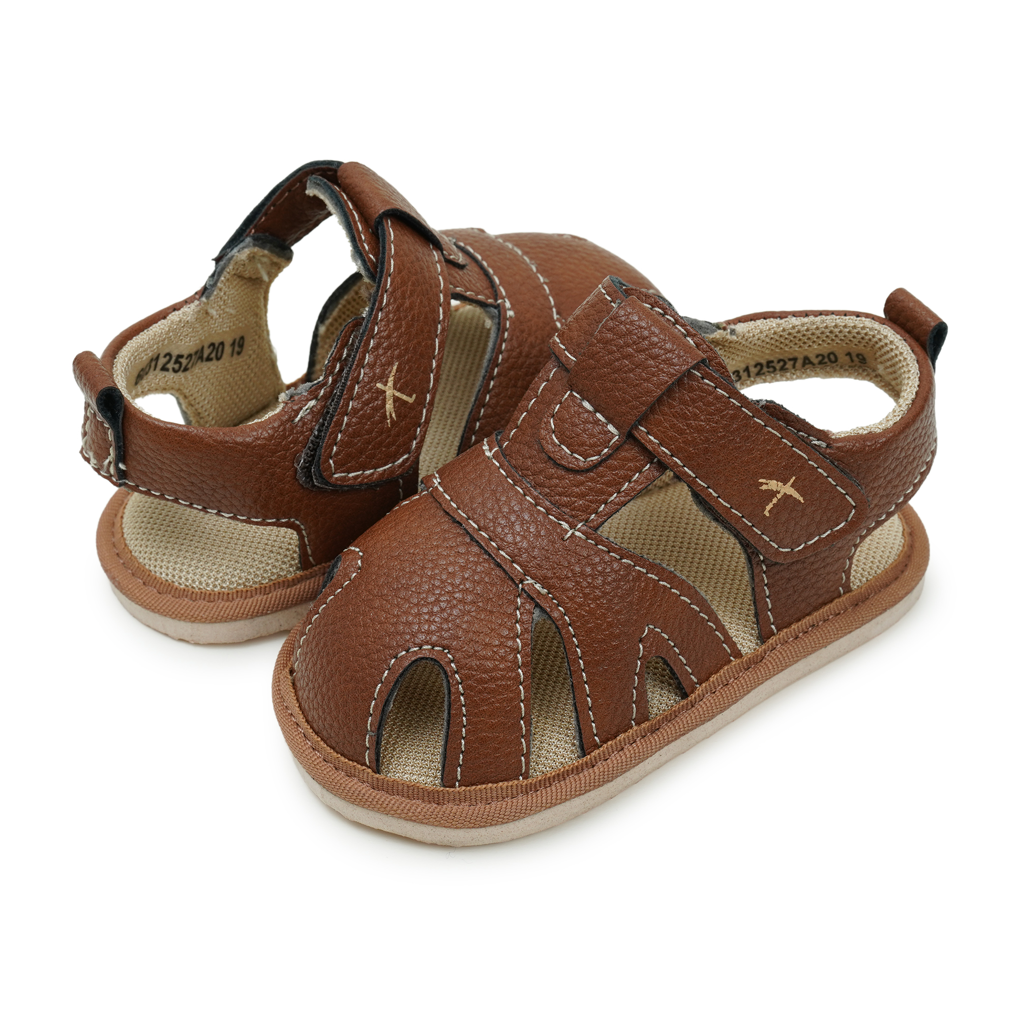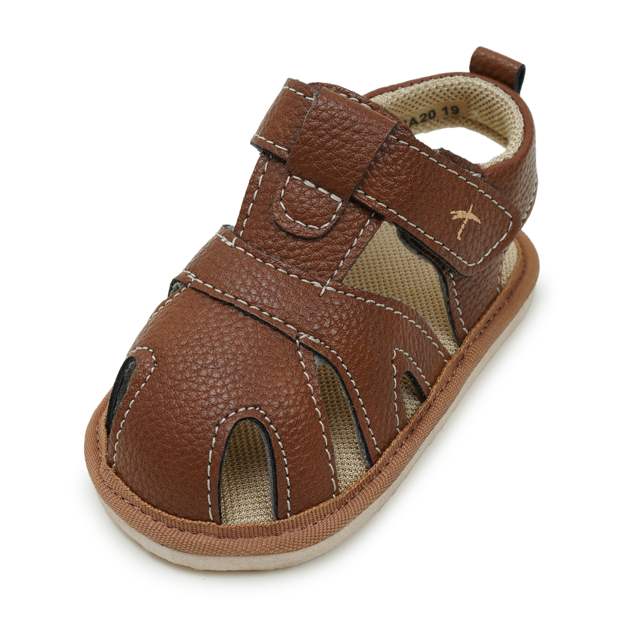 This sandal could be a cute and comfortable choice for everyday wear. The closed-toe design helps protect little feet while still allowing airflow through side cut-outs. A secure belt-style fit with easy velcro closure makes it quick to put on and adjust, perfect for active kids. With a soft, comfortable feel and a smart classic look, it pairs well with casual outfits for outings, playtime, and daily use.