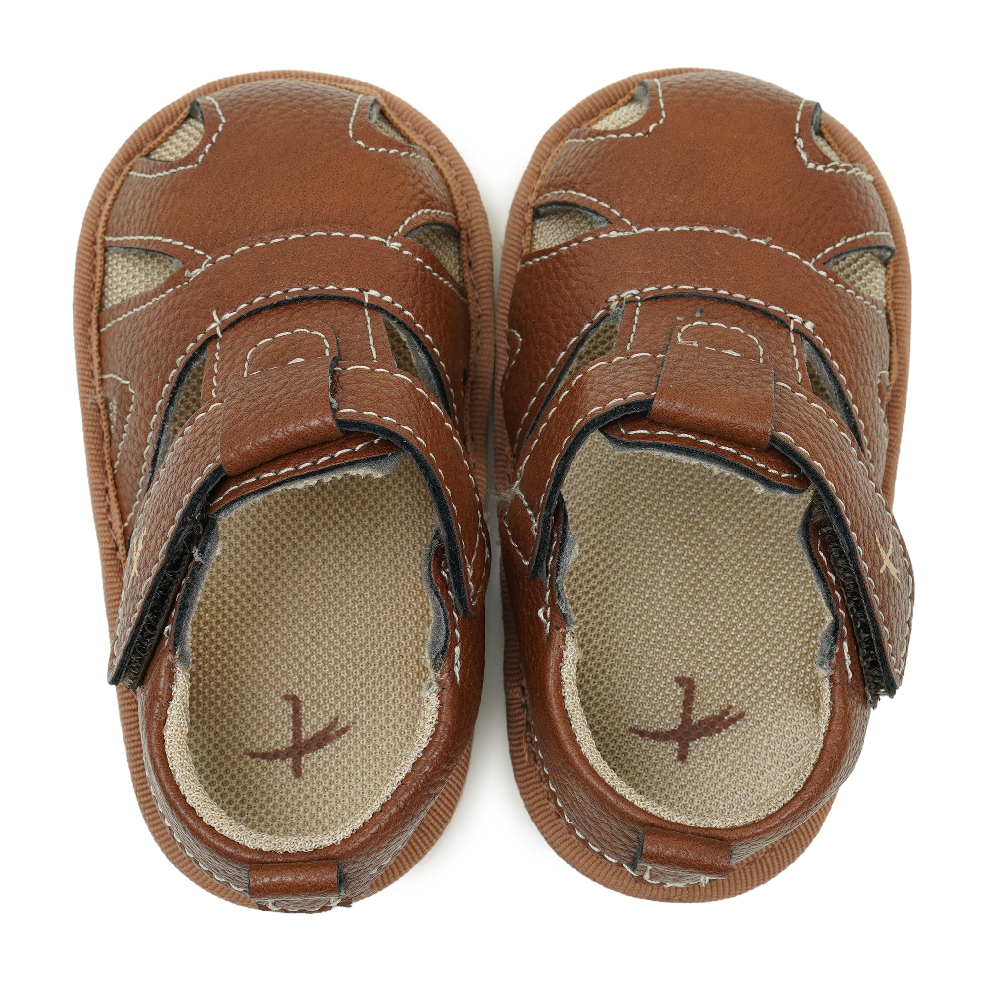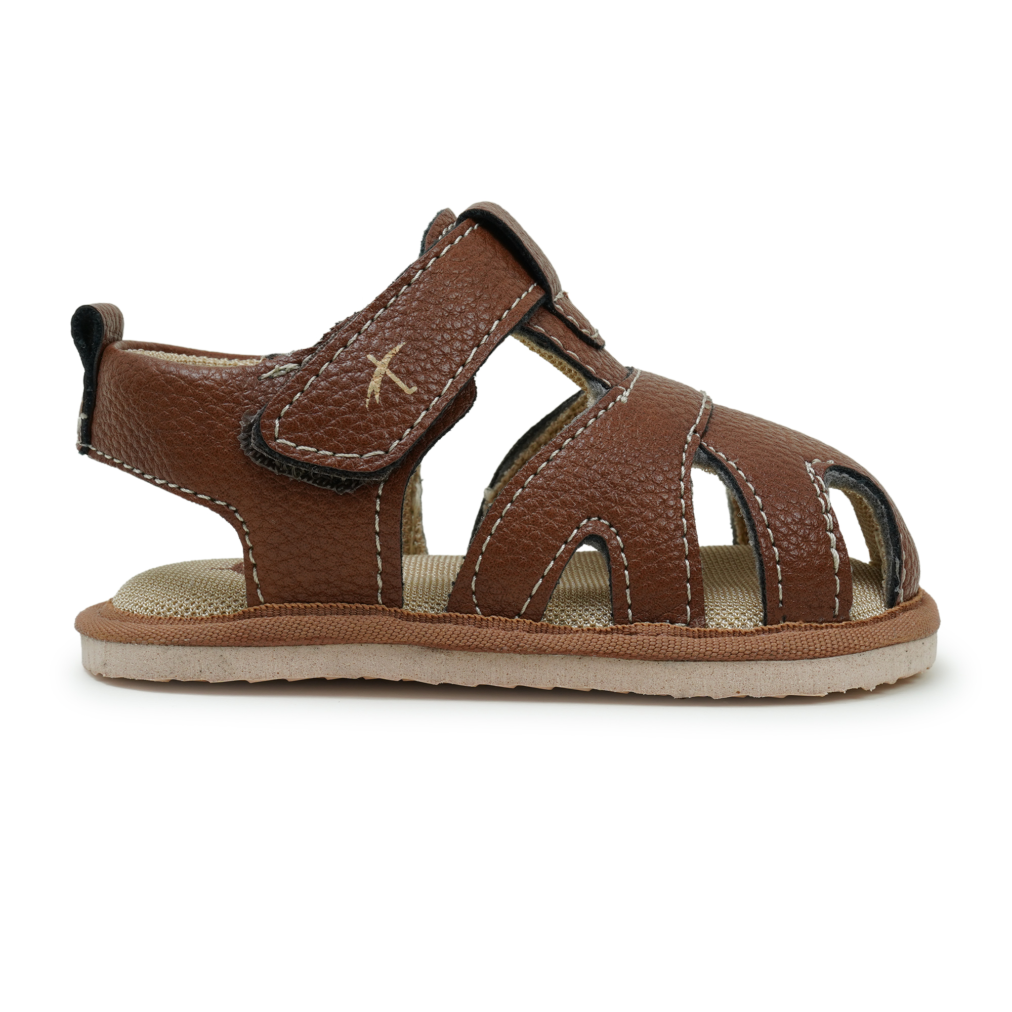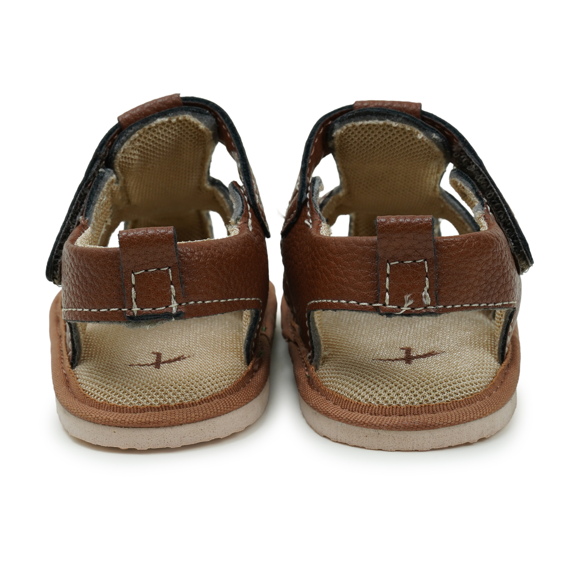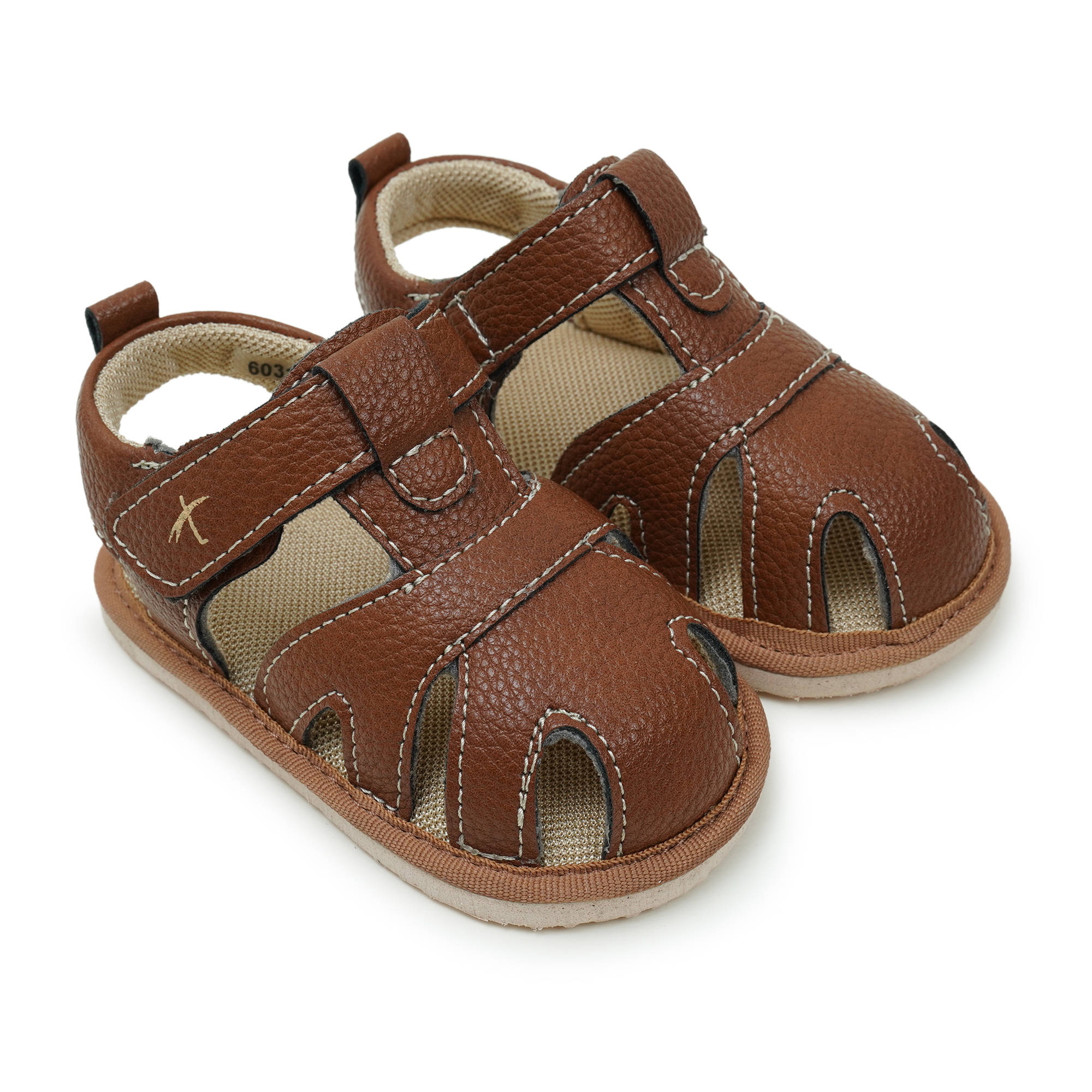 This sandal could be a cute and comfortable choice for everyday wear. The closed-toe design helps protect little feet while still allowing airflow through side cut-outs. A secure belt-style fit with easy velcro closure makes it quick to put on and adjust, perfect for active kids. With a soft, comfortable feel and a smart classic look, it pairs well with casual outfits for outings, playtime, and daily use.