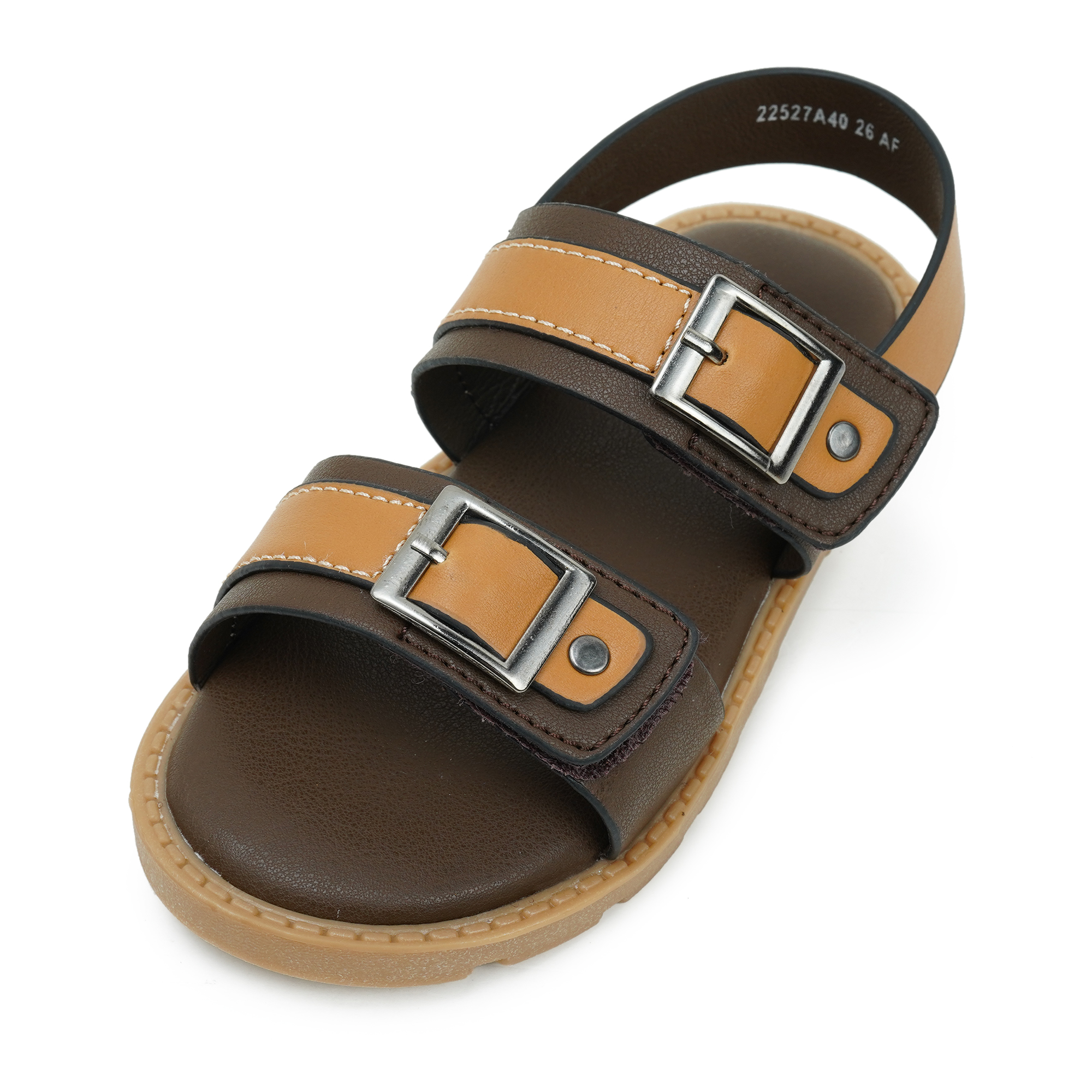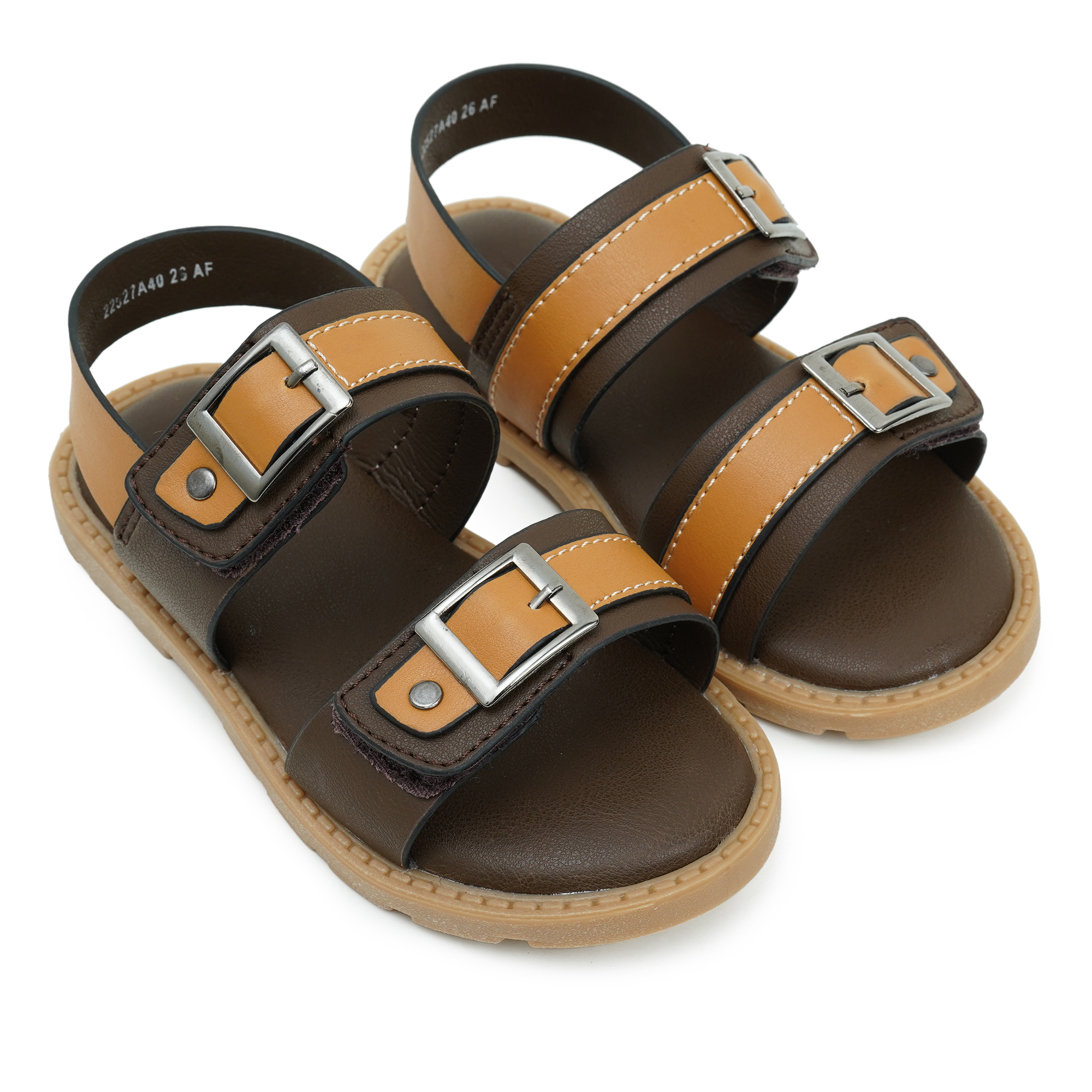 Twinkler Kids’ Sandals in brown PVC with belt accents. Built for active youngsters, these durable sandals feature two adjustable belt-style straps for a secure, comfy fit and a sturdy outsole ready for everyday outings.