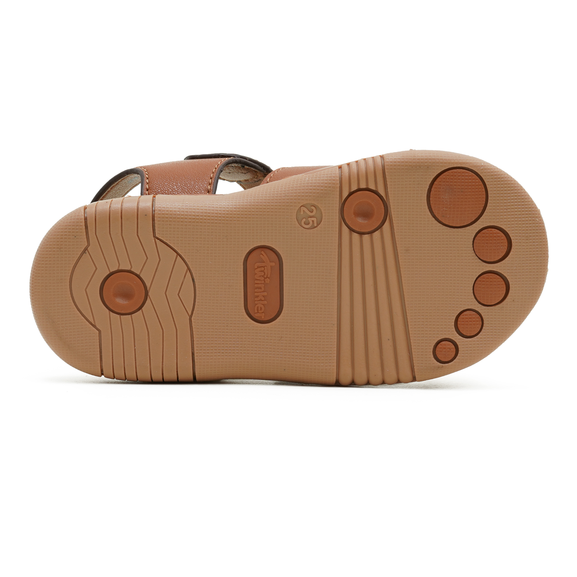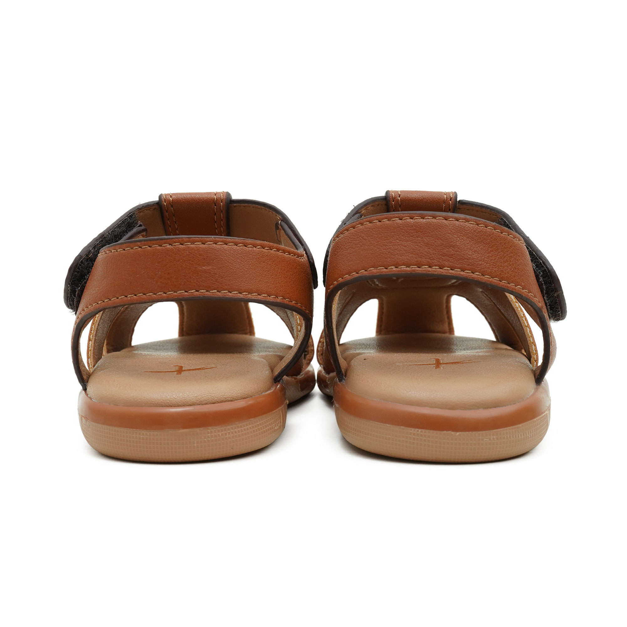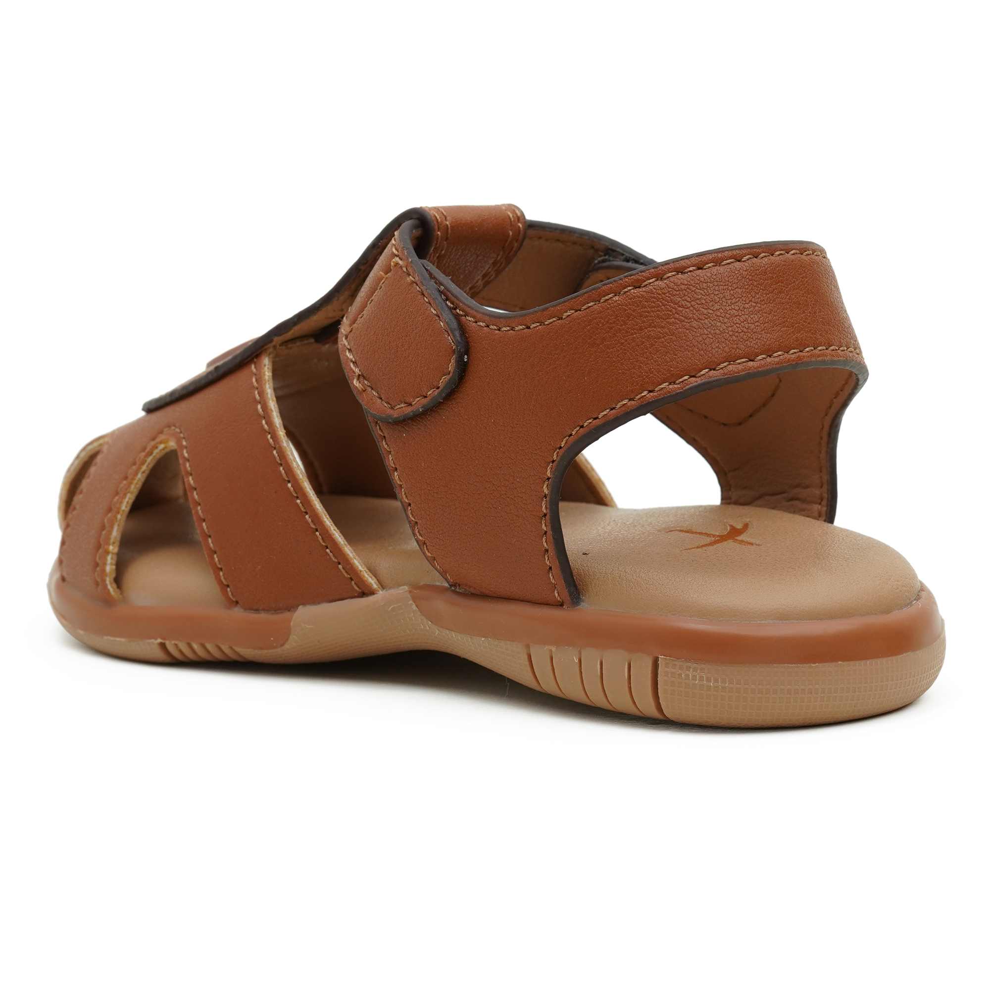 Designed for active little feet, this brown closed-toe sandal offers extra front protection with breathable side cut-outs. The adjustable hook-and-loop strap keeps the fit snug, while a cushioned footbed and flexible sole support comfy all-day steps.