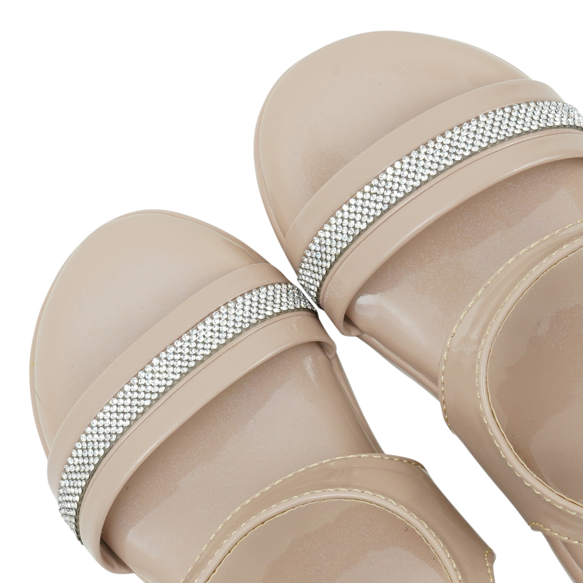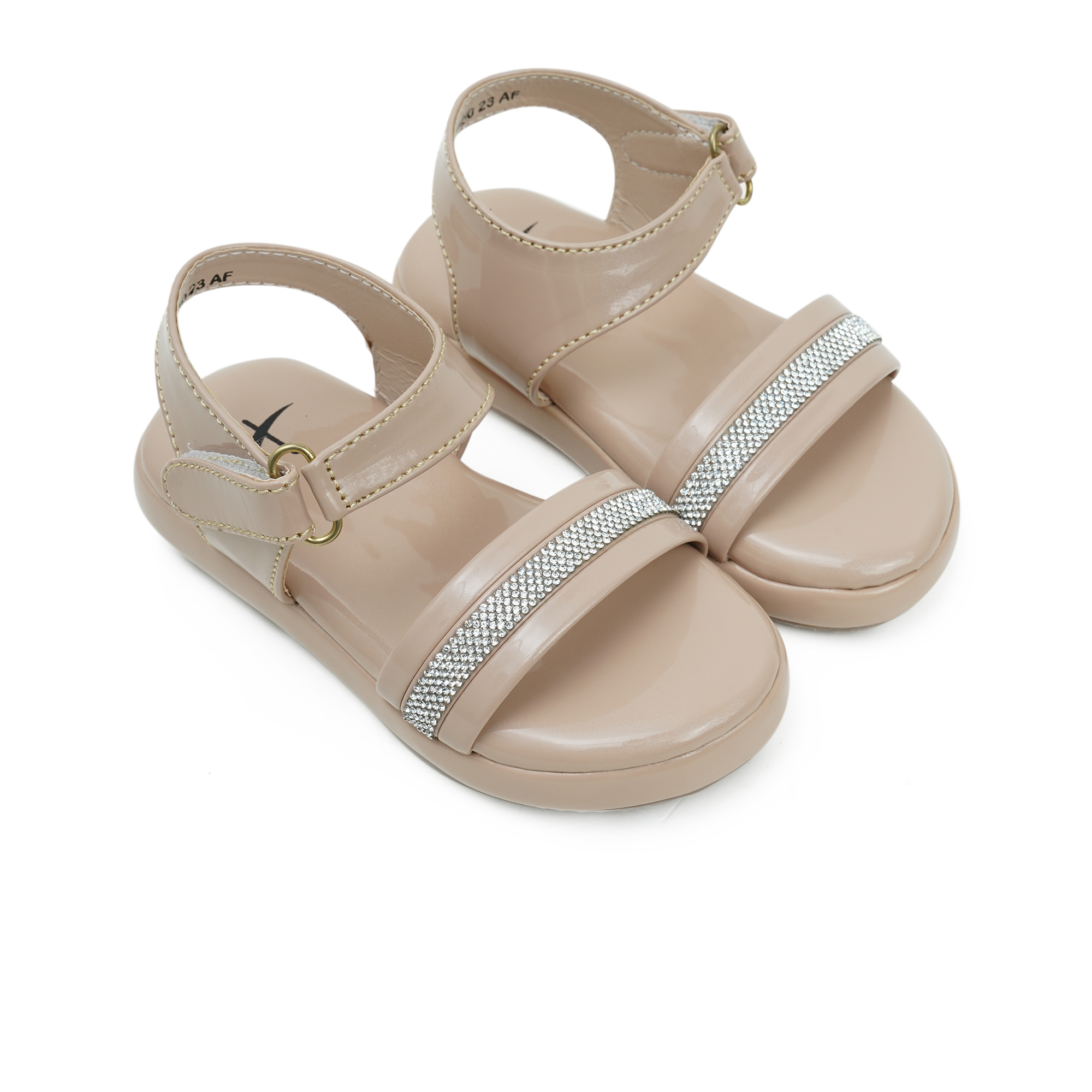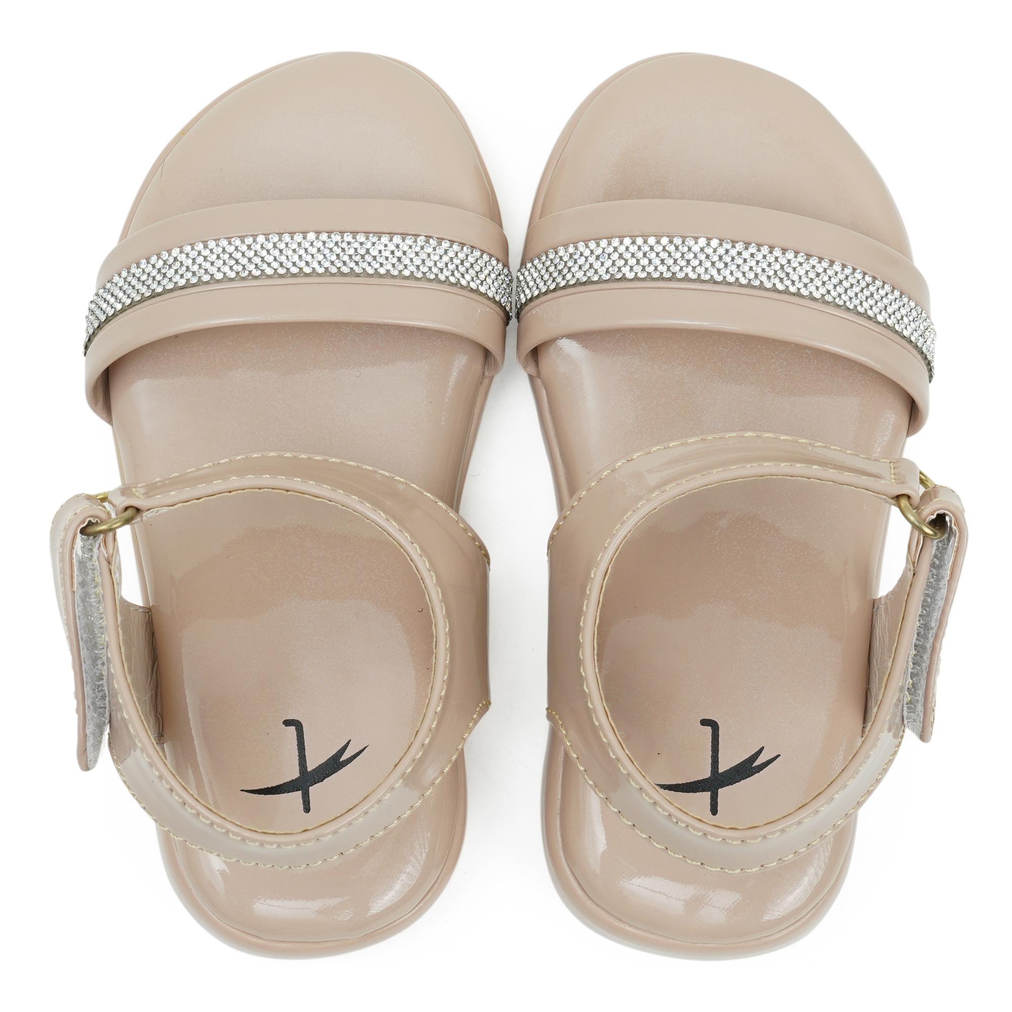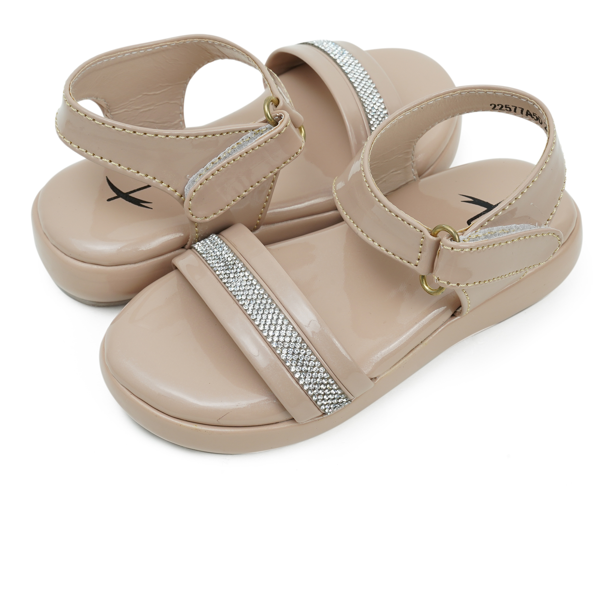 Twinkler girls’ beige sandal blends elegant crystal detail with a glossy finish and an adjustable ankle strap for a secure fit. The cushioned footbed and flexible sole deliver comfortable steps ,a stylish, versatile choice for parties or everyday wear.