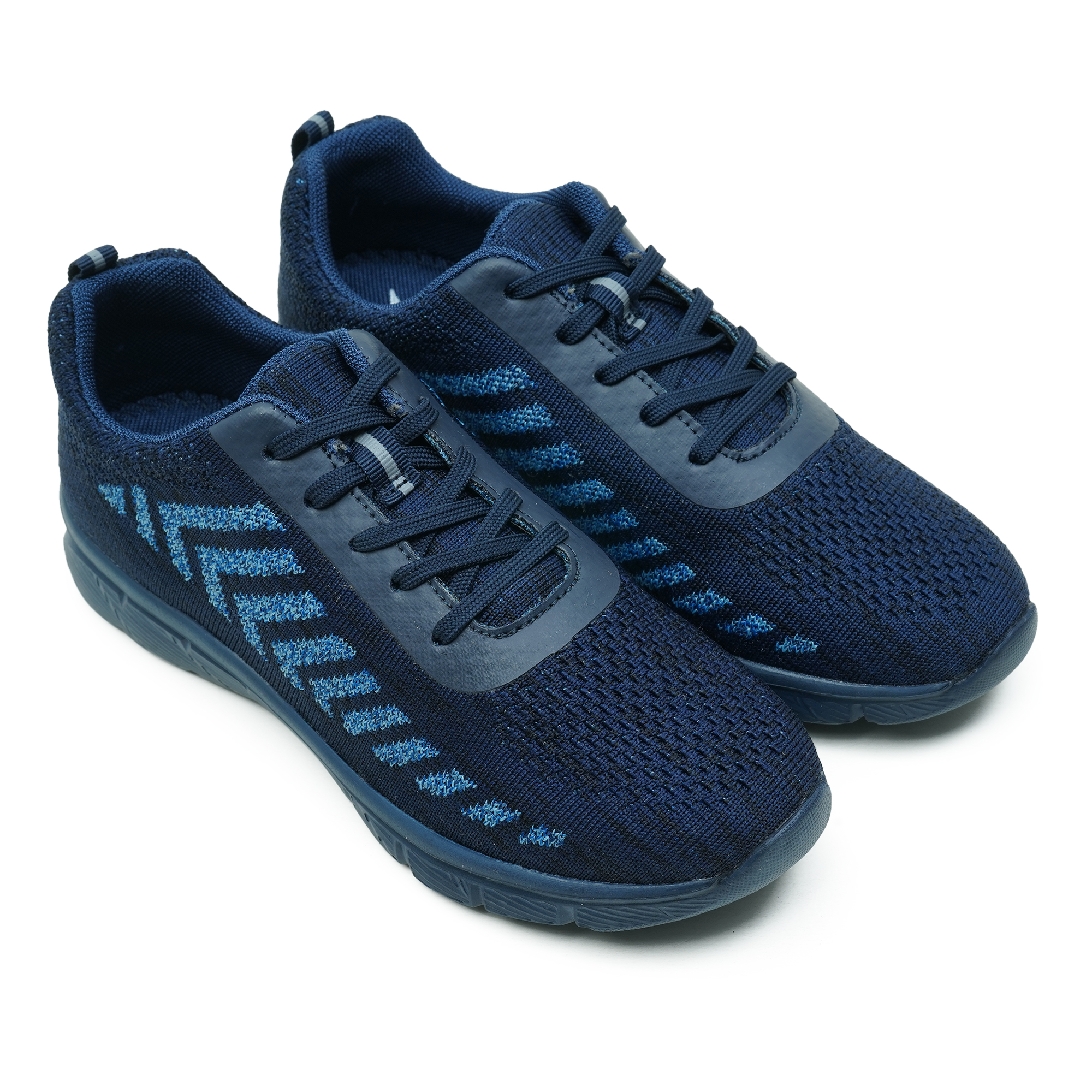 This sneaker offers everyday comfort and active play. It features a secure lace-up closure and a breathable flyknit upper that keeps feet fresh. The sneaker stands out with a sporty printed/design pattern on the side in contrasting tones, giving it a cool, athletic look. With a cushioned insole, padded collar, and lightweight flexible outsole for better grip