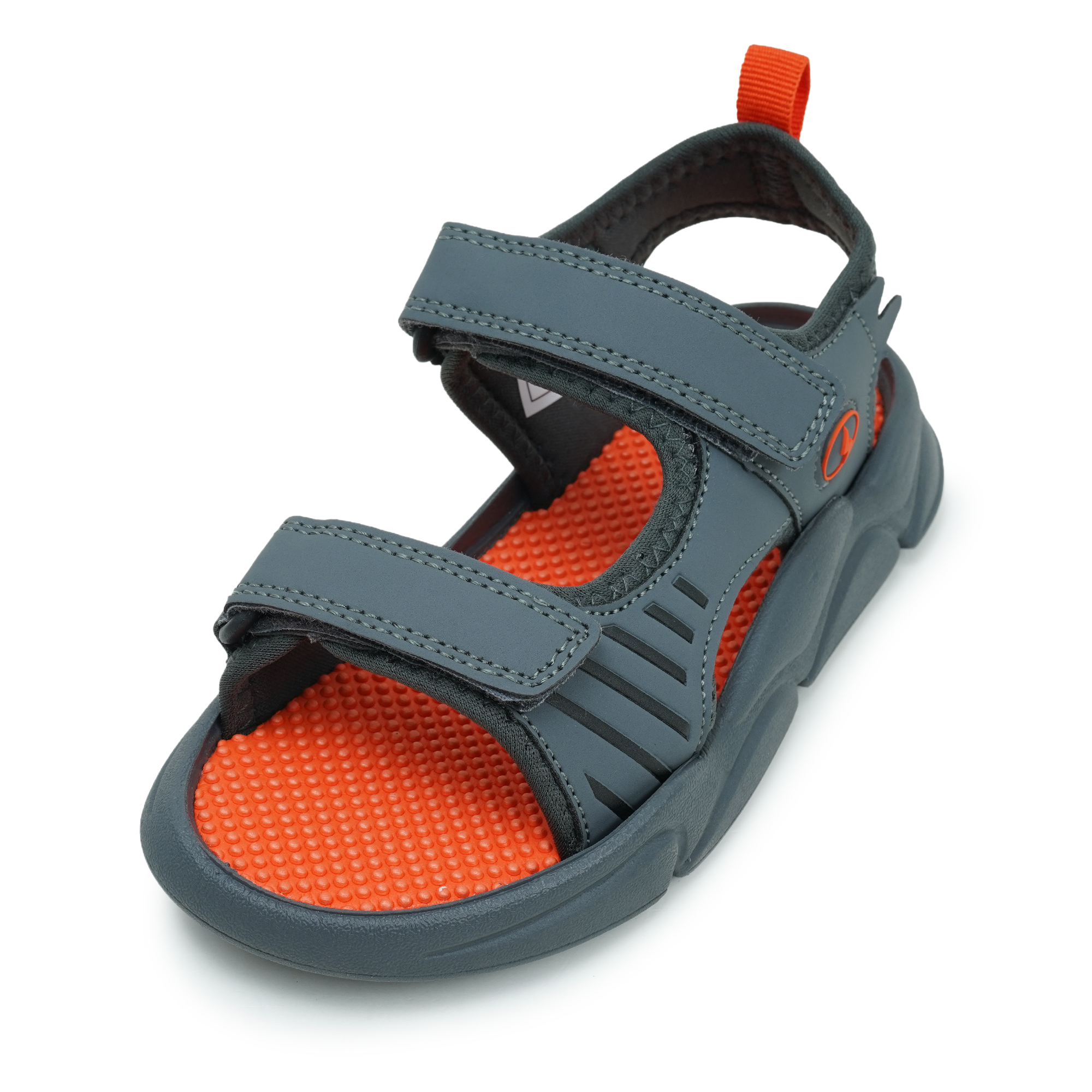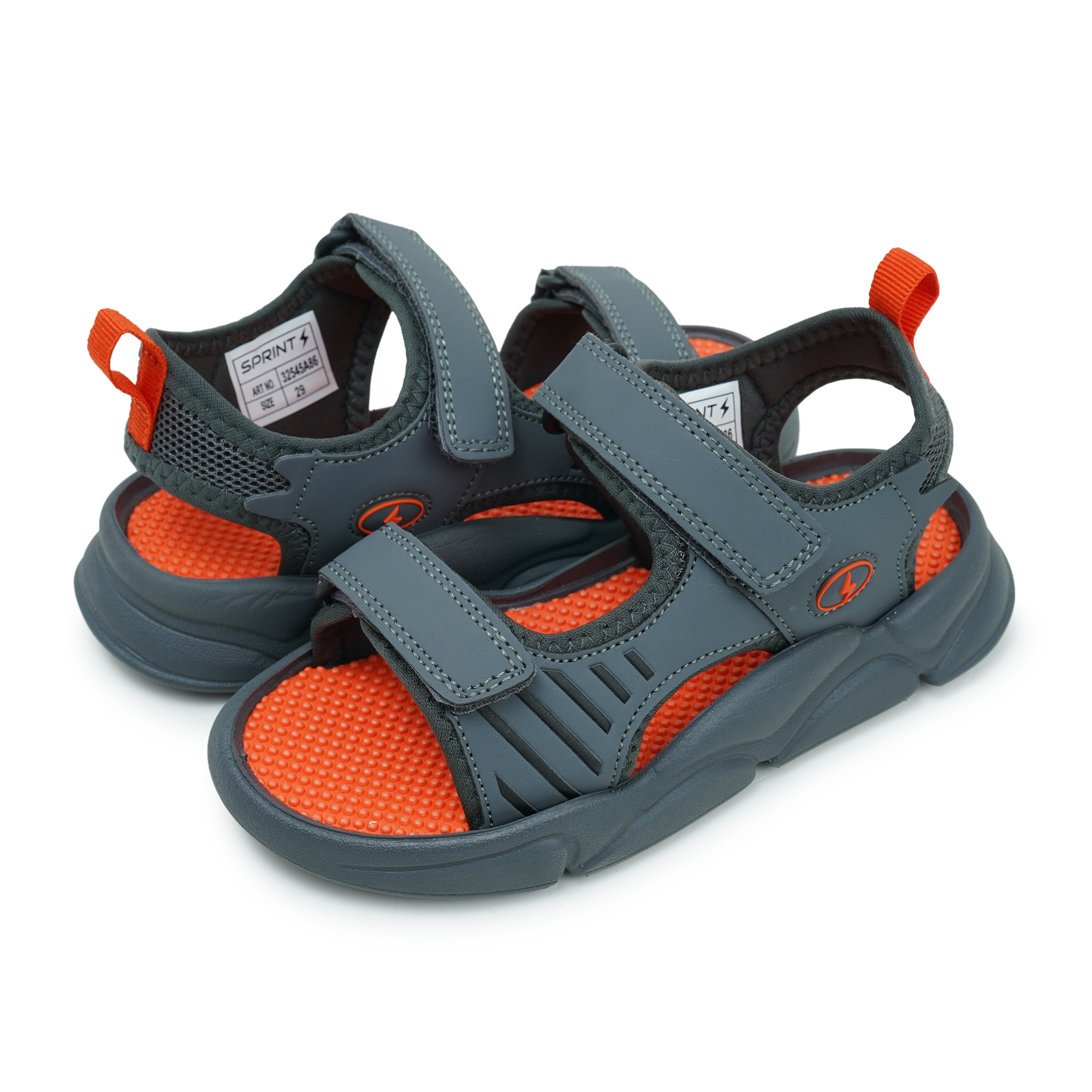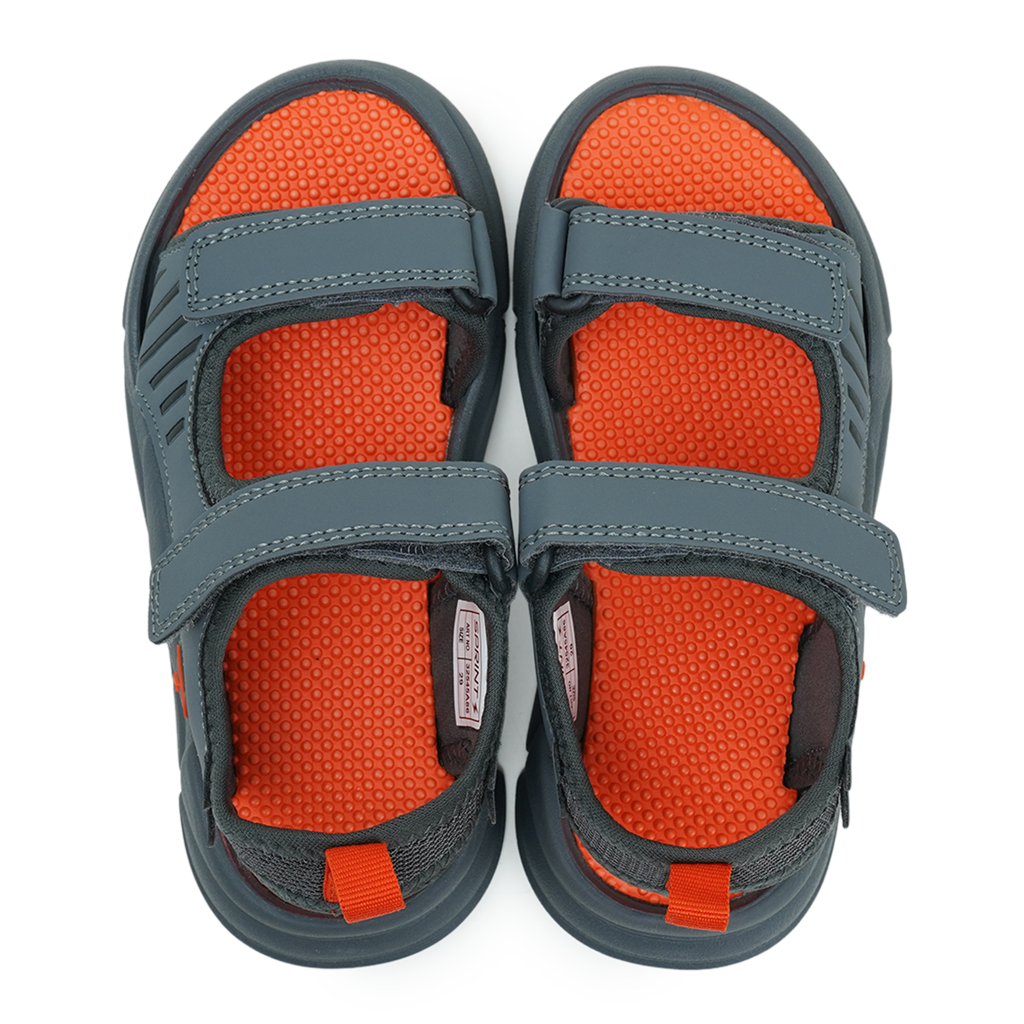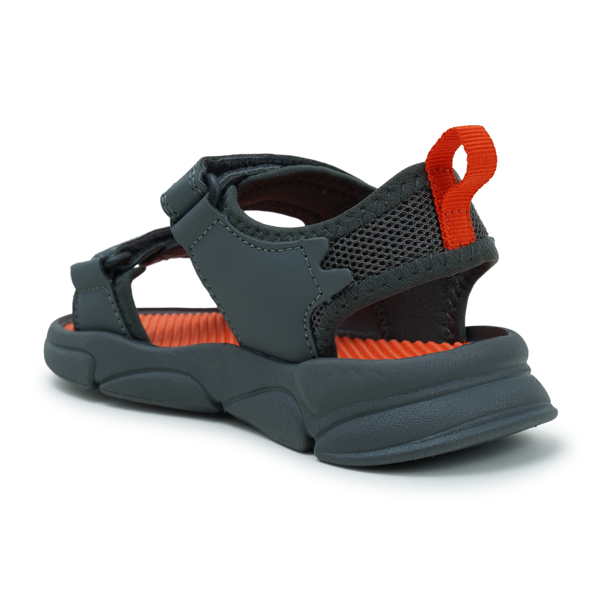 Twinkler Boy’s Sports Sandal comes in a cool grey tone with a bold neon orange inner accent for a sporty, standout look. Made with a durable PU upper, it’s easy to maintain and built for everyday use. The backbelt and adjustable straps help lock the foot in place for a secure, comfortable fit during active play. A textured, cushioned footbed adds comfort, while the sturdy outsole supports confident steps on daily outings.