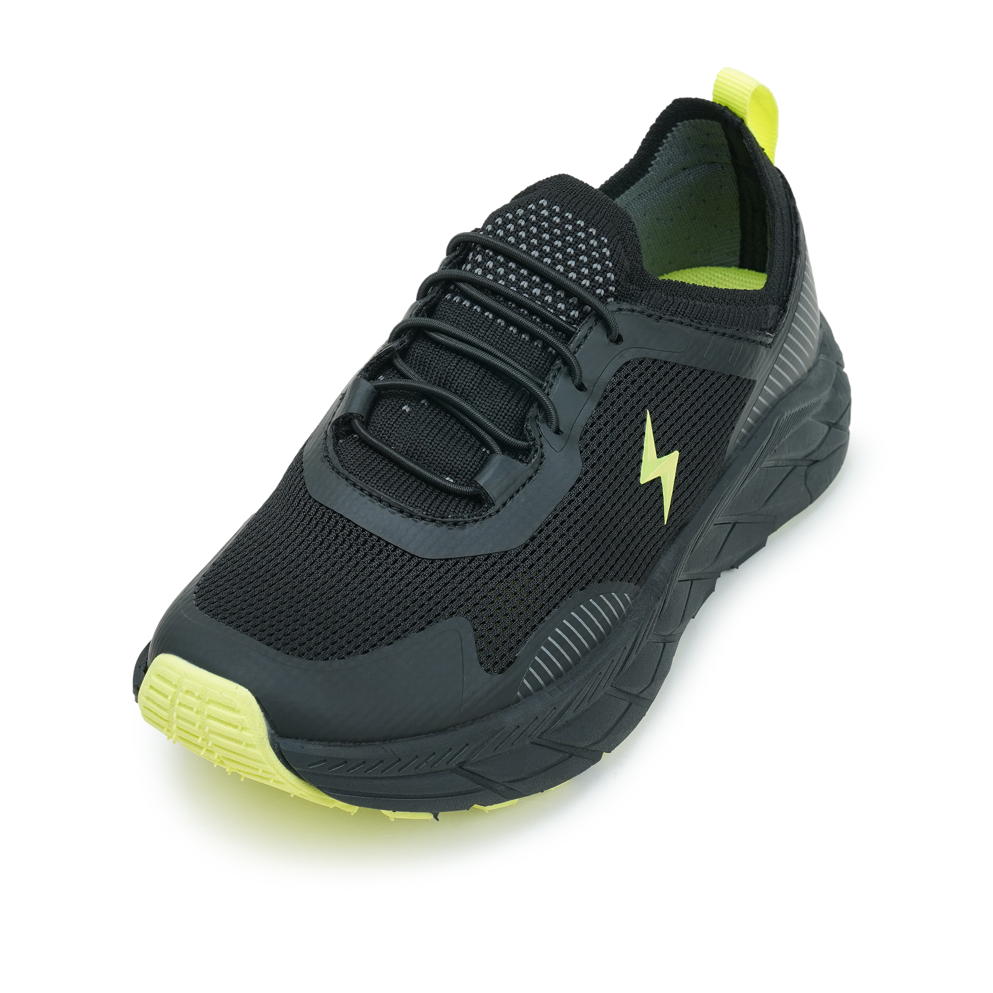 This sports shoe sleek black finish with bold neon accents delivers a sporty look and all-day comfort. The lace-up closure provides a snug, secure fit, while the breathable mesh upper keeps little feet cool during active play. Neon detailing on the pull tab and toe adds a fun pop of color and improves visibility.