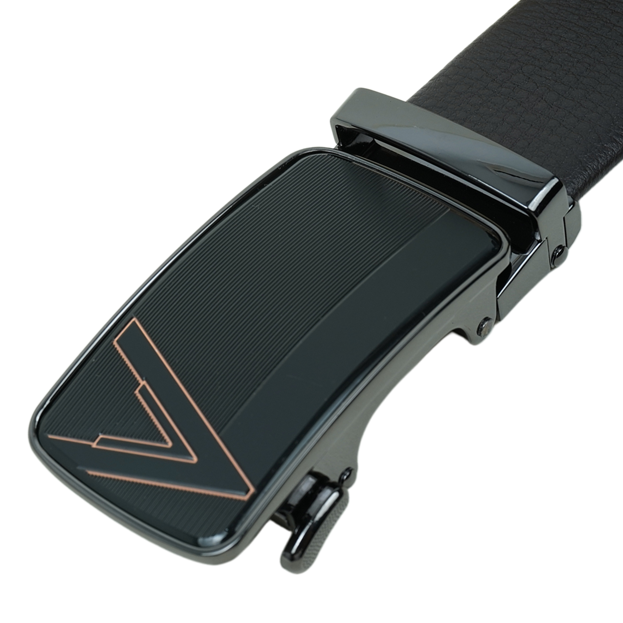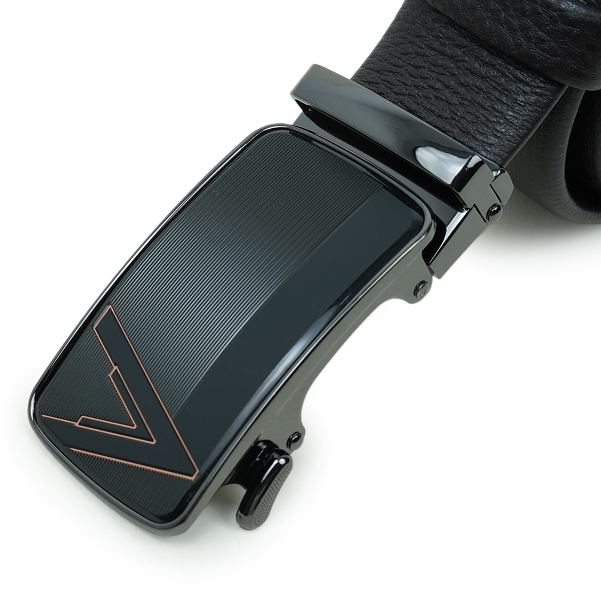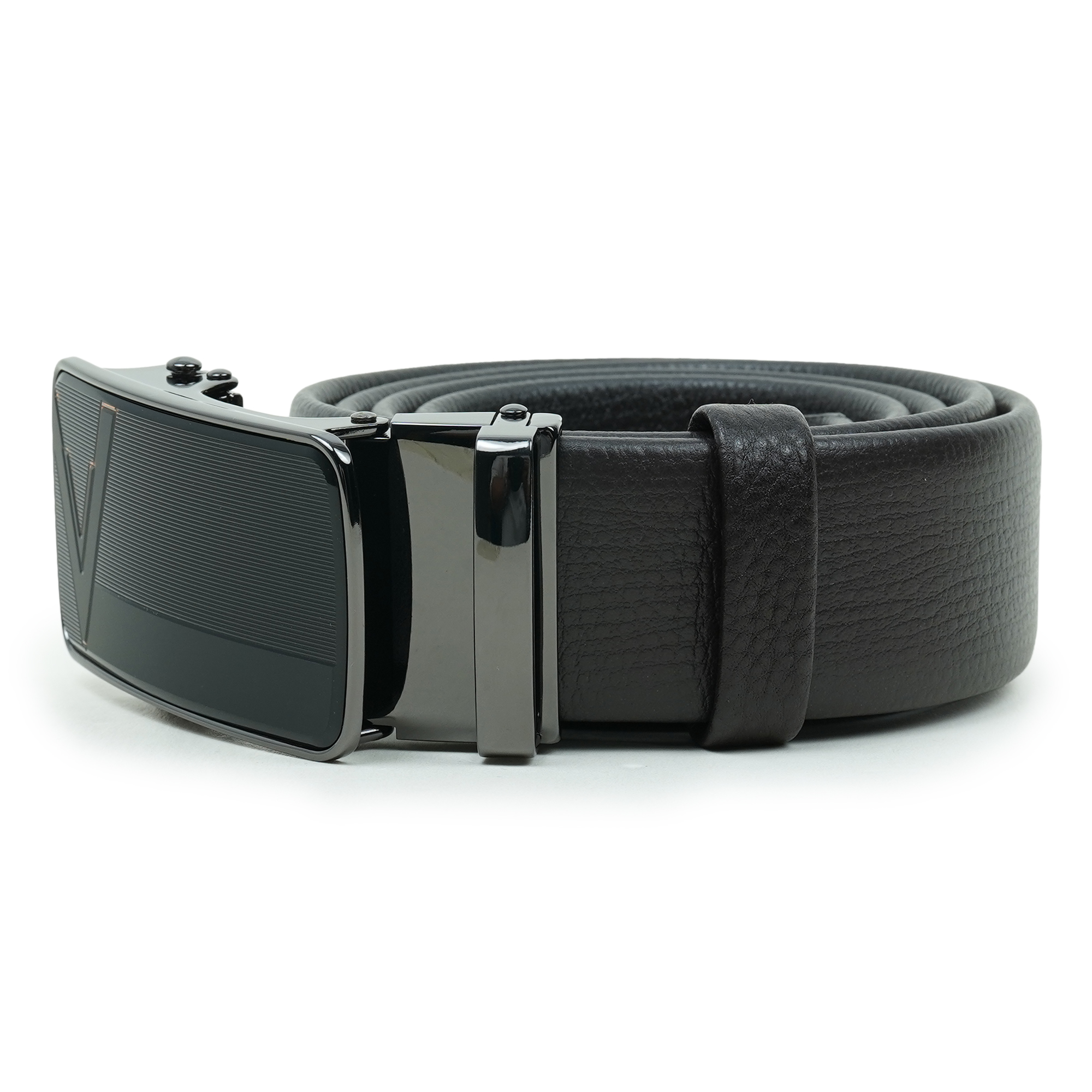 - Sophisticated metal buckle with a polished finish