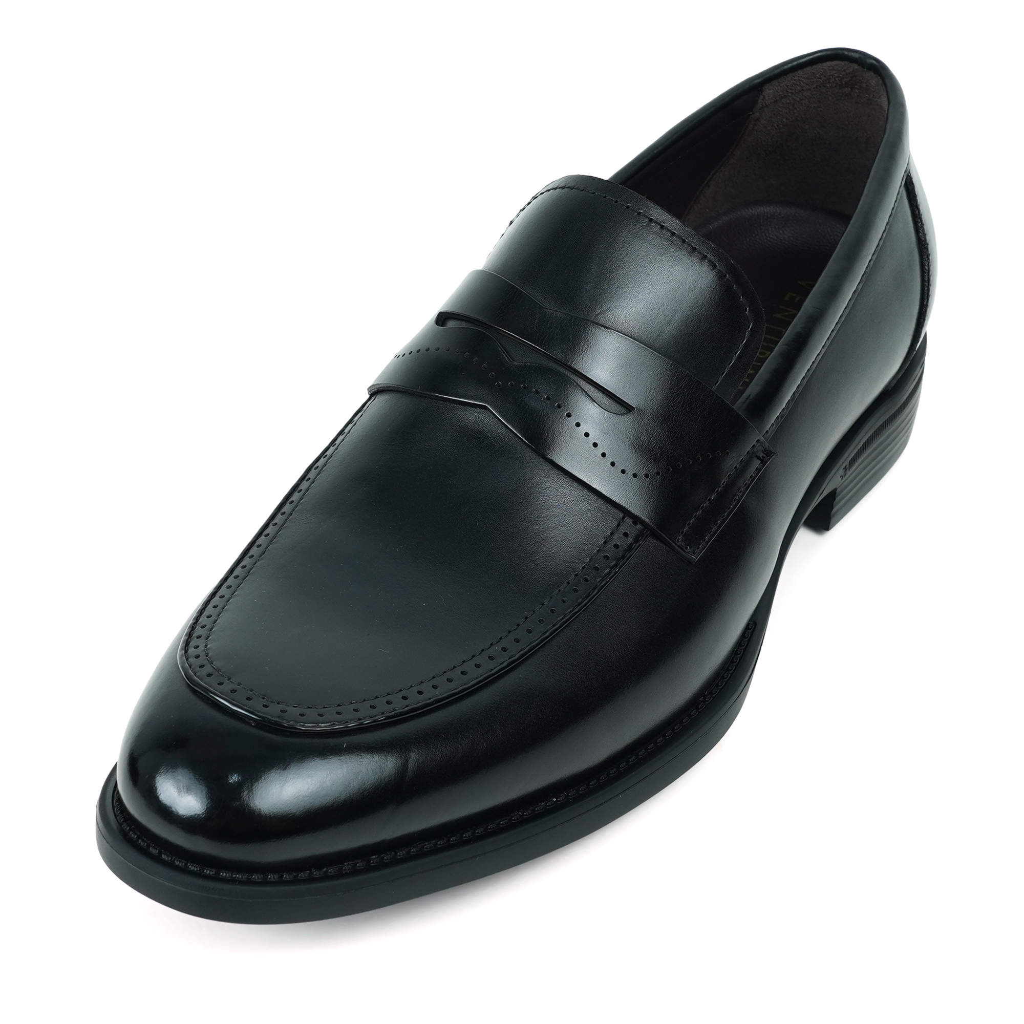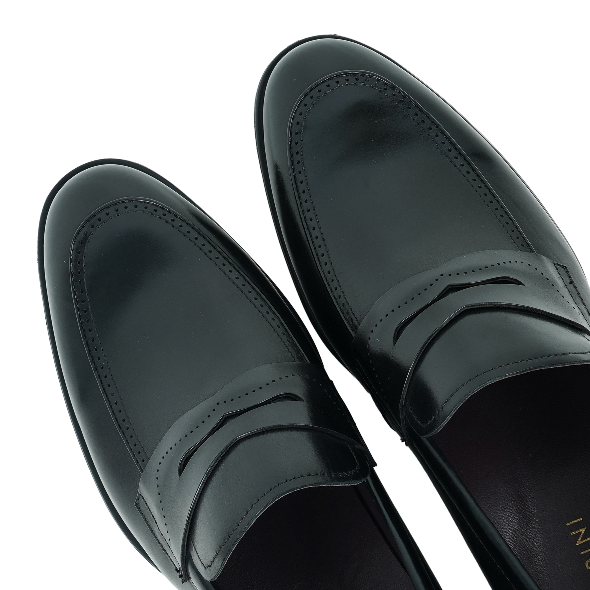 Venturini’s Black Men's Penny Loafer merges old-world polish with modern comfort tech. The hand-finished full-grain upper projects executive confidence, while hidden elastic panels let you glide in without tugging at laces. An injected rubber outsole lightens the load, absorbs impact and delivers slip-resistant traction- ideal for commuters and business travelers.
