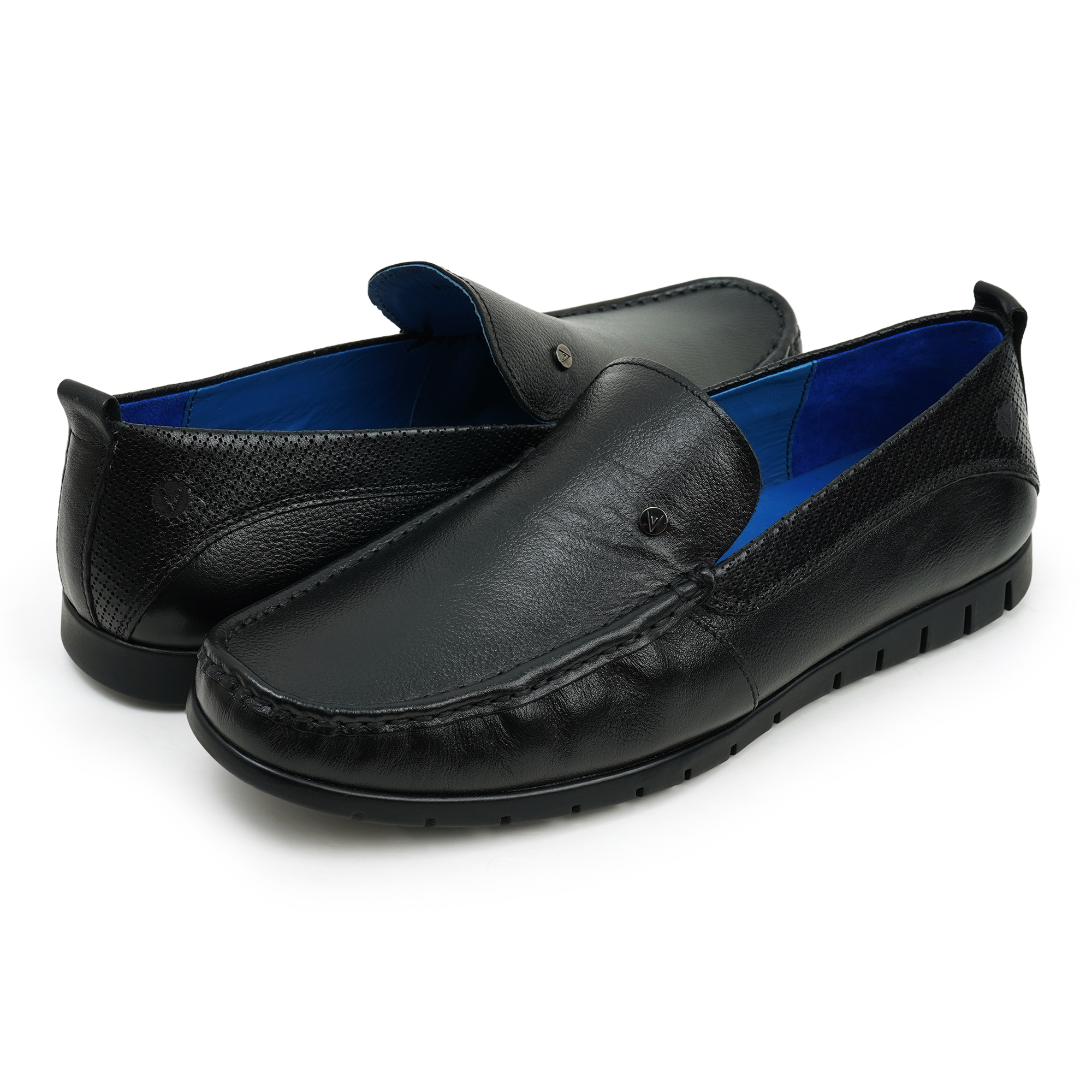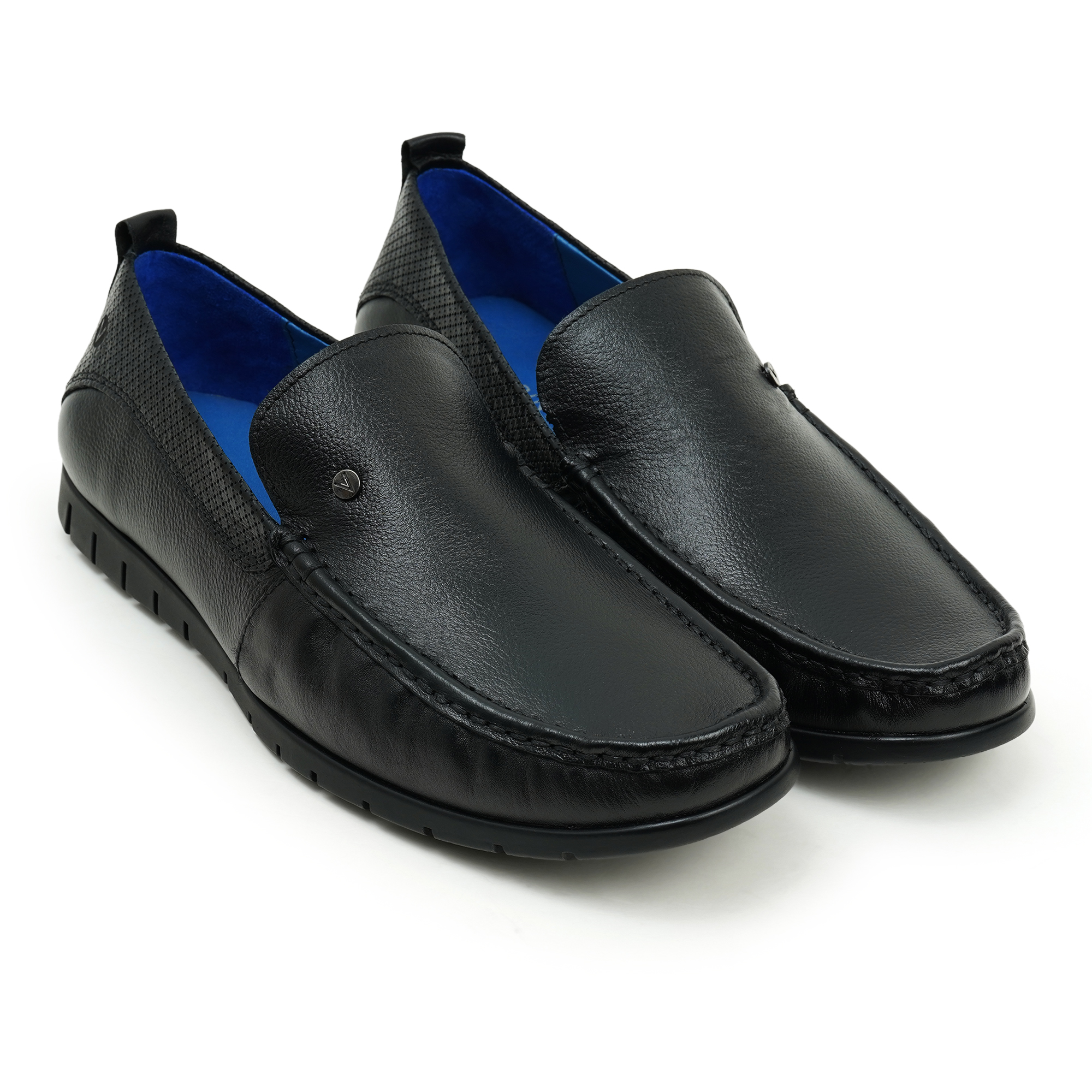Venturini men’s black slip-on shoe combines sleek leather uppers with effortless comfort. Crafted from genuine leather with a clean, laceless silhouette, these shoes offer a streamlined, modern look ideal for business casual and smart-casual wear. A cushioned insole and flexible rubber outsole deliver everyday comfort and grip, while the blue interior adds a distinctive, premium touch. Venturini delivers a versatile, easy-to-wear option for special to regular days.